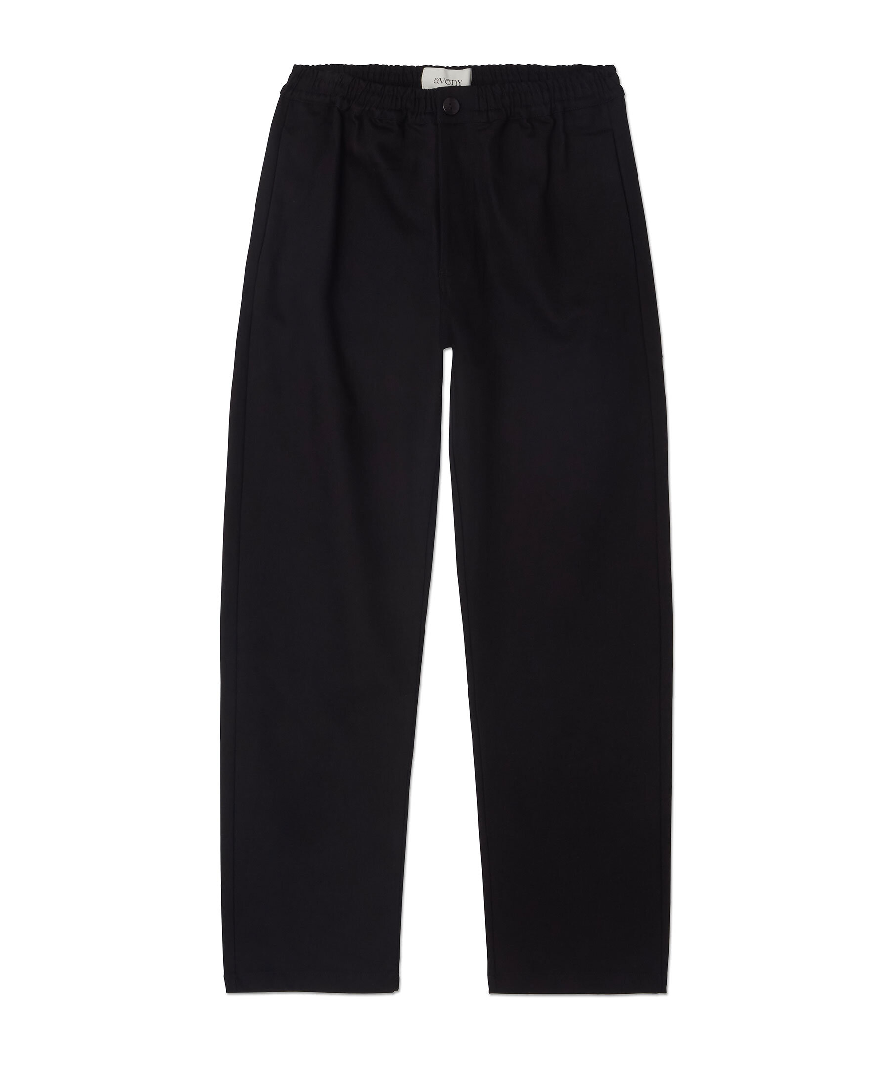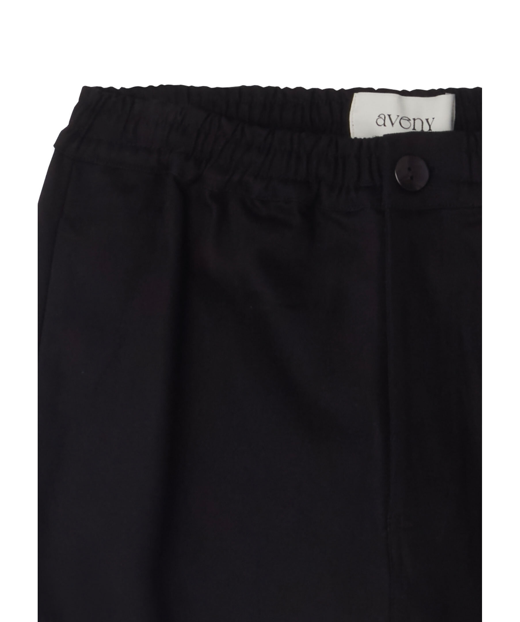 Svarta bomullstwill byxor från Aveny. Byxorna har lätt avsmalnande ben, en elastisk midja med snören på insidan. Stängs med dragkedja och pärlknapp. Sidofickor och en broderad logotyp baktill. Tillverkade av en bomullsblandning.