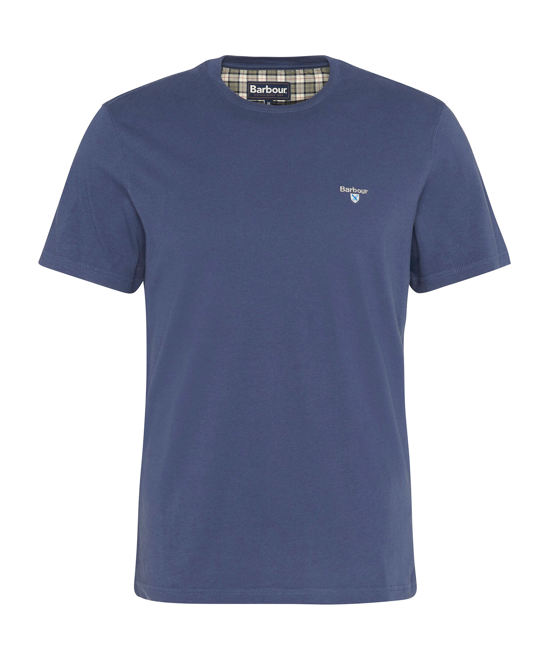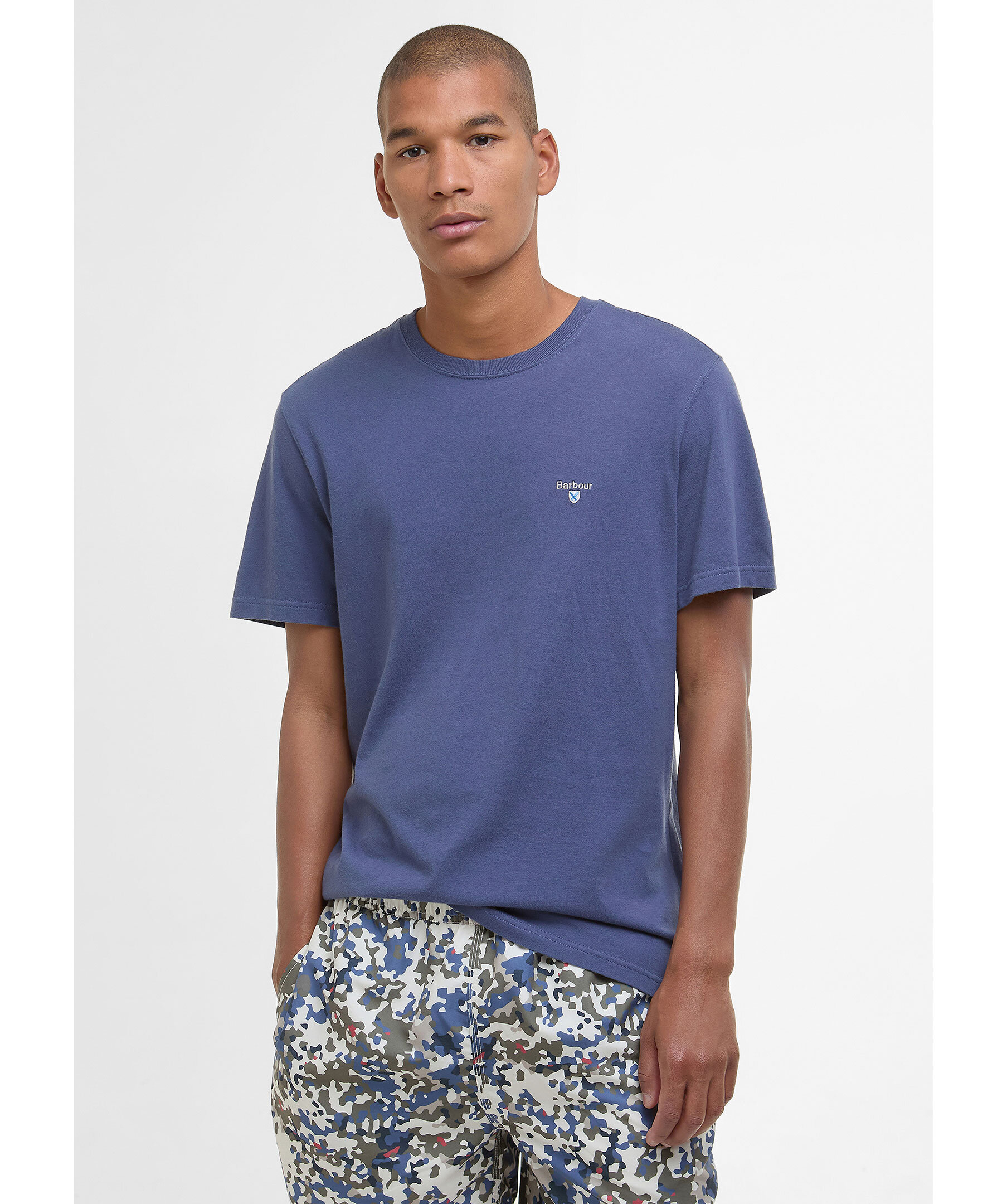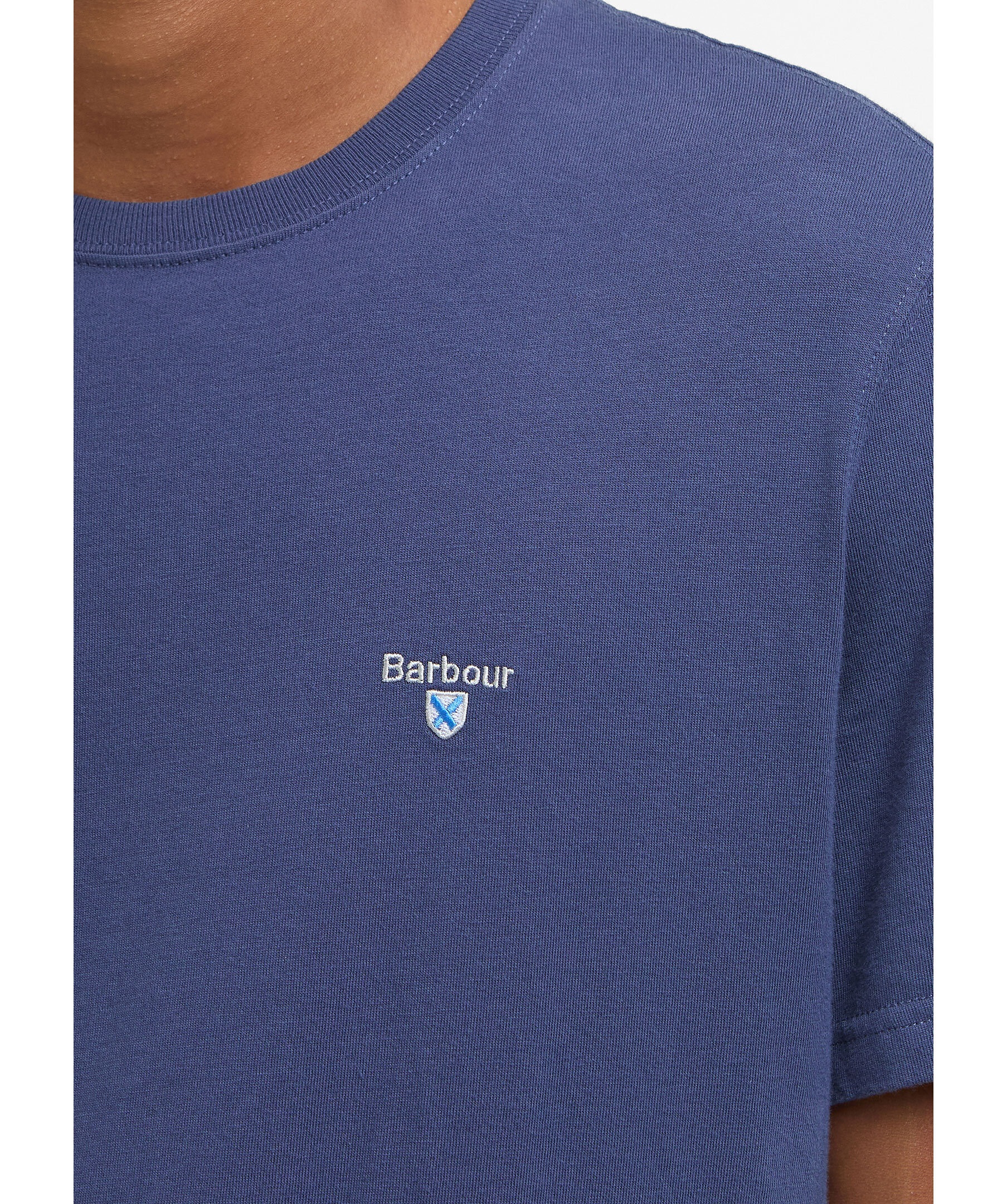 Blå t-shirt från Barbour. T-shirten har rundad halsringning, korta ärmar och liten, broderad logotyp på bröstet. Tillverkad i bomull.