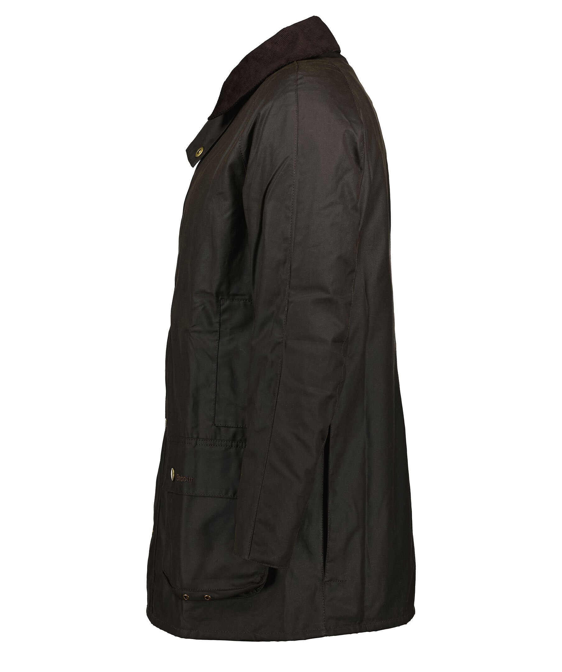 Mörkbrun, vaxad jacka från Barbour. Jackan har fyra fickor framtill varav två som stängs med lock och tryckknappar, samt en innerficka. Krage i brunt manchestertyg. Jackan stängs med en ordentlig dragkedja och tryckknappar. Vädrings dragkedjor i jackans sida. Rutigt foder i bomullsblandning, ett tjockare foder kan köpas till för att hålla värmen bättre.