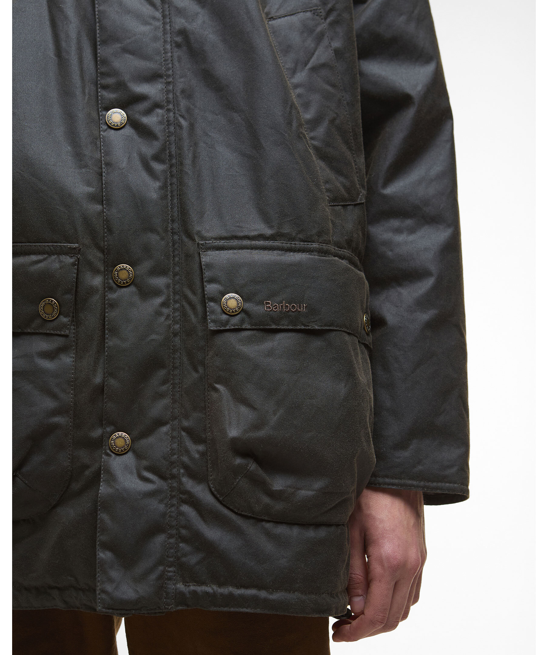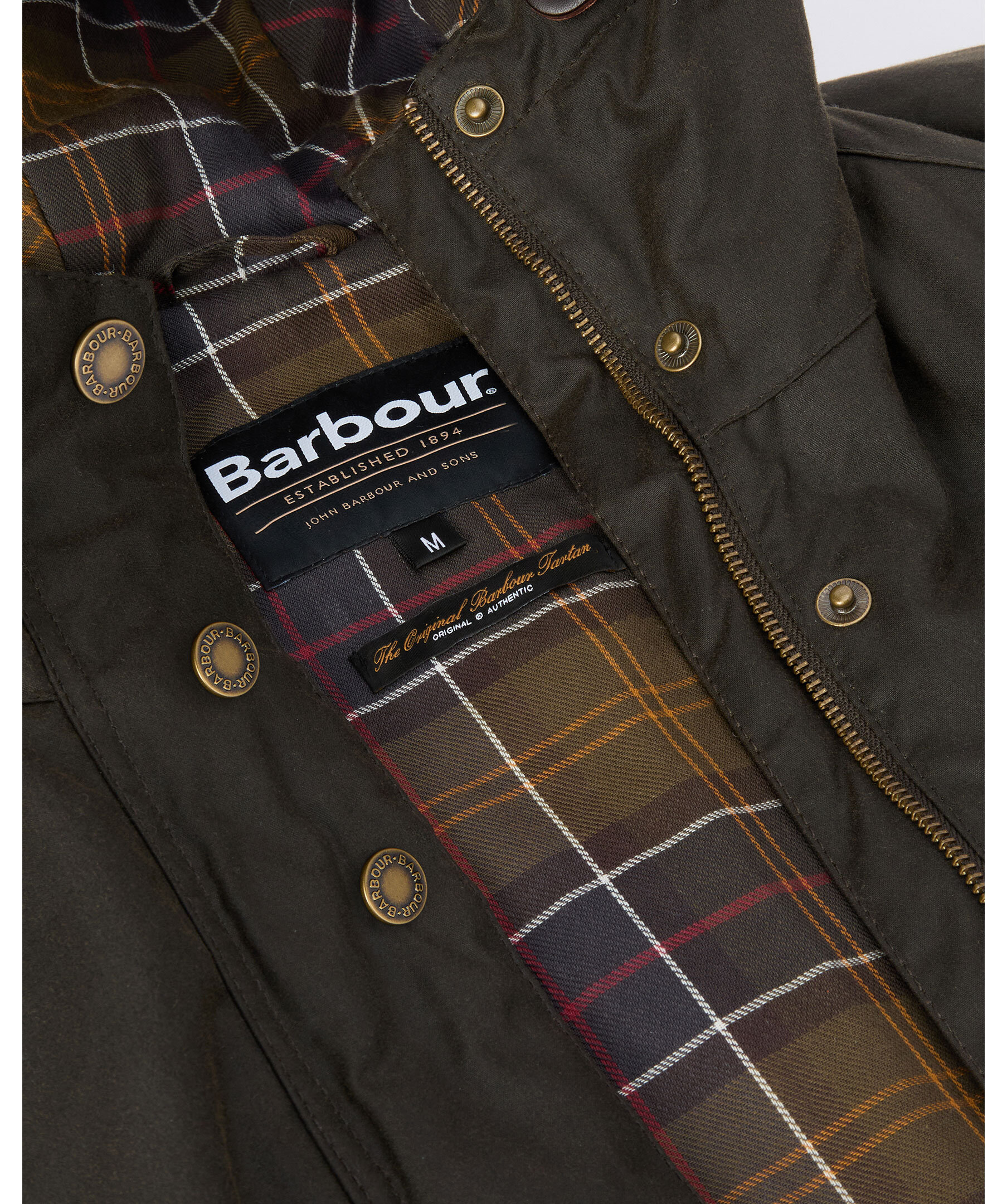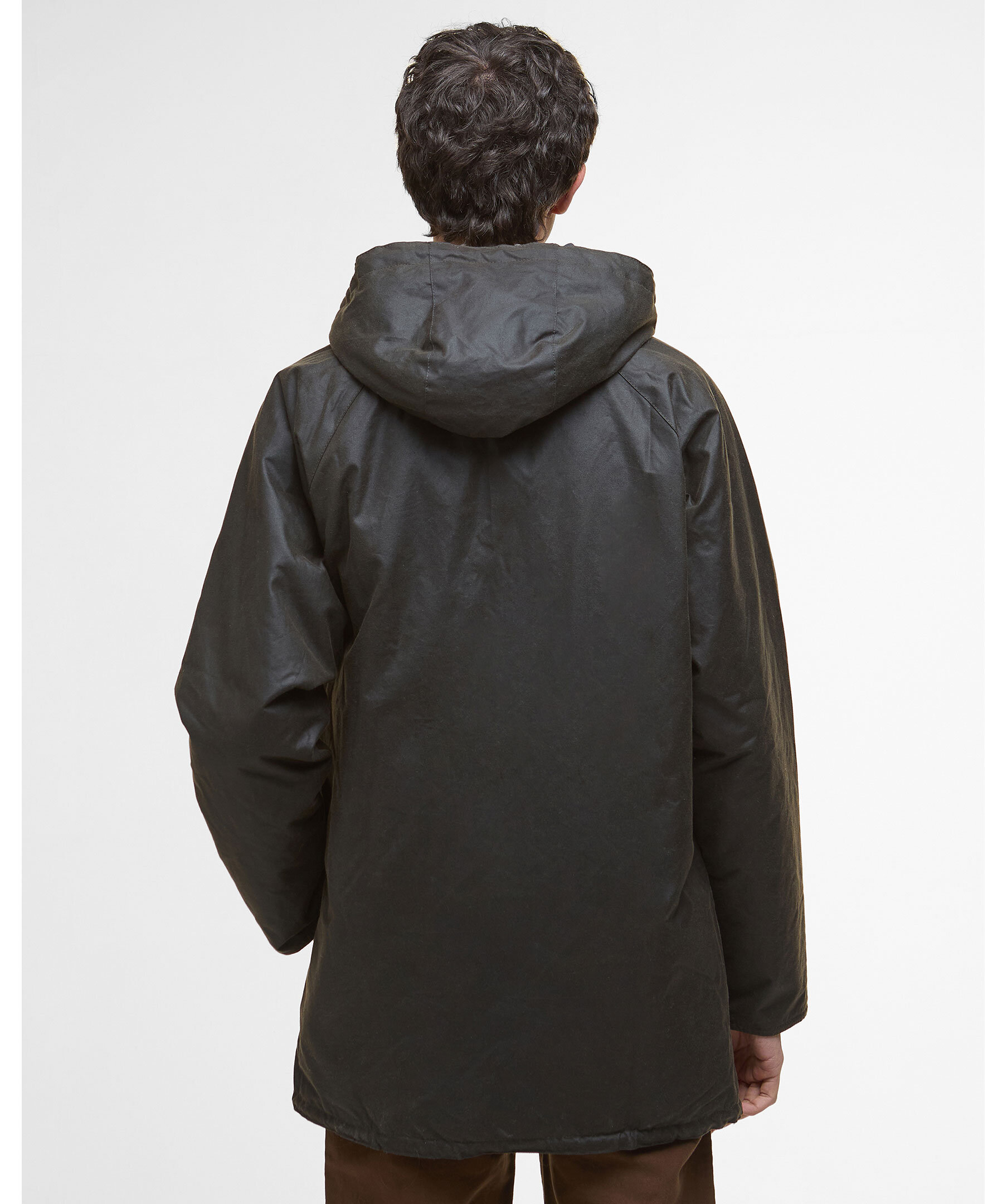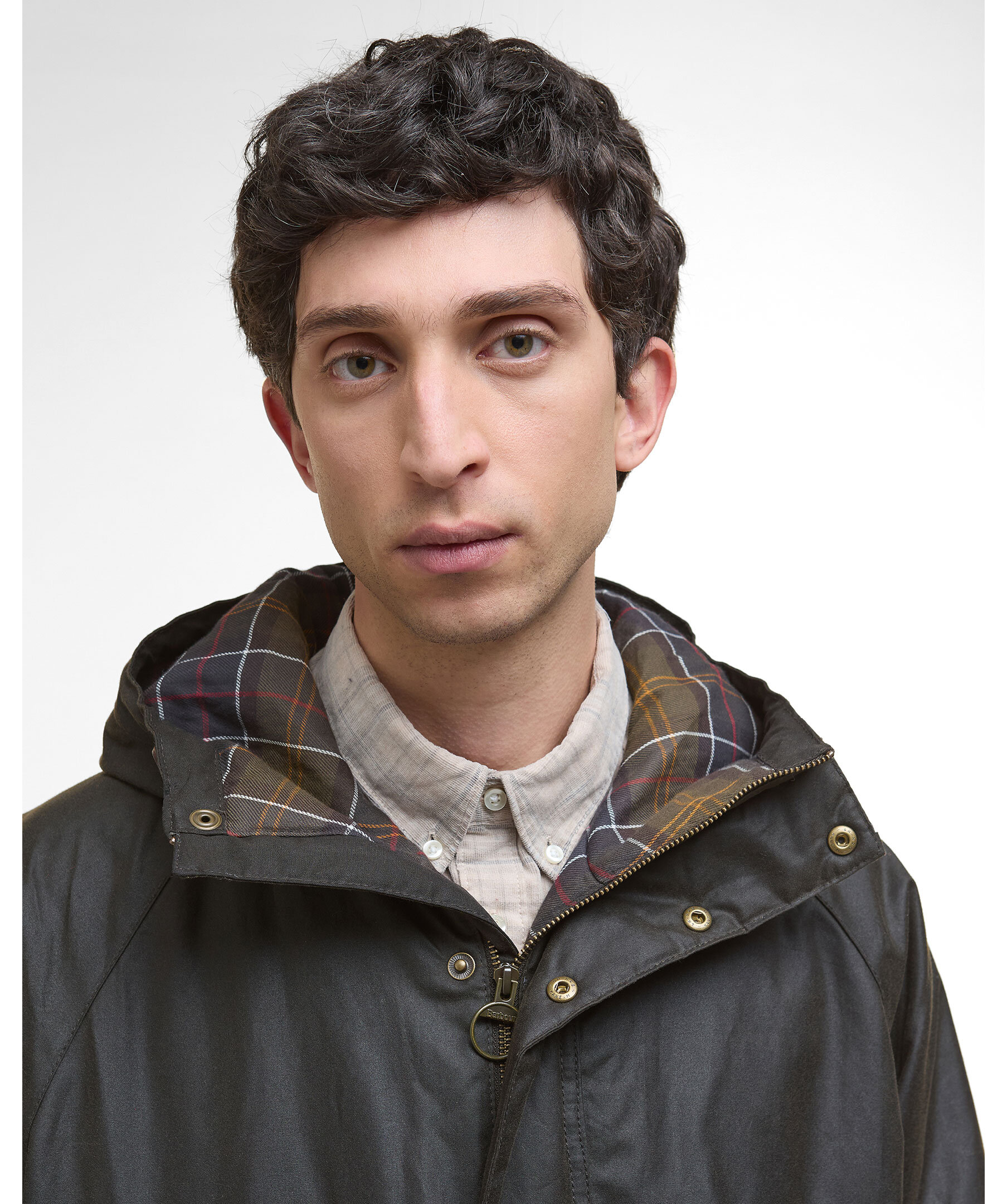 Grön slitstark parkas i vaxad bomull från Barbour. Jackan har en lätt vaddering och Barbours ikoniska tartanmönstrade foder. Utrustad med två framfickor med lock, handfickor, innerficka och droppskydd. Hög krage med läderdetaljer och dragsko, samt justerbar nederkant. Stängs med dragkedja och knappar. Ventilationshål under ärmarna för ökad komfort. Rak passform – normal i storleken. Bör vaxas årligen med Barbour Thornproof Dressing.