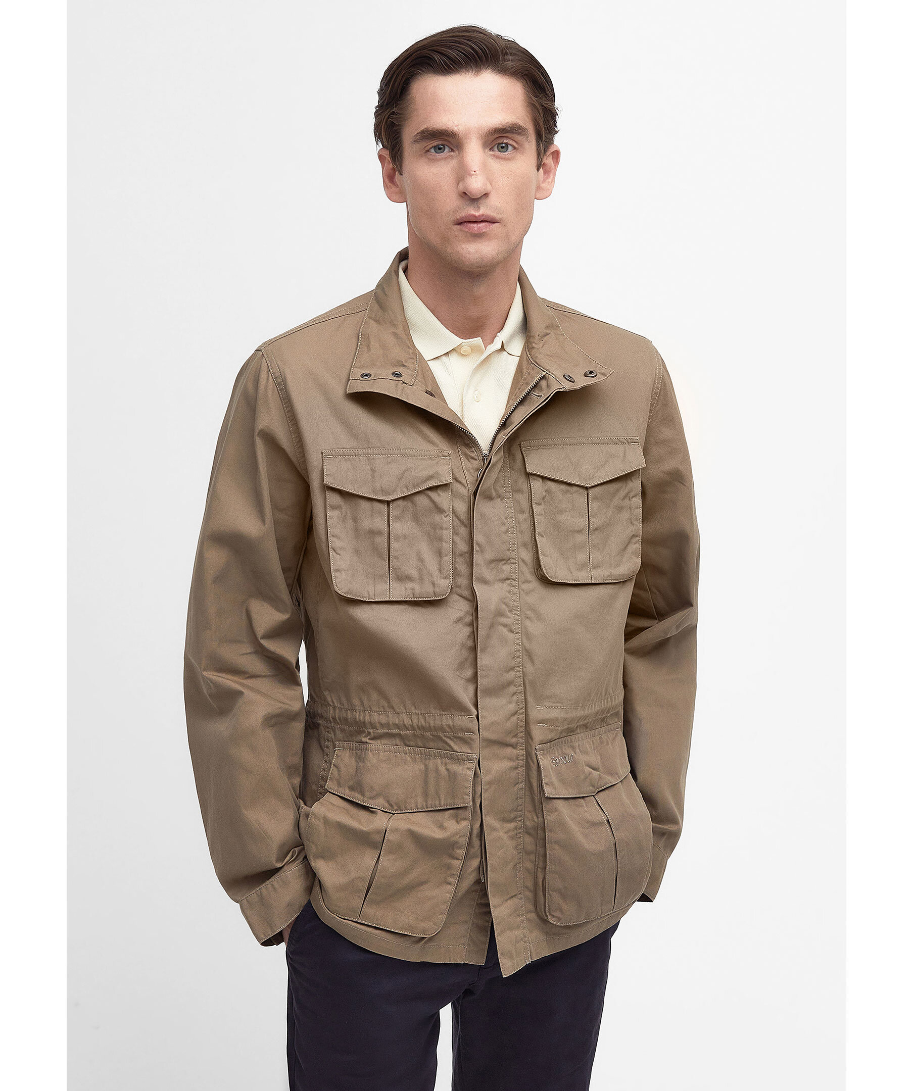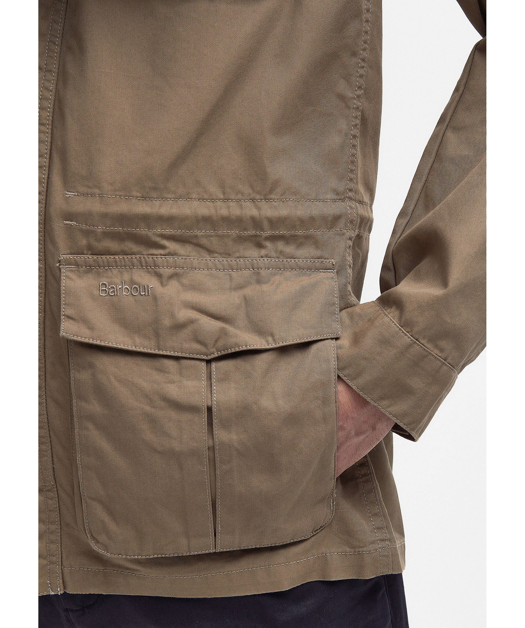 Brun jacka från Barbour. Tillverkad av avslappnat bomullstyg och har detaljer från Barbours mest traditionella vaxjackor. Dubbla lappade bröstfickor och nedre lappfickor. Stängs med dold dragkedja och knappar. Liten broderad logotyp på ena fickan. Normal passform.
