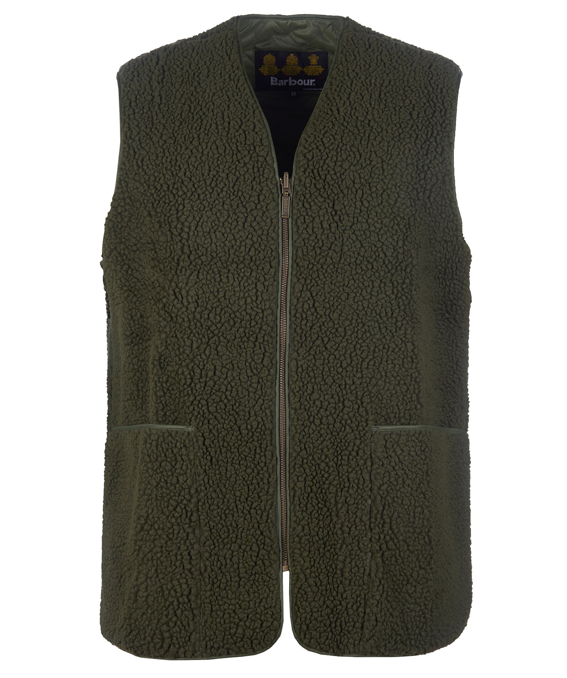 Mörkgrön fleeceväst från Barbour. Gjord i en blandning av akryl och polyester. Perfekt att använda som en värmande innerväst under jackan eller som ett ytterplagg för sig. Västen stängs med en dragkedja i mitten av plagget och har två framfickor samt en innerficka. Rundade kanter och quiltad innerfoder i polyamid.