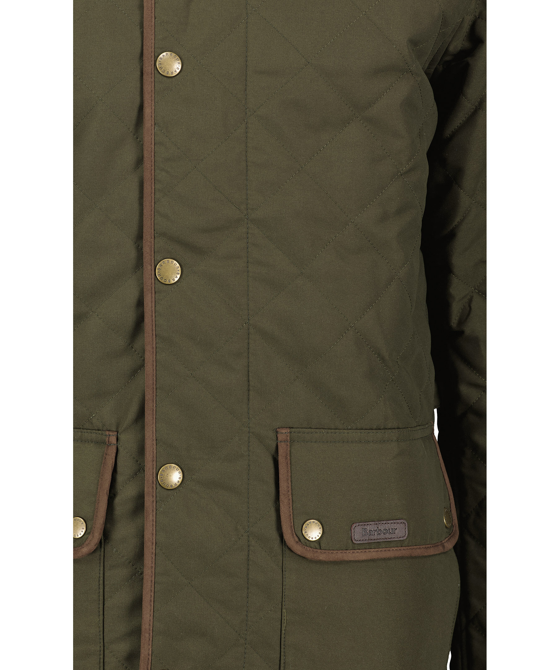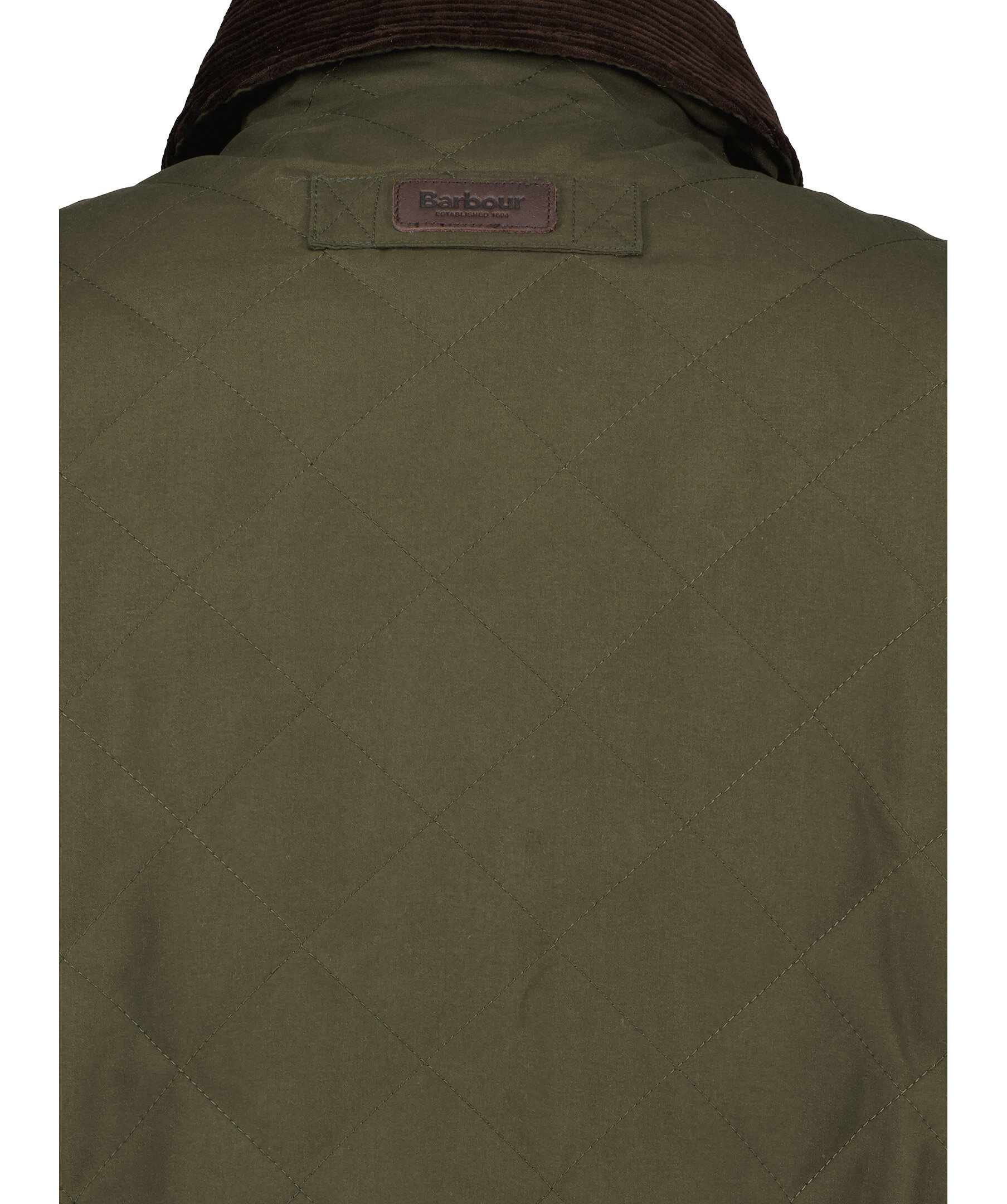 Mörkgrön quiltad jacka från Barbour. Stängs framtill med Tvåvägsdragkedja och tryckknappar. Två fickor framtill som stängs med tryckknappar och lock. Justerbar i midjan. Ögla baktill med patch i läder, läder patch på vänster ficka.
