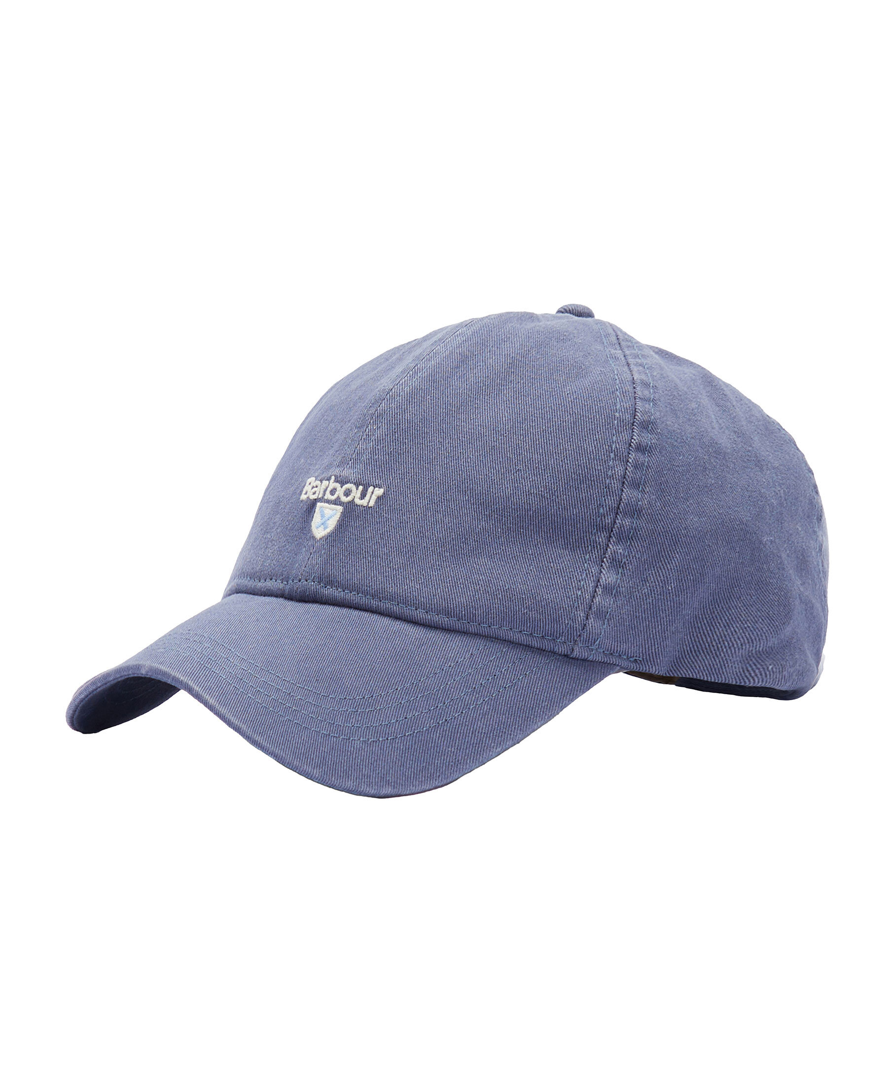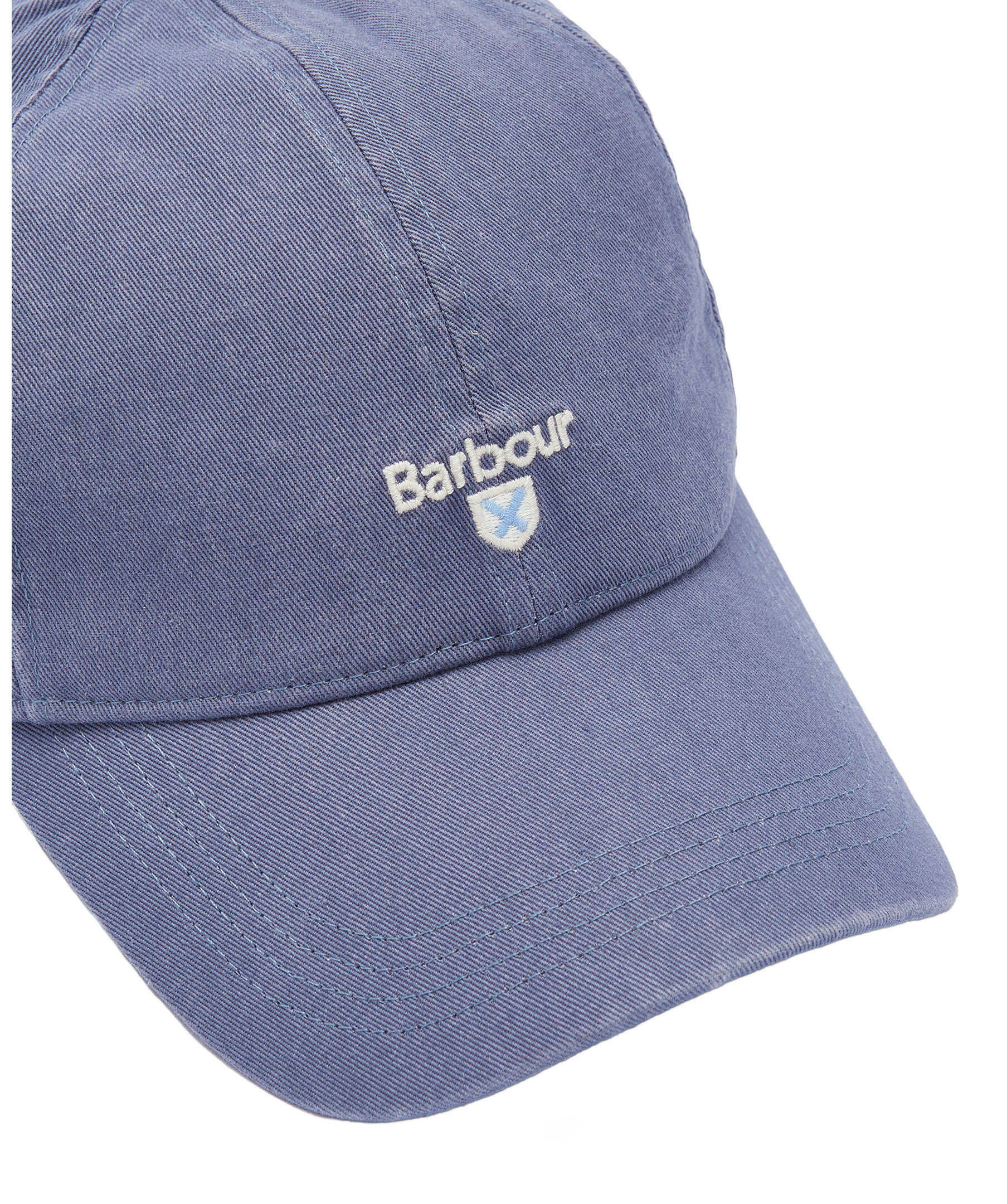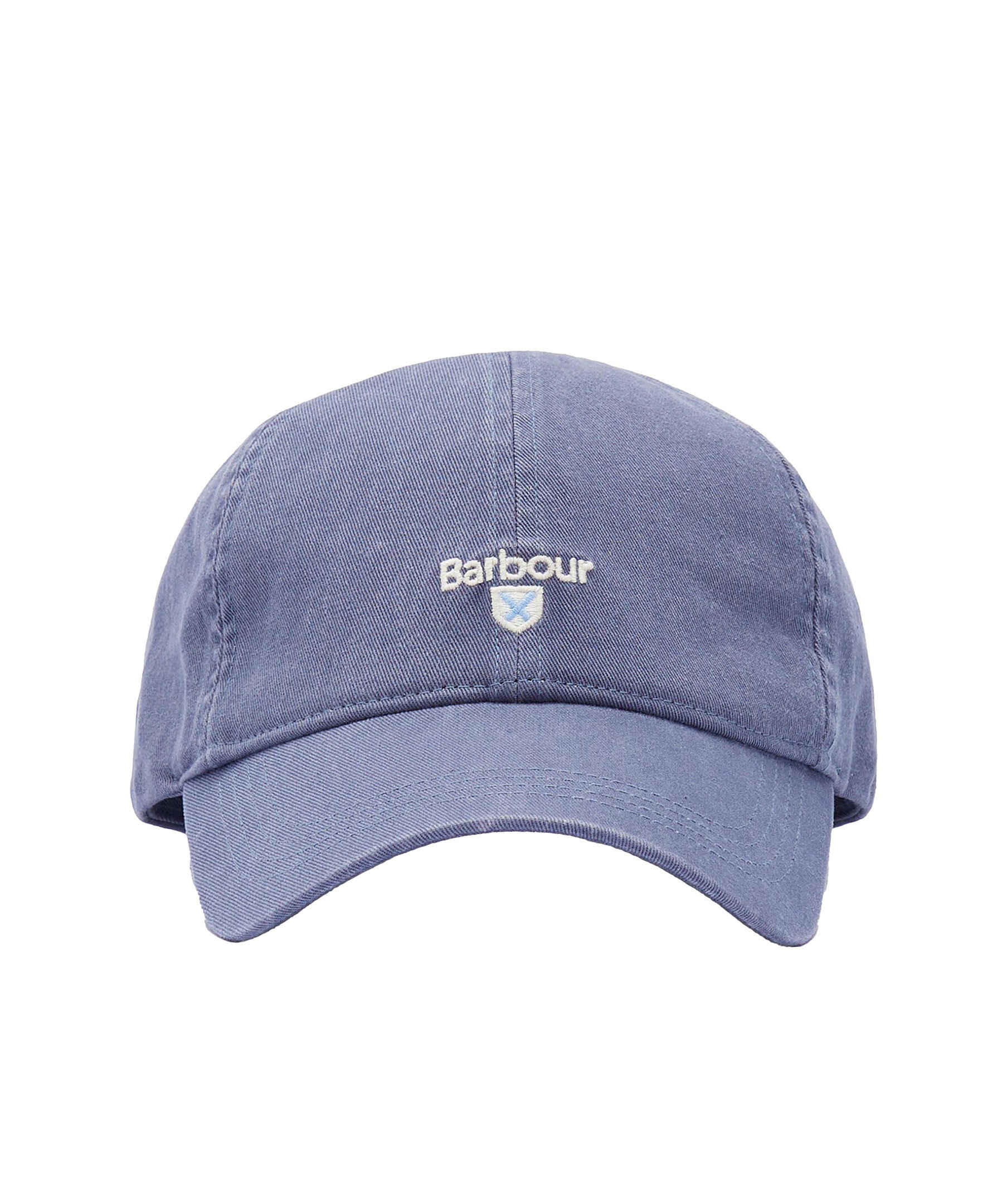Blå keps från Barbour. Broderad logotyp på framsidan av kepsen. Justerbar spänne baktill.