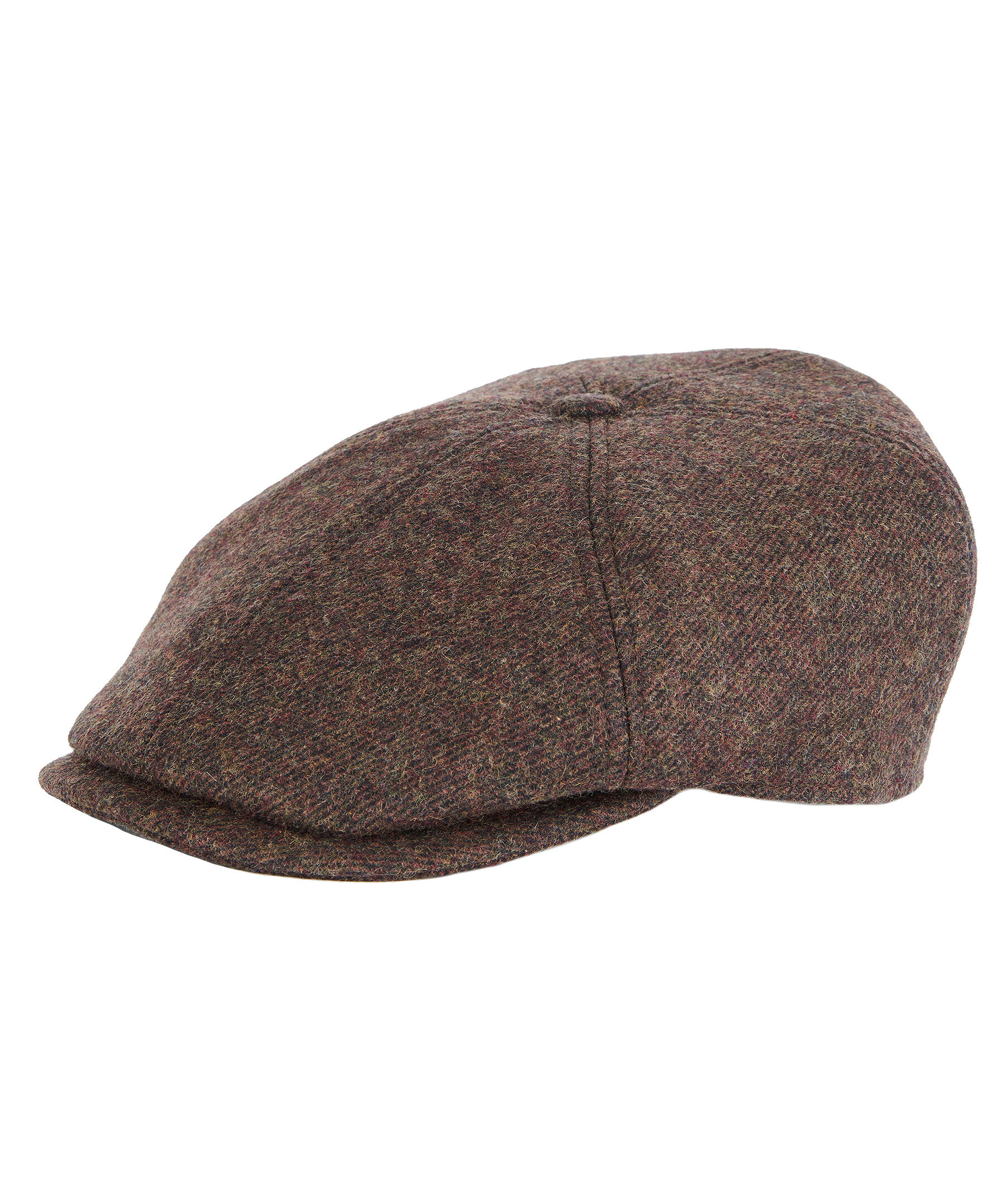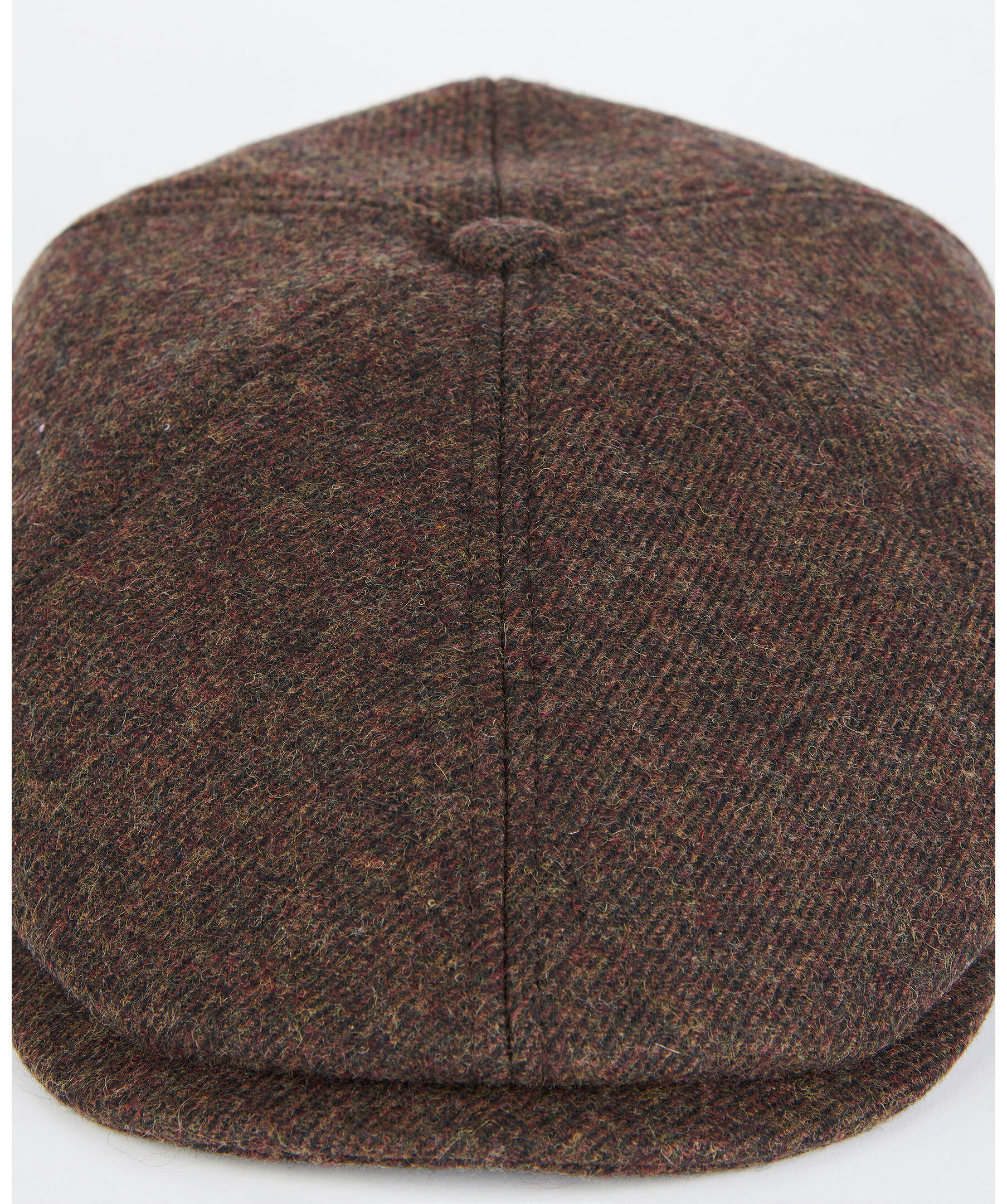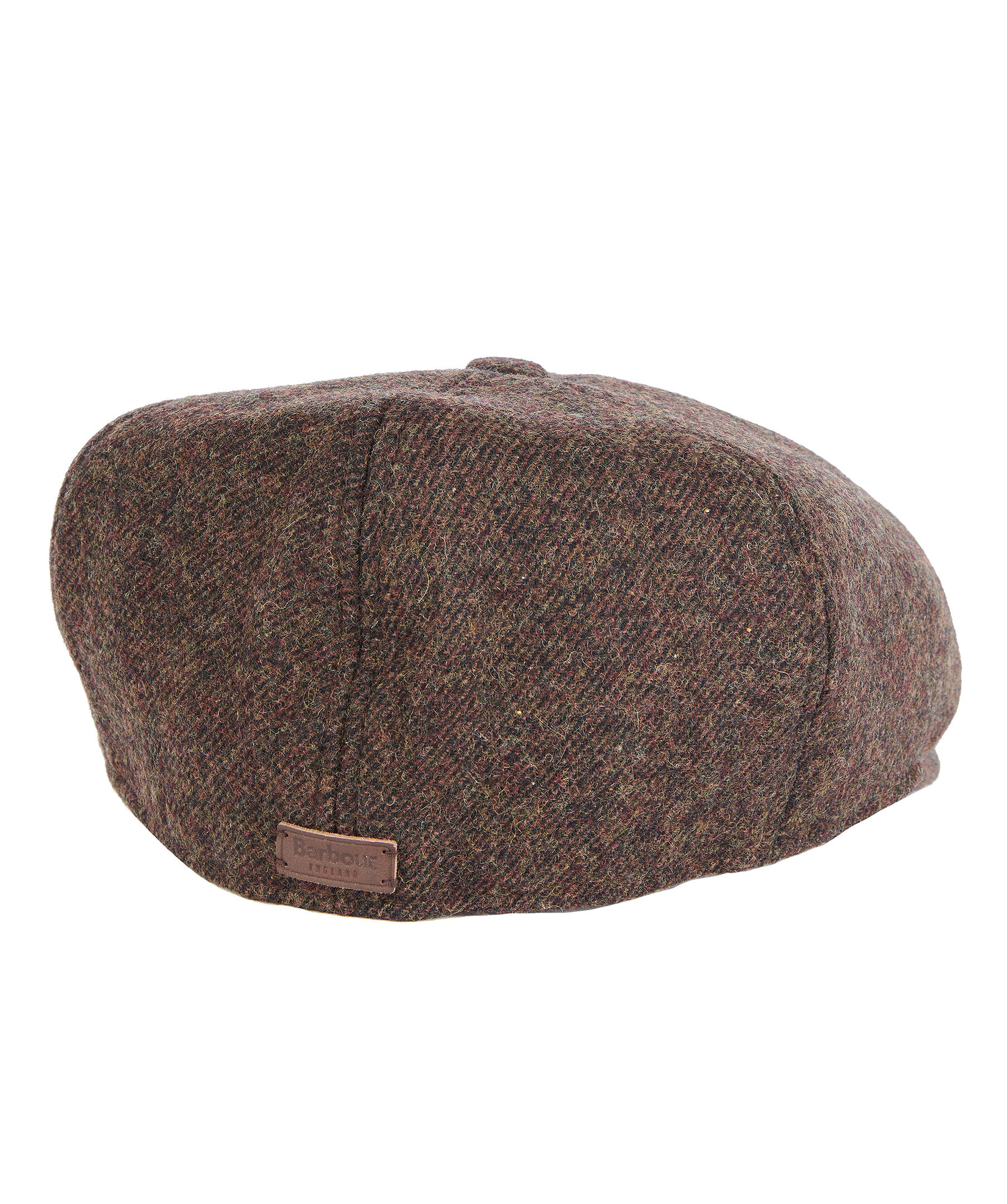 Brun keps i flatcap-modell från Barbour. Tillverkad i ullmix med rutigt foder i bomull. Litet märke i läder med logotyp i nacke.