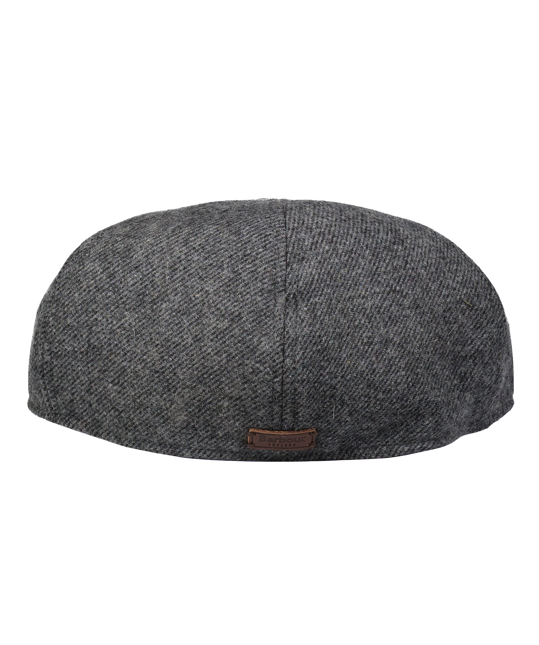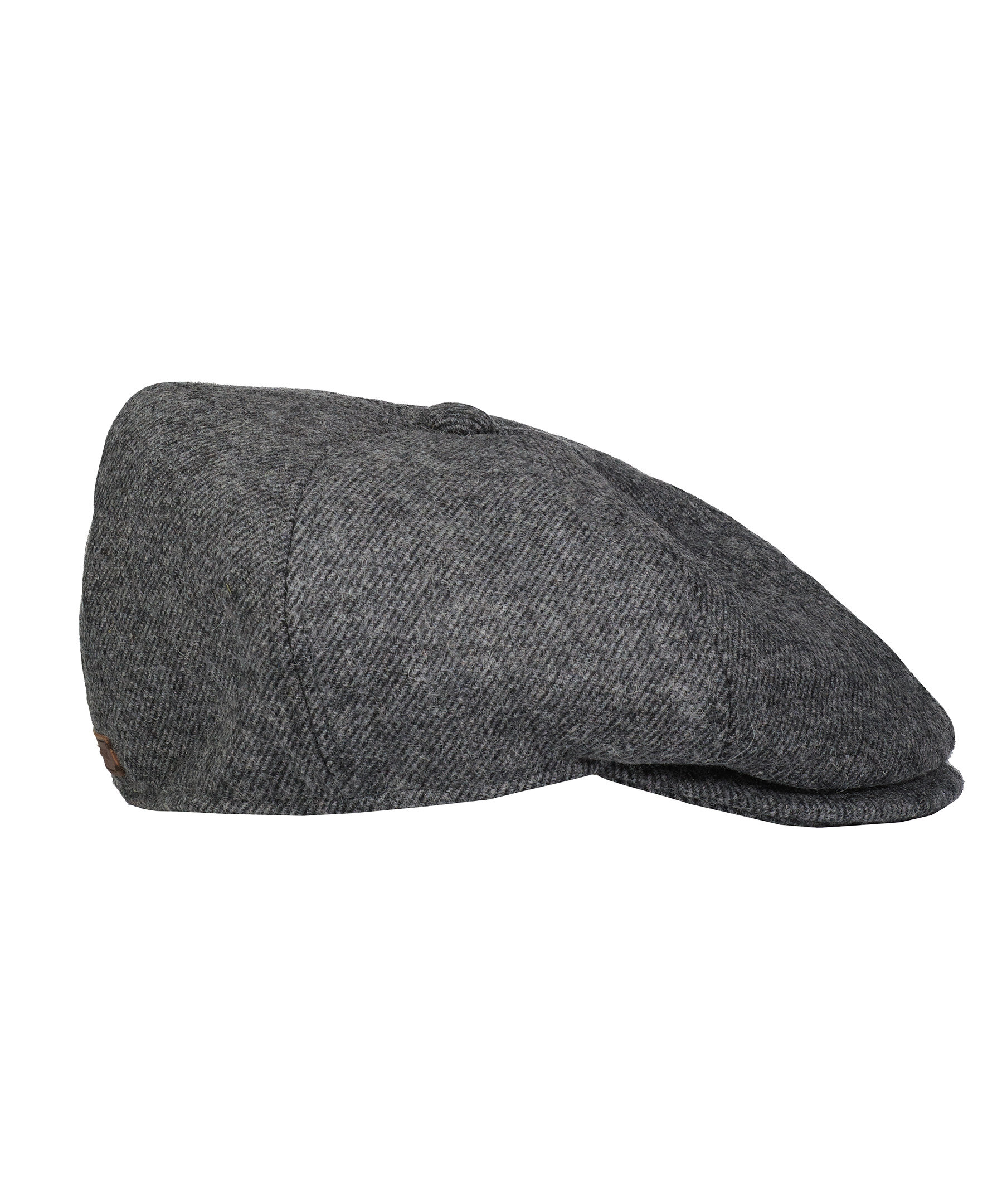 Gråmelerad tweedkeps från Barbour gjord i en ullmix. Kepsen har ett rutigt foder tillverkat i 100% bomull