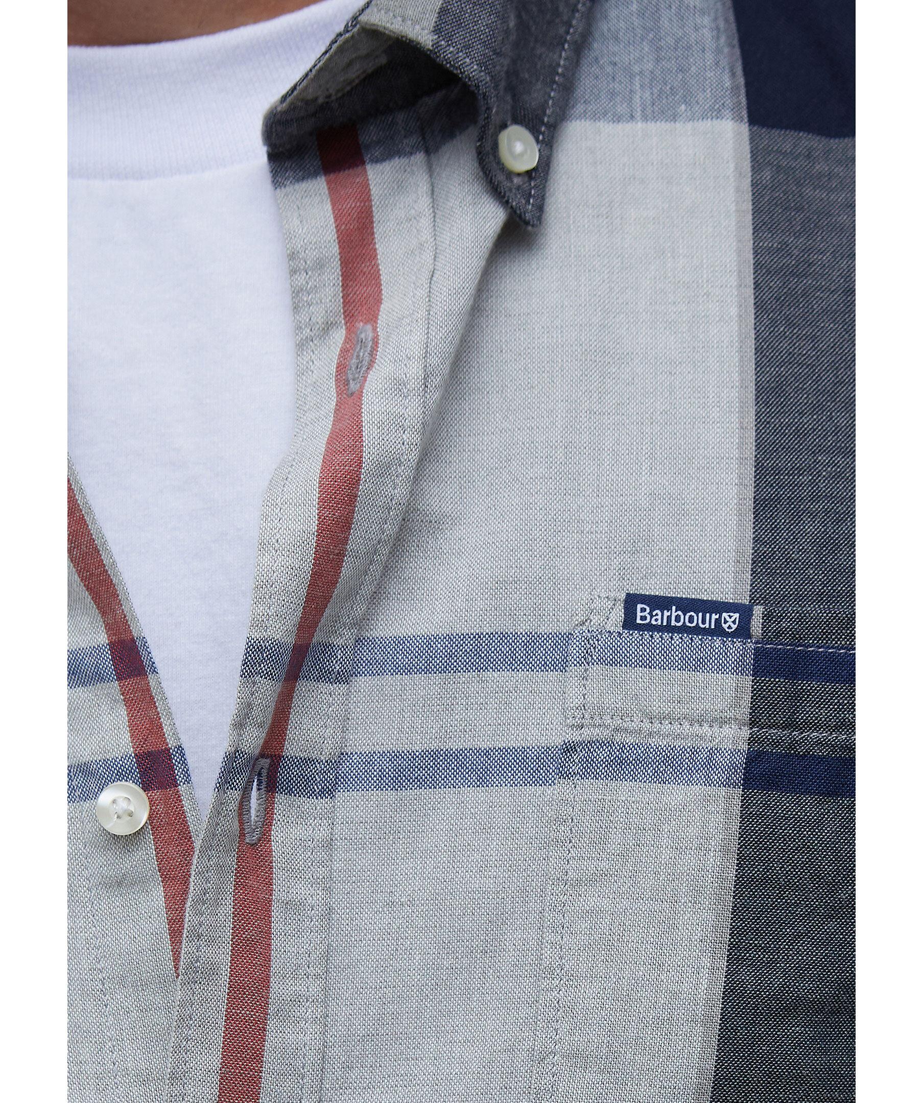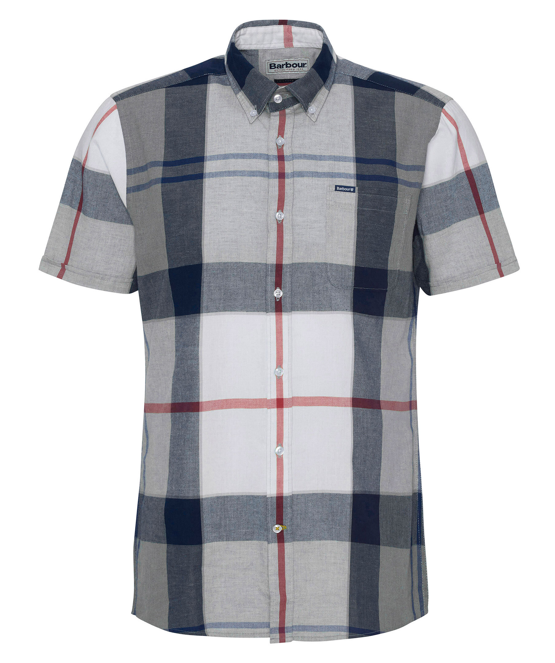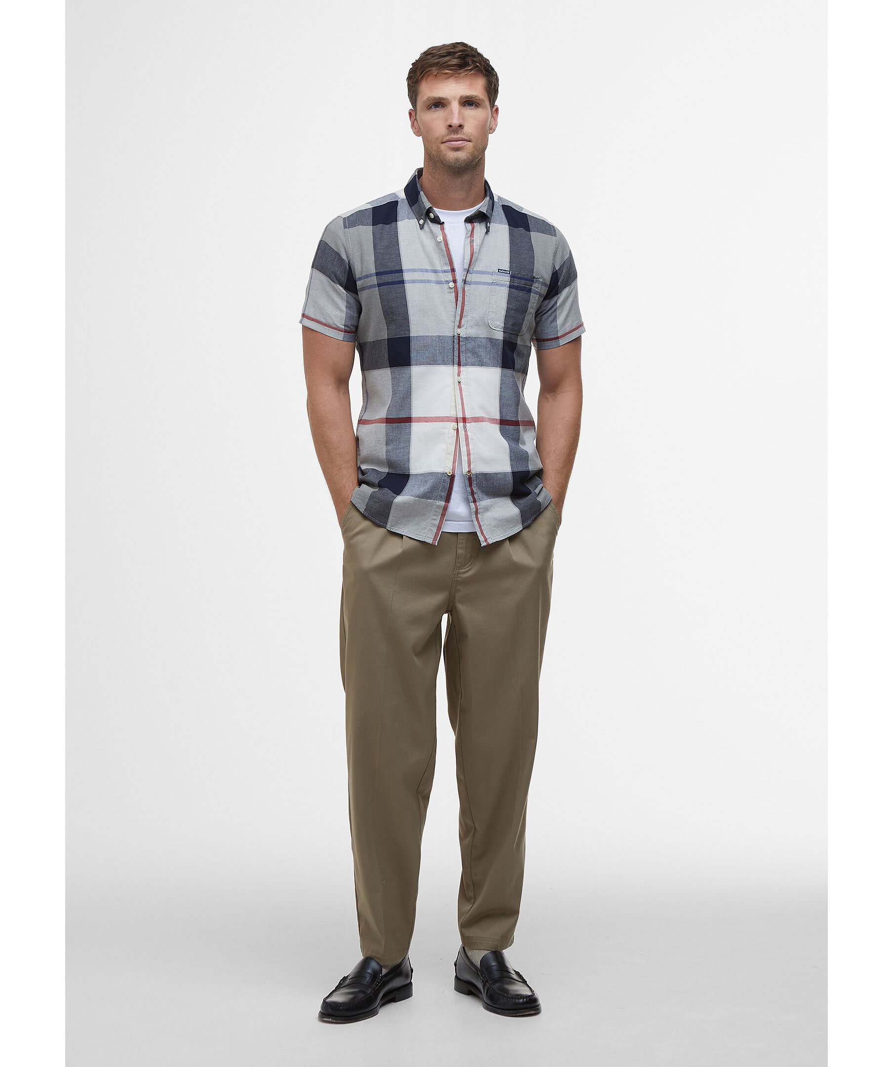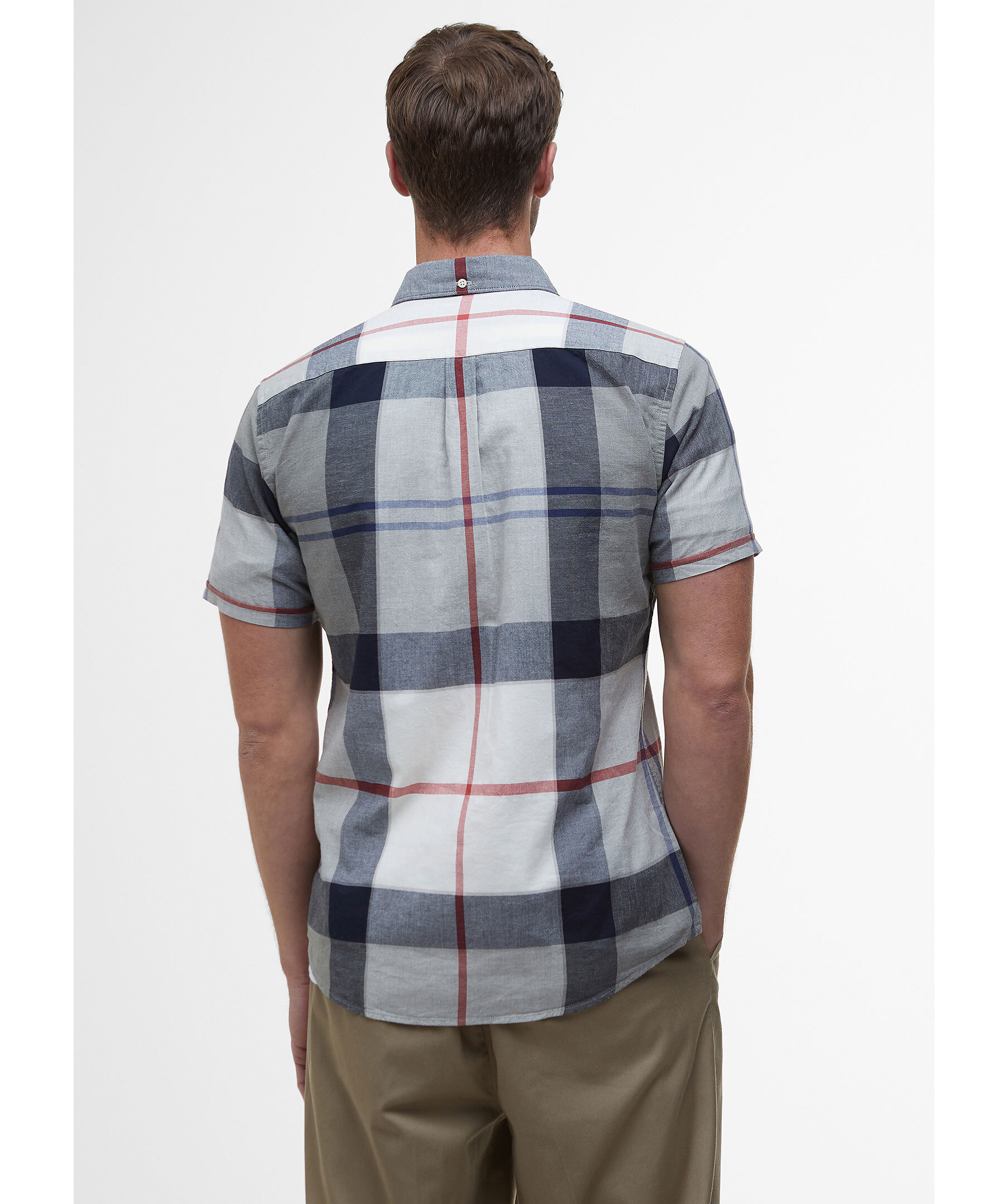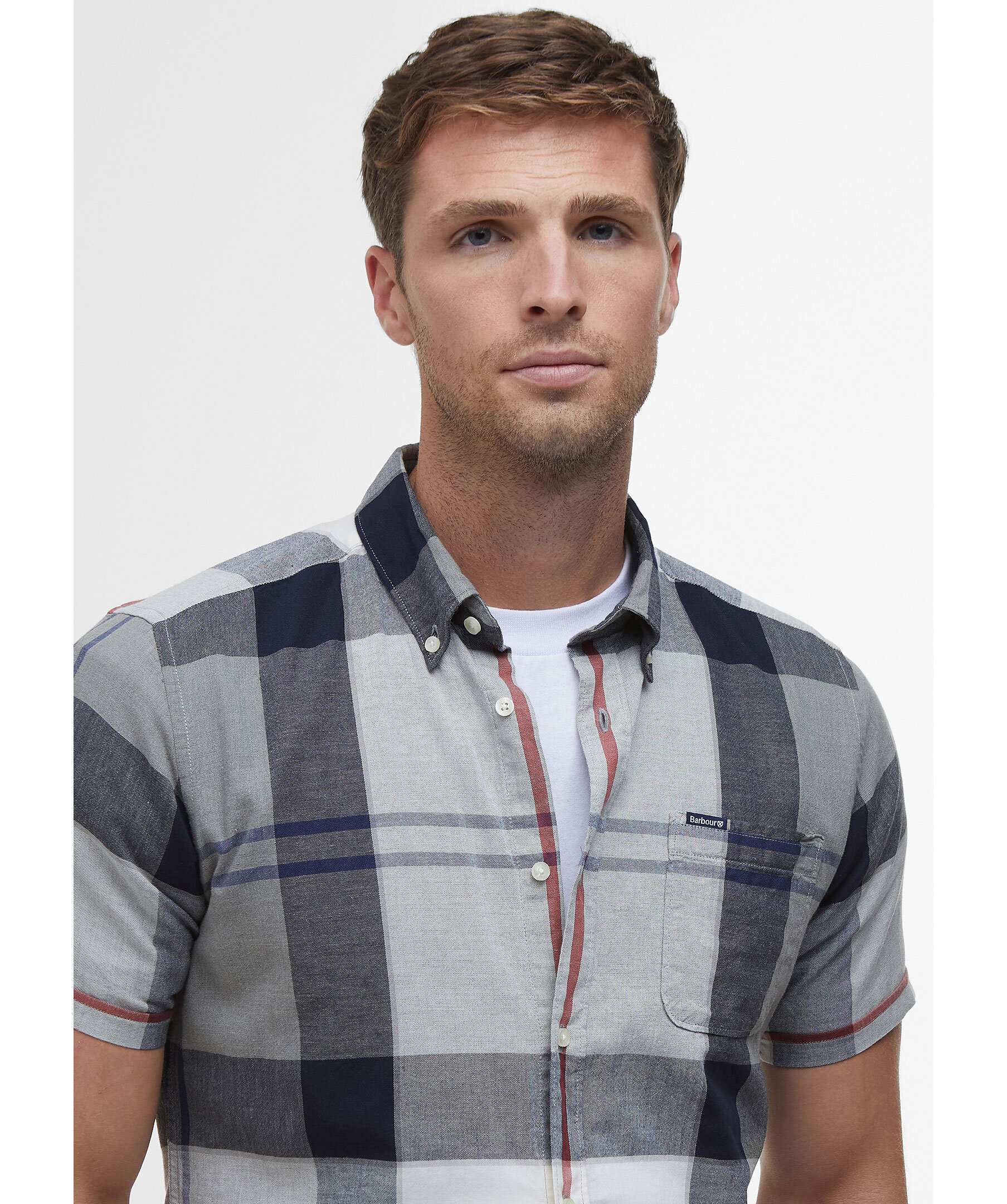 Blårutig, kortärmad skjorta från Barbour. Skjortan har button-down krage, en bröstficka med logotyp och är tillverkad i en lätt bomull- och linneblandning.