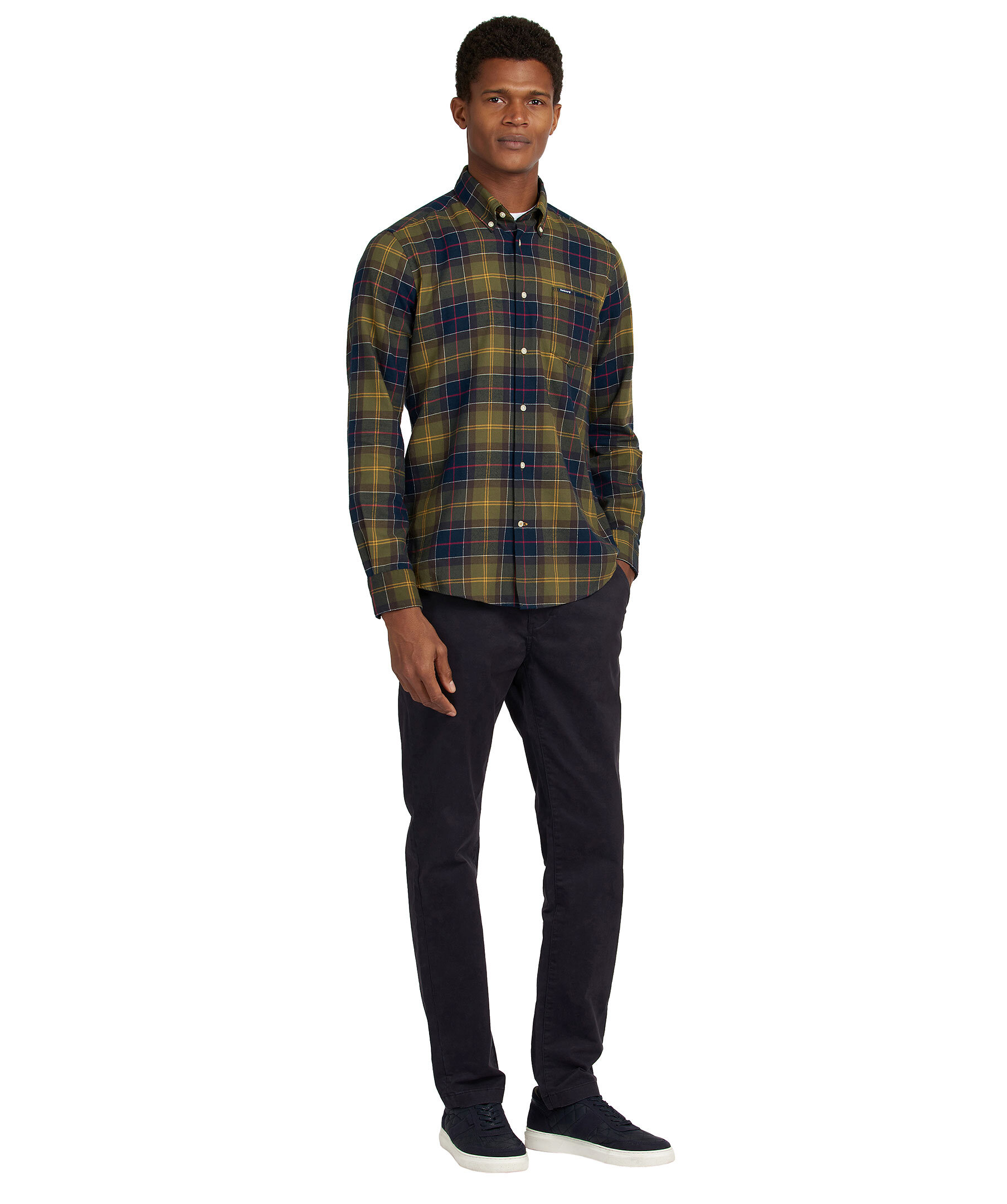 Grön, rutig skjorta från Barbour. Tillverkad i mjuk bomull. Button down krage, tailored fit, bröstficka med liten logotyp i tyg. Vita knappar fram och i ärmslut.