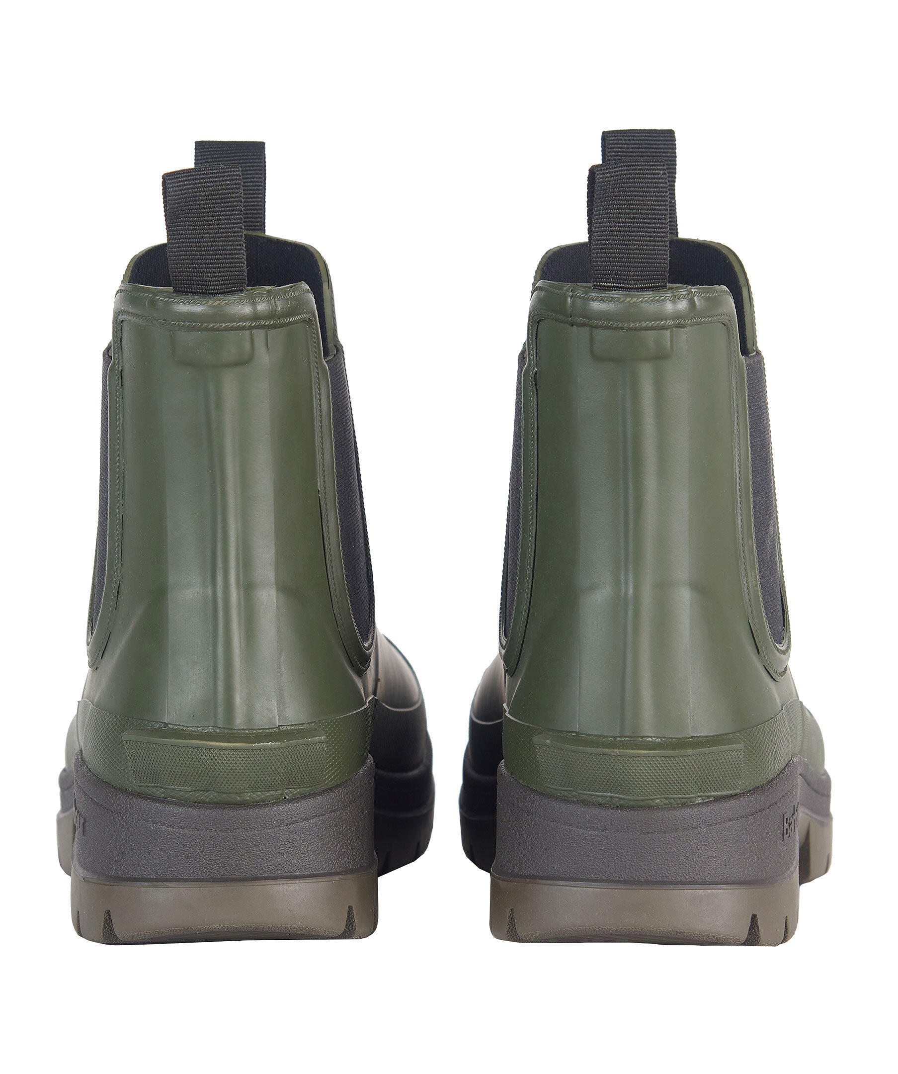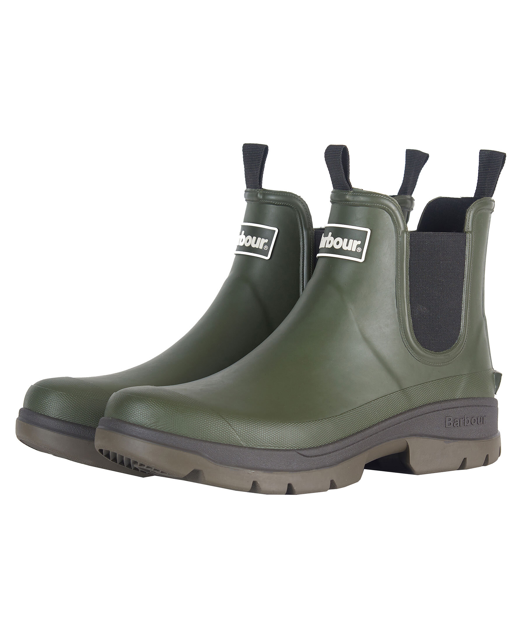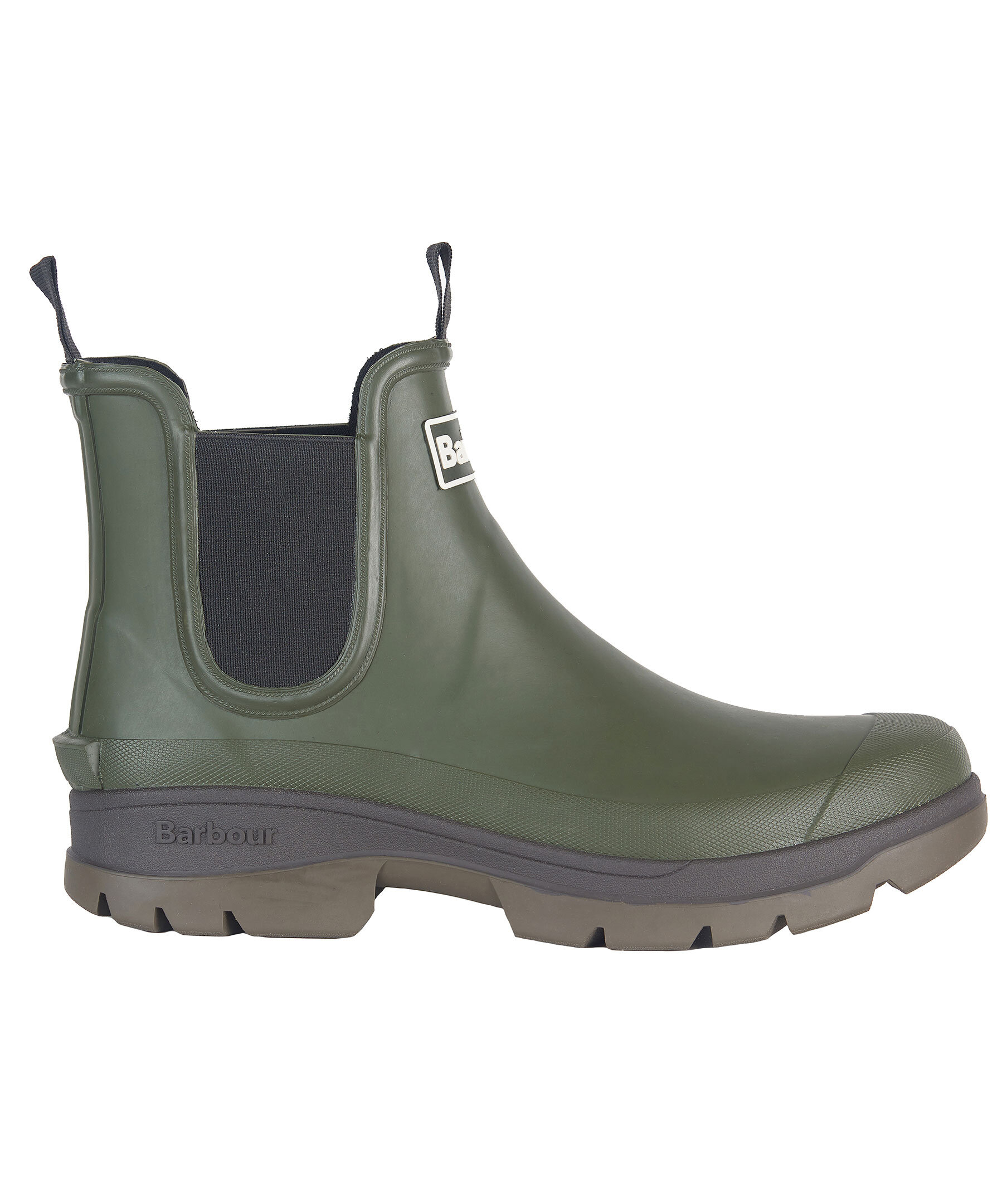 Gröna vattentäta chelseaboots från Barbour i gummi. Grov gummisula för ett stabilt och bra grepp. Logotyp framtill på skon. Resår i sidorna, öglor fram och bak.