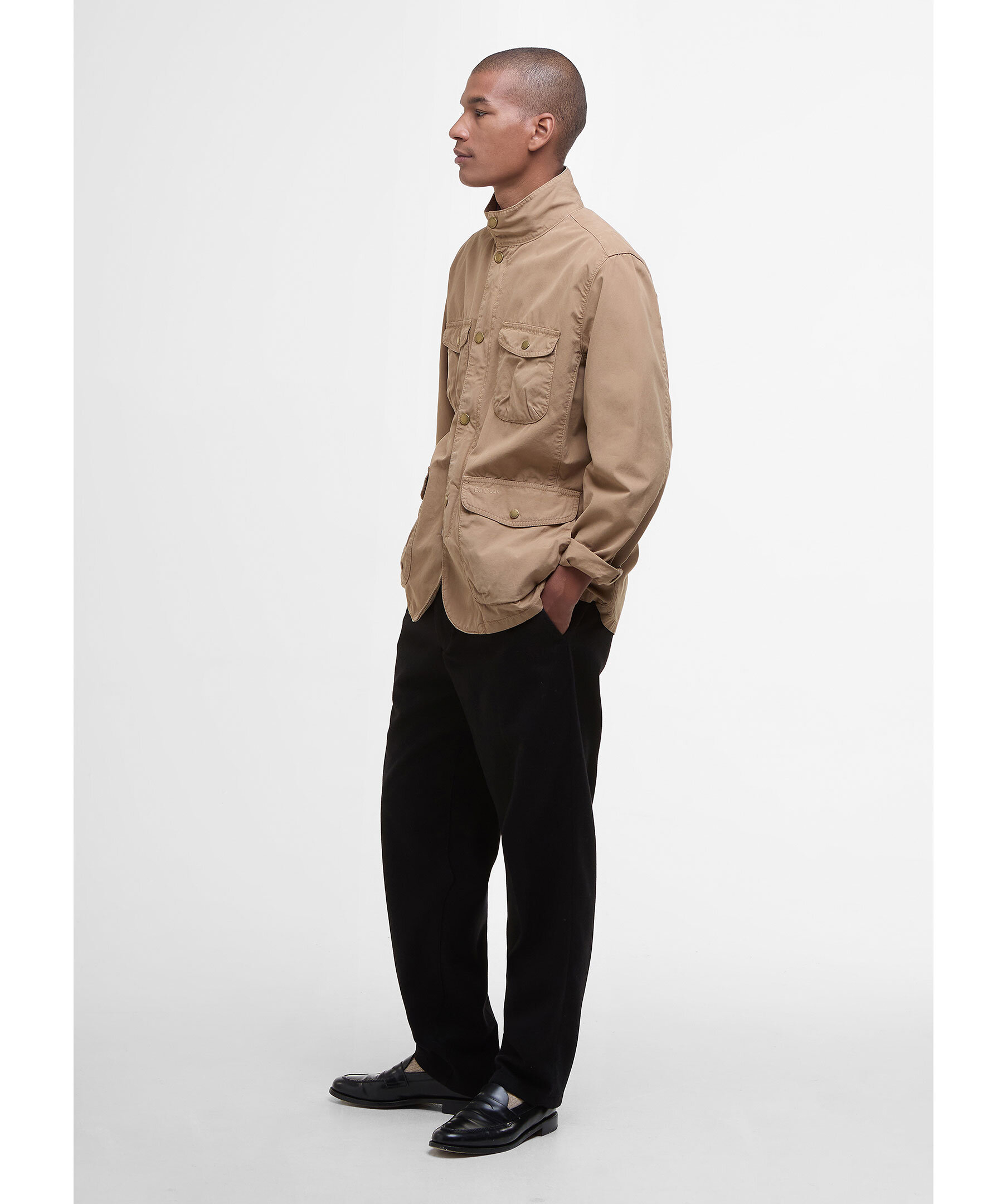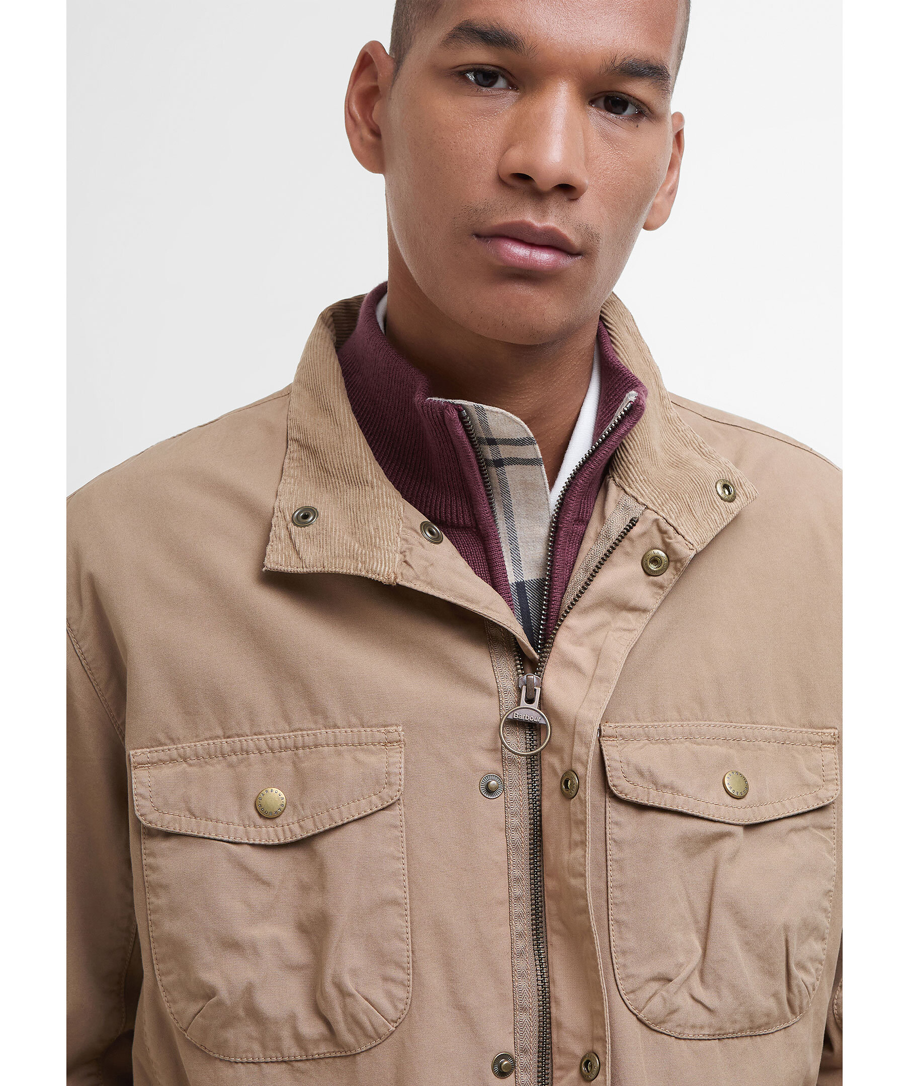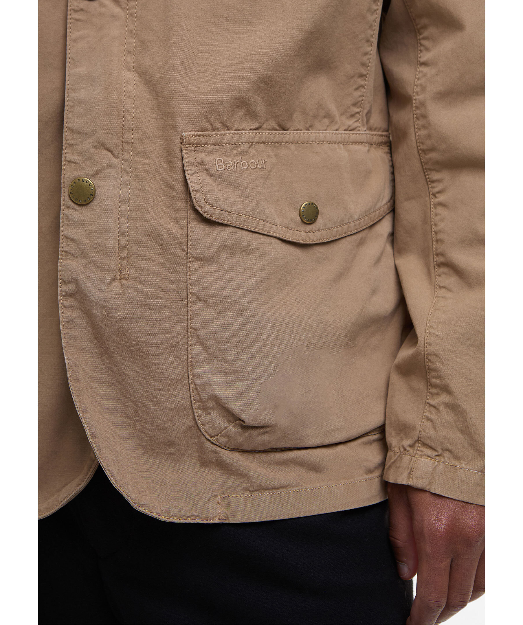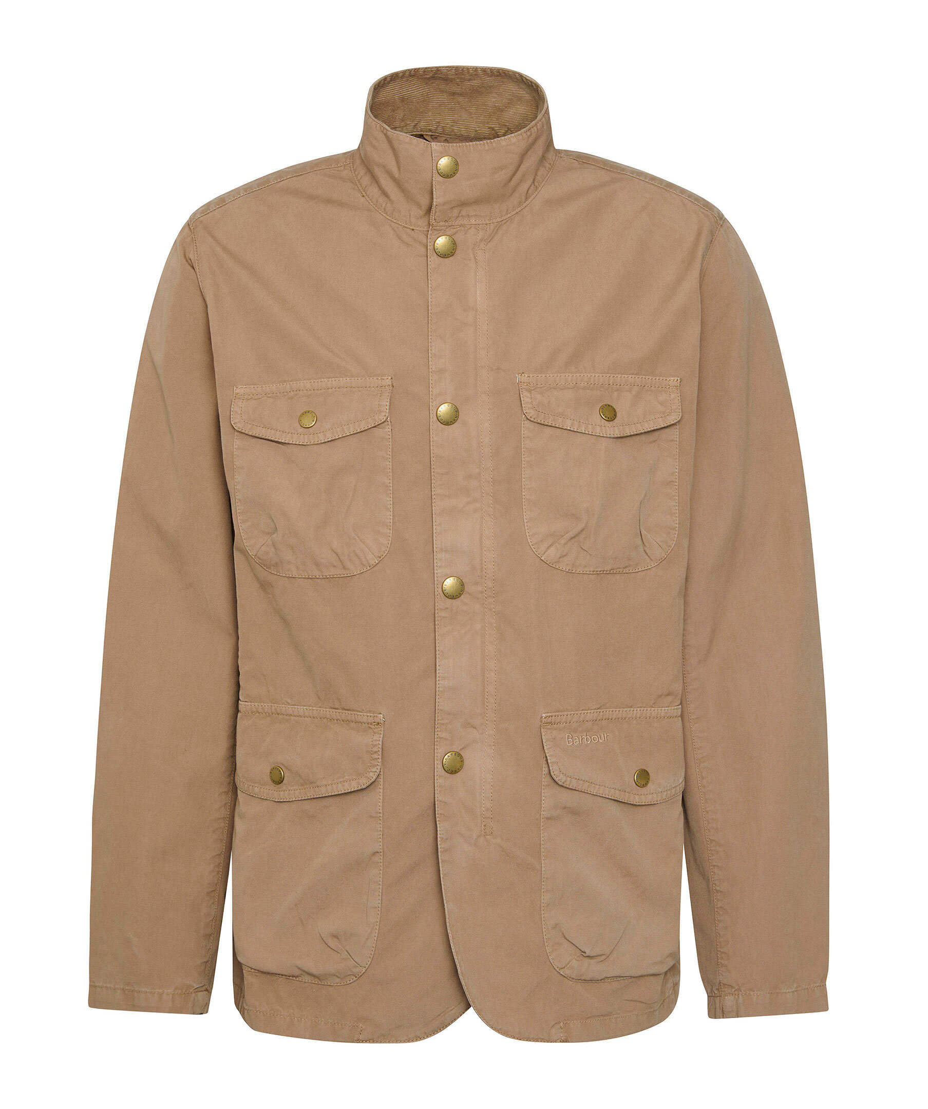 Beige jacka från Barbour. Jackan stängs med dold dragkedja och tryckknappar och har fyra fickor med lock och knapp. Subtilt, broderad logotyp på ena fickan. Tillverkad i bomull.