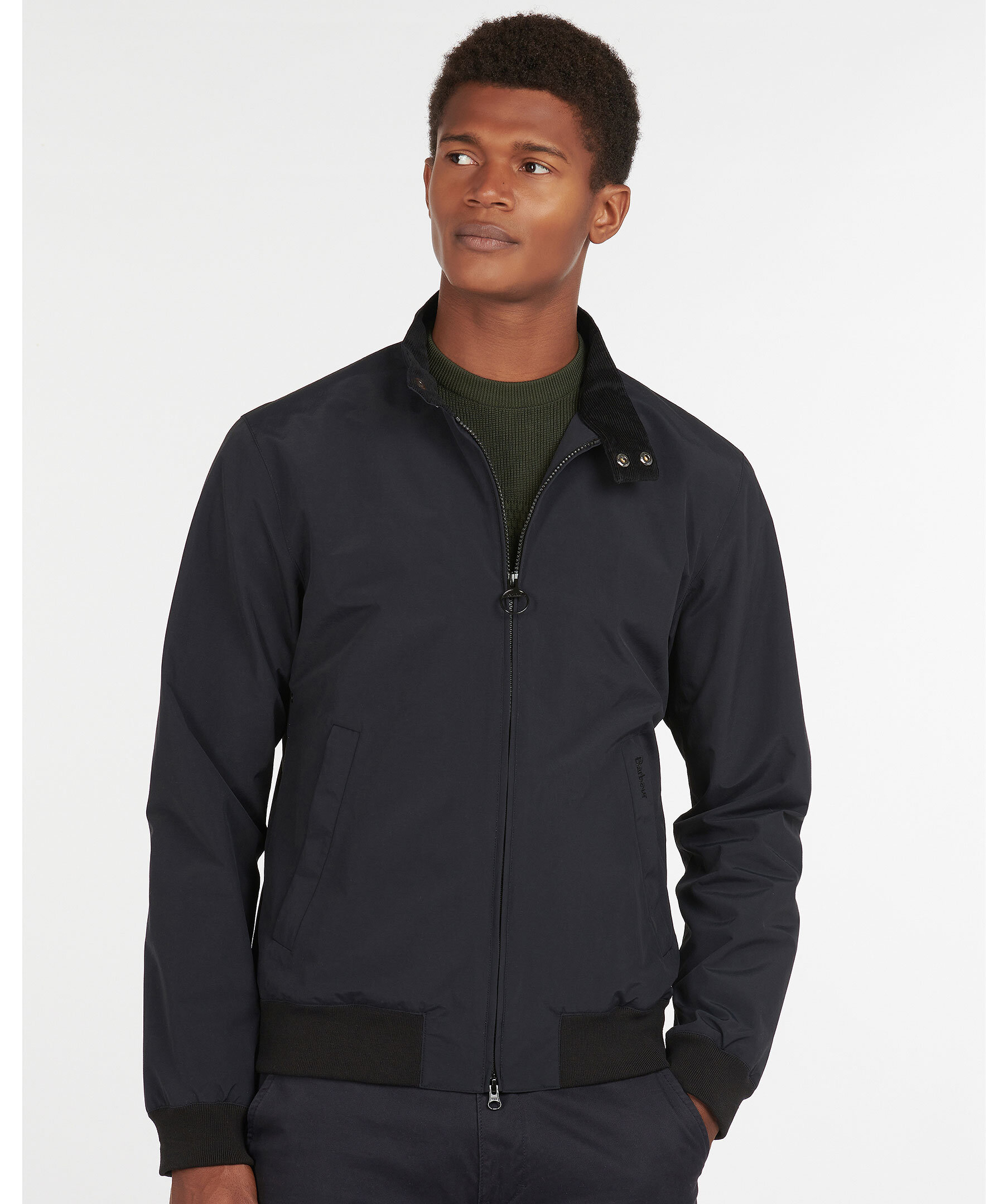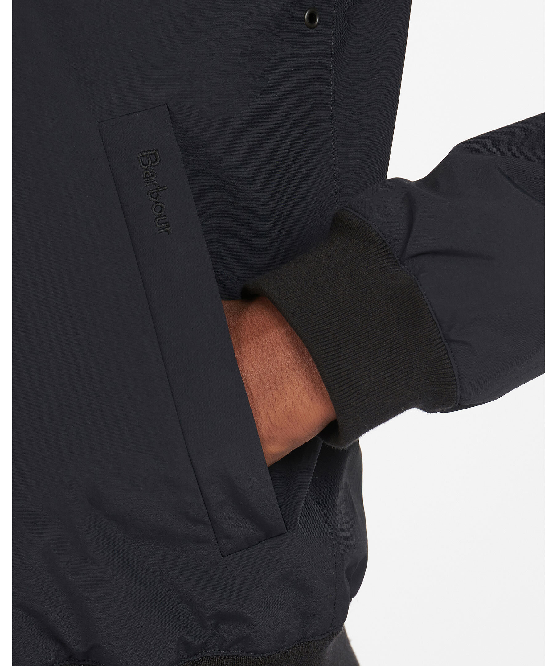 Svart vårjacka från Barbour. Tillverkad i polyamid och har en krage med insida av manchestertyg. Stängs med tvåvägsdragkedja och har två tryckknappar längst upp på kragen. Diskret logga broderad på vänster framficka, två sidofickor med dold dragkedja samt två innerfickor med knapp. Elastiska muddar i ärmslut och i plaggslut.