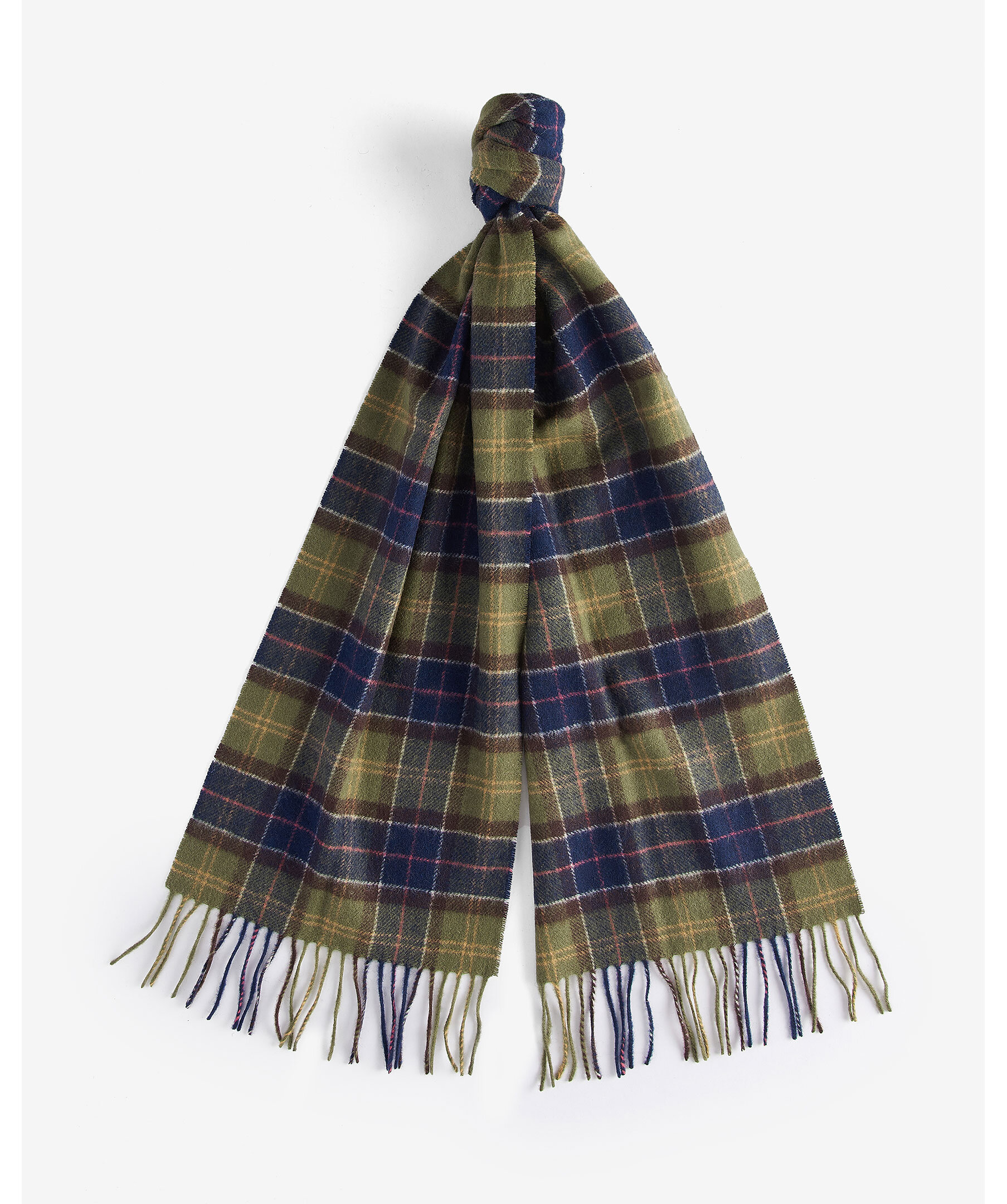 Klassiskt rutig scarf med fransar från Barbour. Tillverkad i 100% lammull. Mått: 180cm x 25cm.