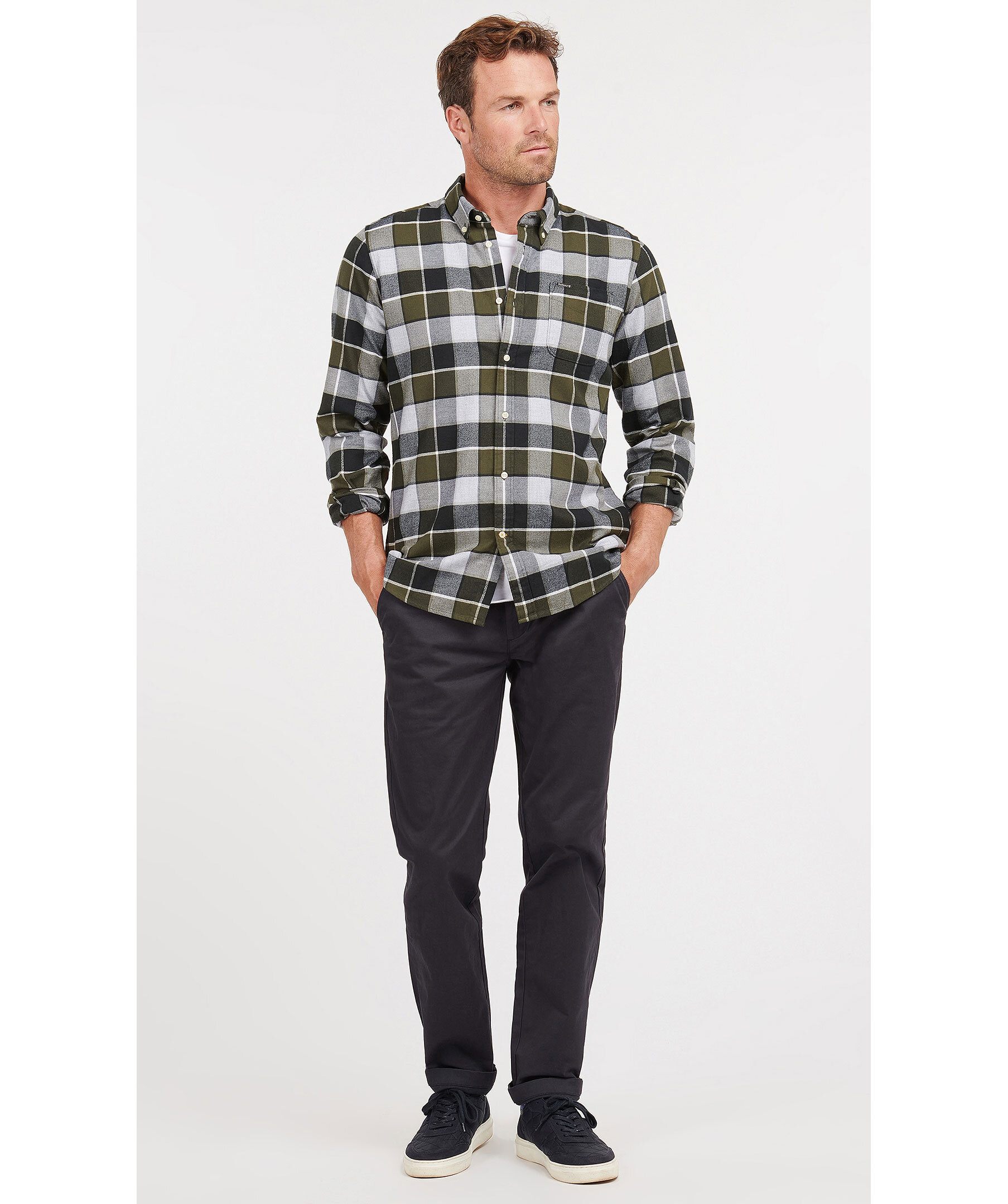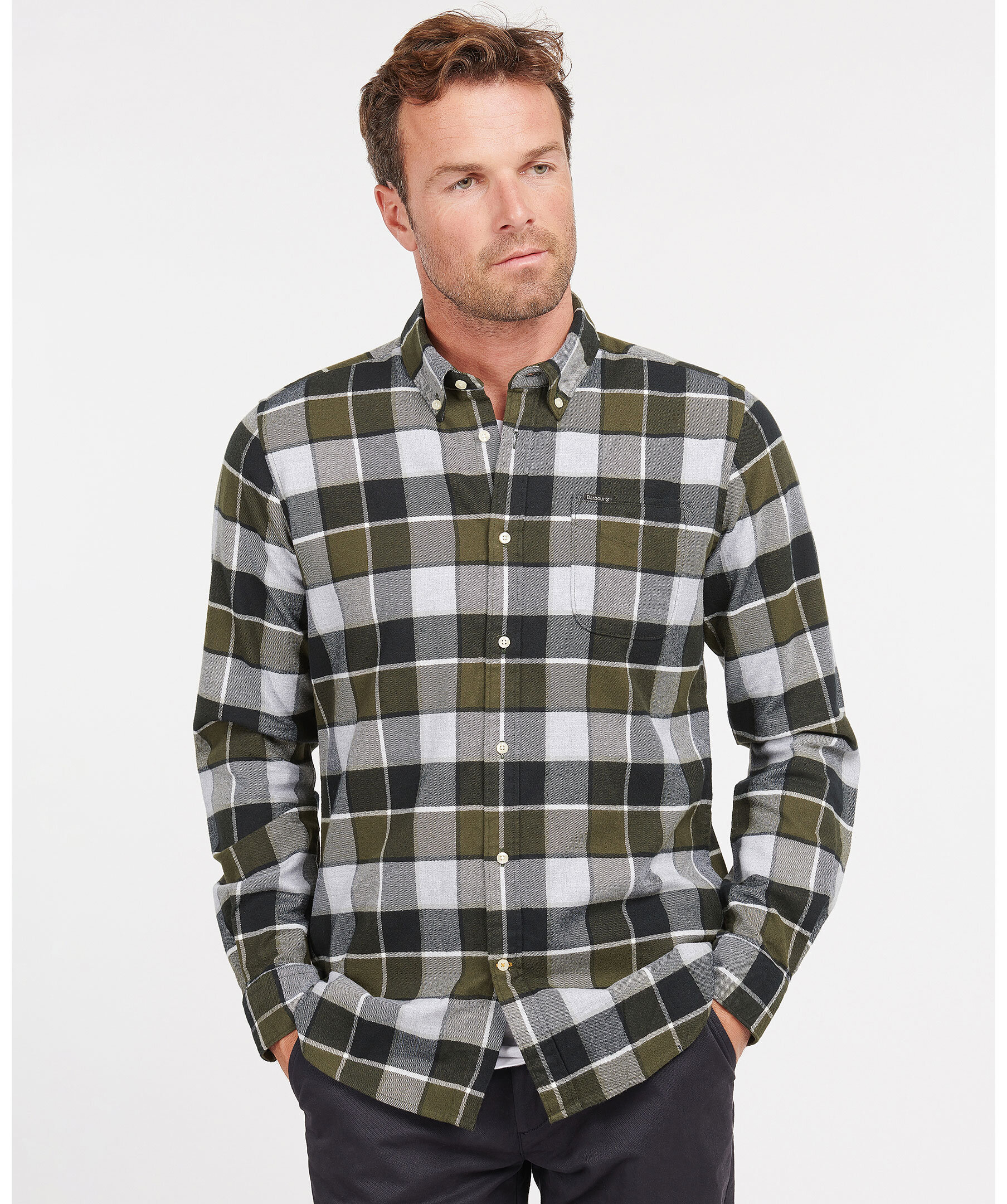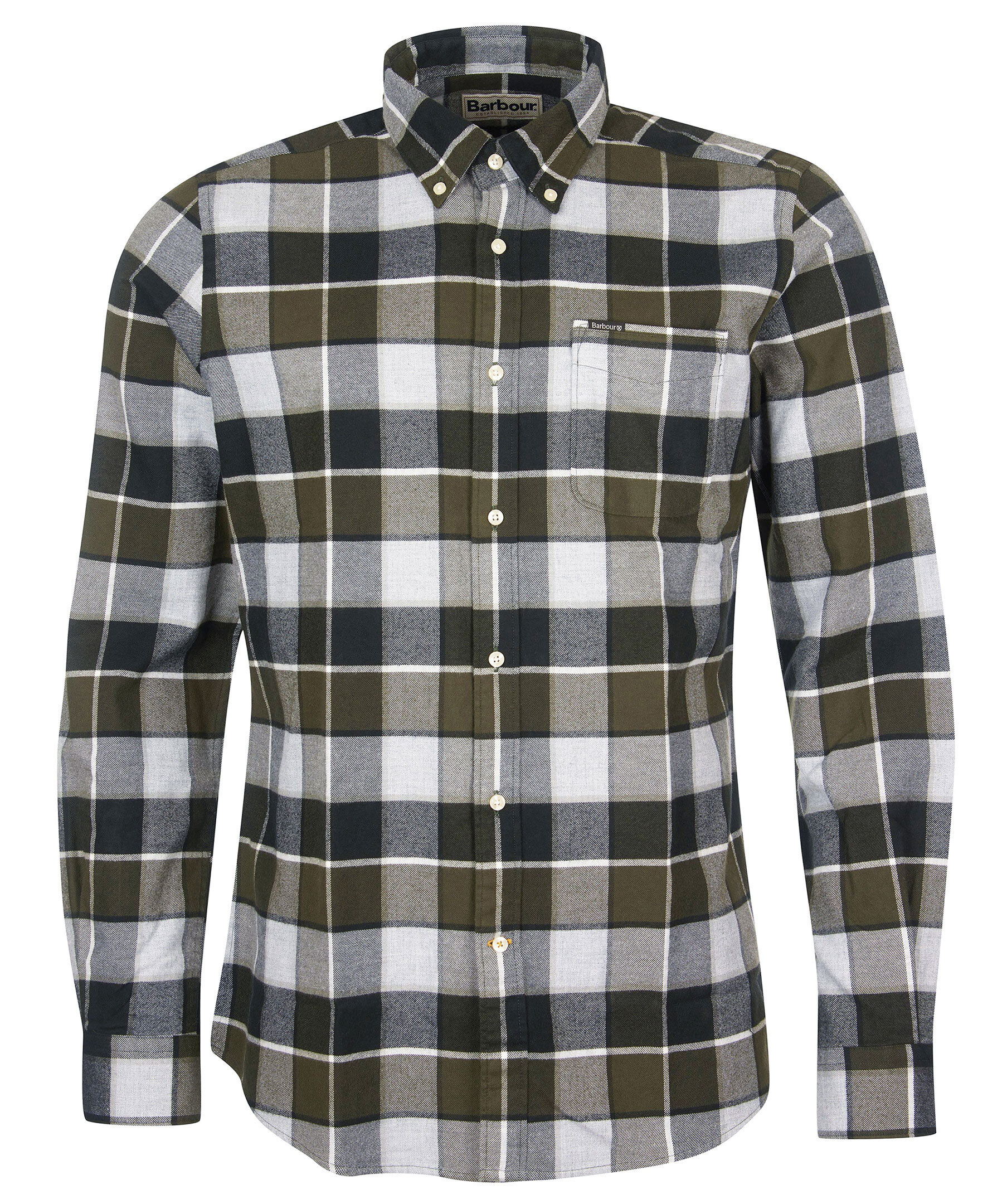 Grön och grå, rutig skjorta från Barbour. Tillverkad i mjuk bomull. Button down krage, tailored fit, bröstficka med liten logotyp i tyg. Vita knappar fram och i ärmslut.
