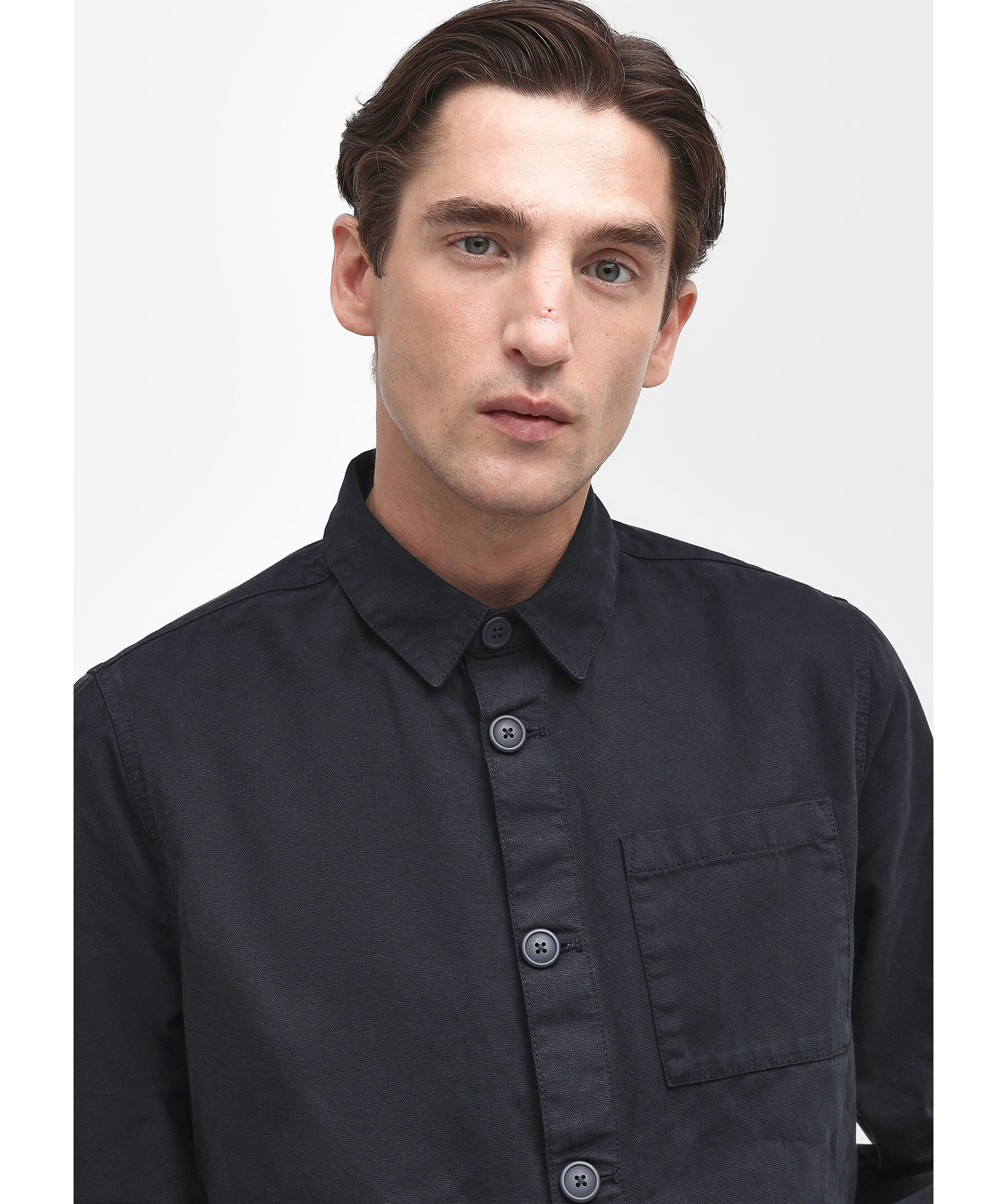 Mörkblå overshirt från Barbour. Plagget är tillverkat av 100 % bomull och är skuren till en skräddarsydd passform. Med långa ärmar, knäppning framtill, två sidfickor och en bröstficka gör den en bra följeslagare för jeans och träningsskor.