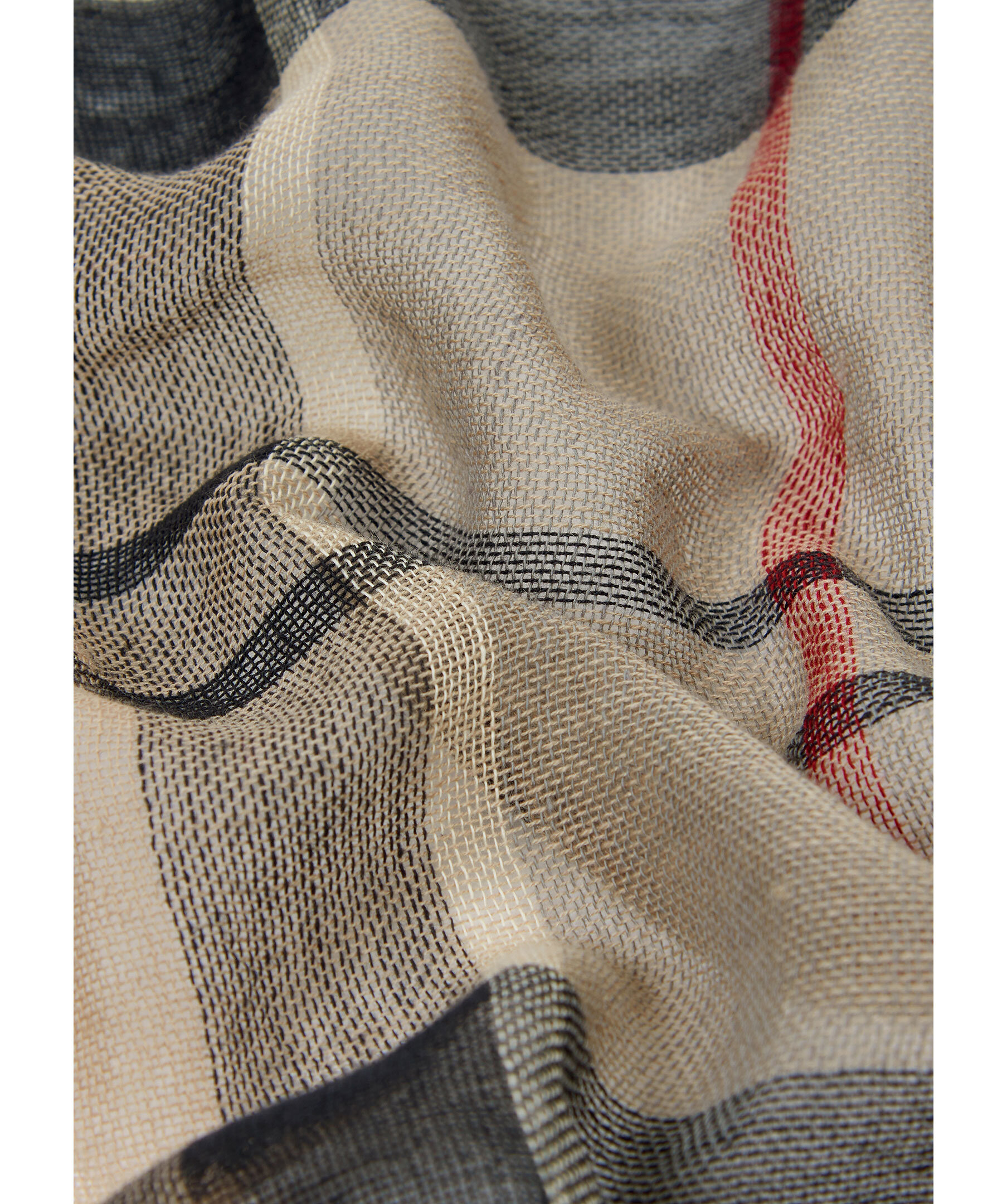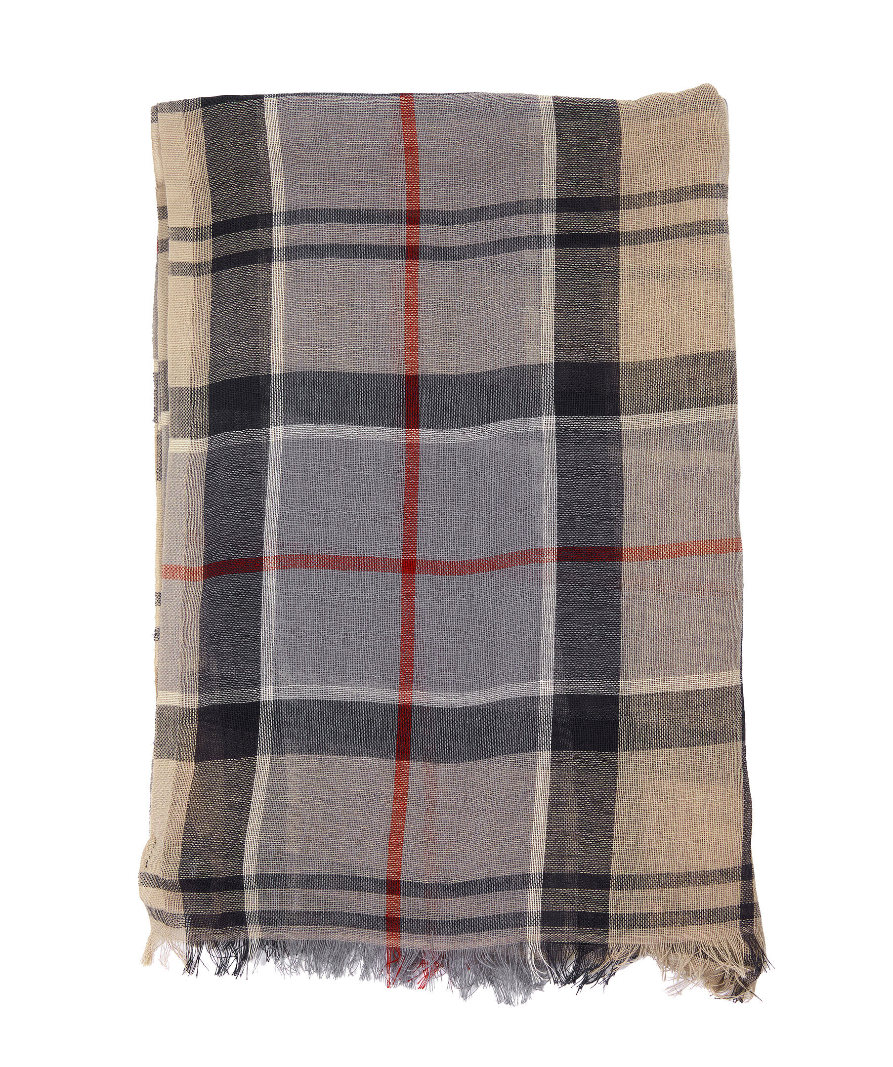 Beige, klassisk rutig scarf från Barbour. Tillverkad i bomull och linne. Små fransar på kortsidans kanter. Mått: 190cm x 66cm.