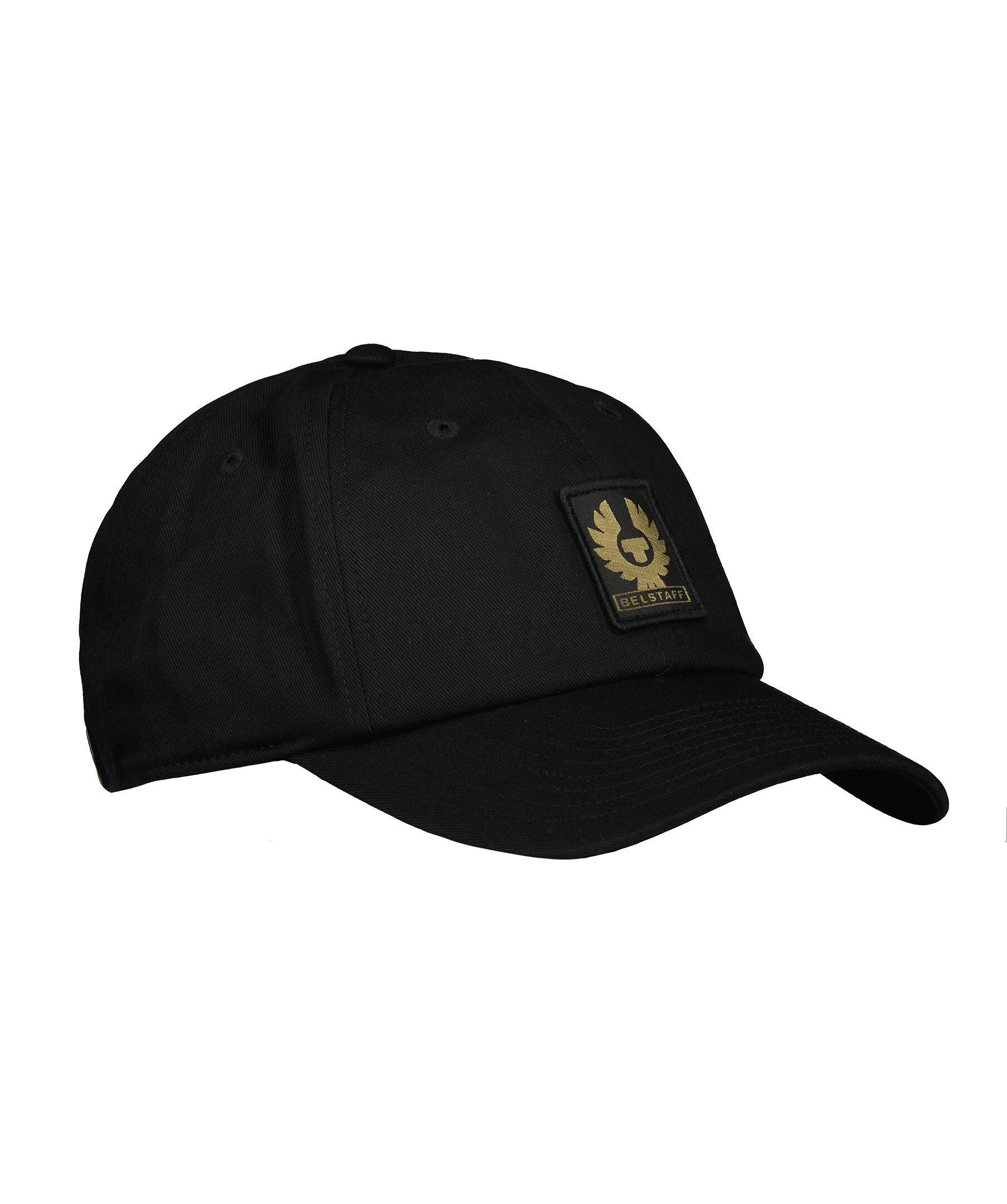 Svart keps från Belstaff. Patch med logotyp framtill. Justerbart spänne baktill. Tillverkad i 100% bomull.