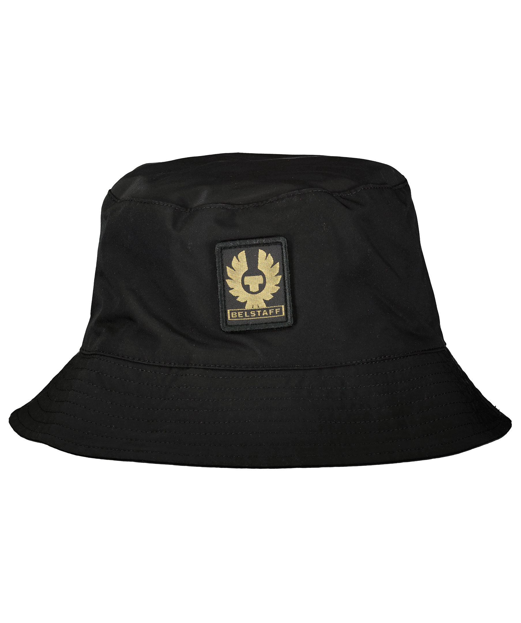 Svart, vändbar bucket hat från Belstaff. Patch med logotyp framtill. Tillverkad i 100% polyester.