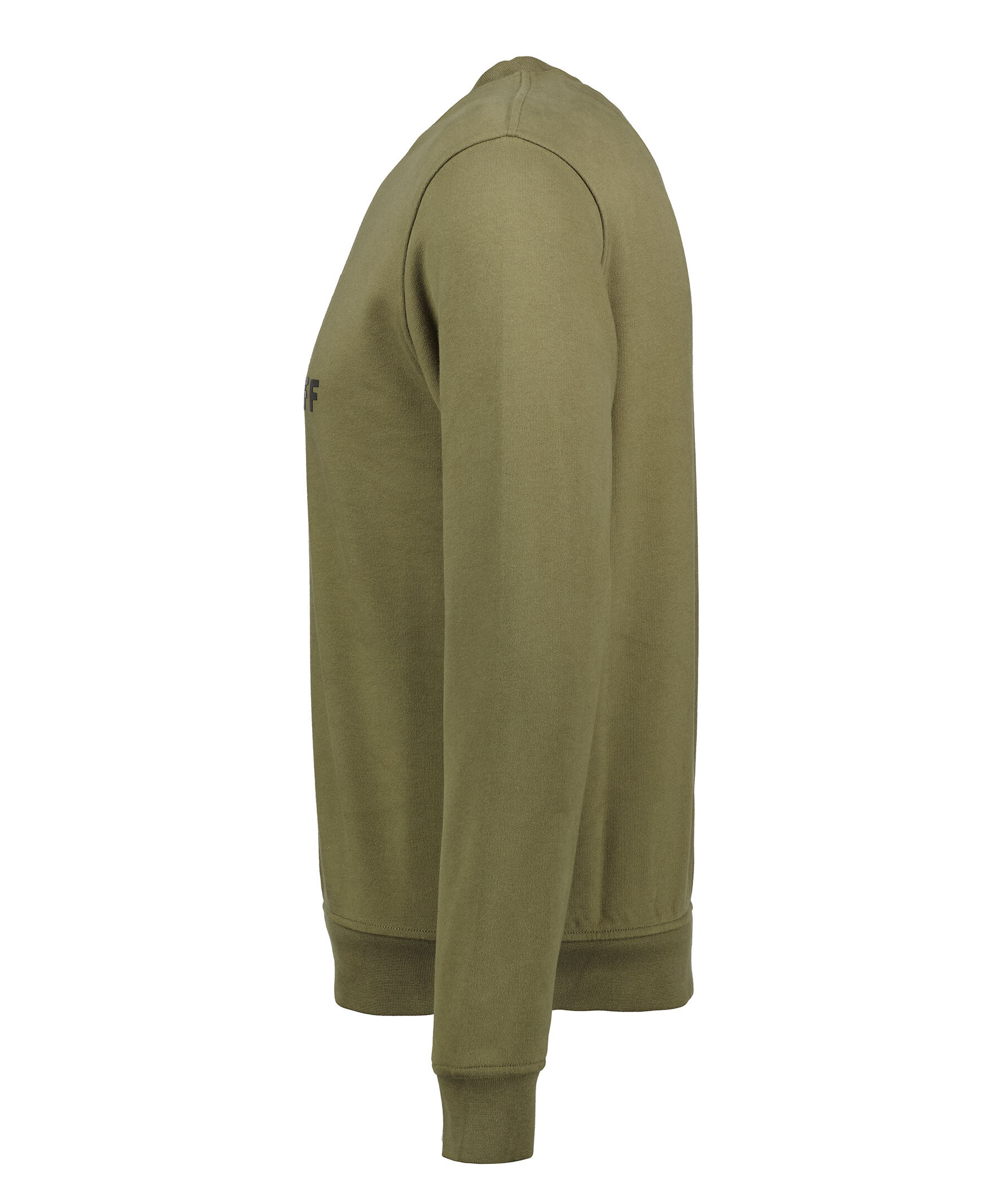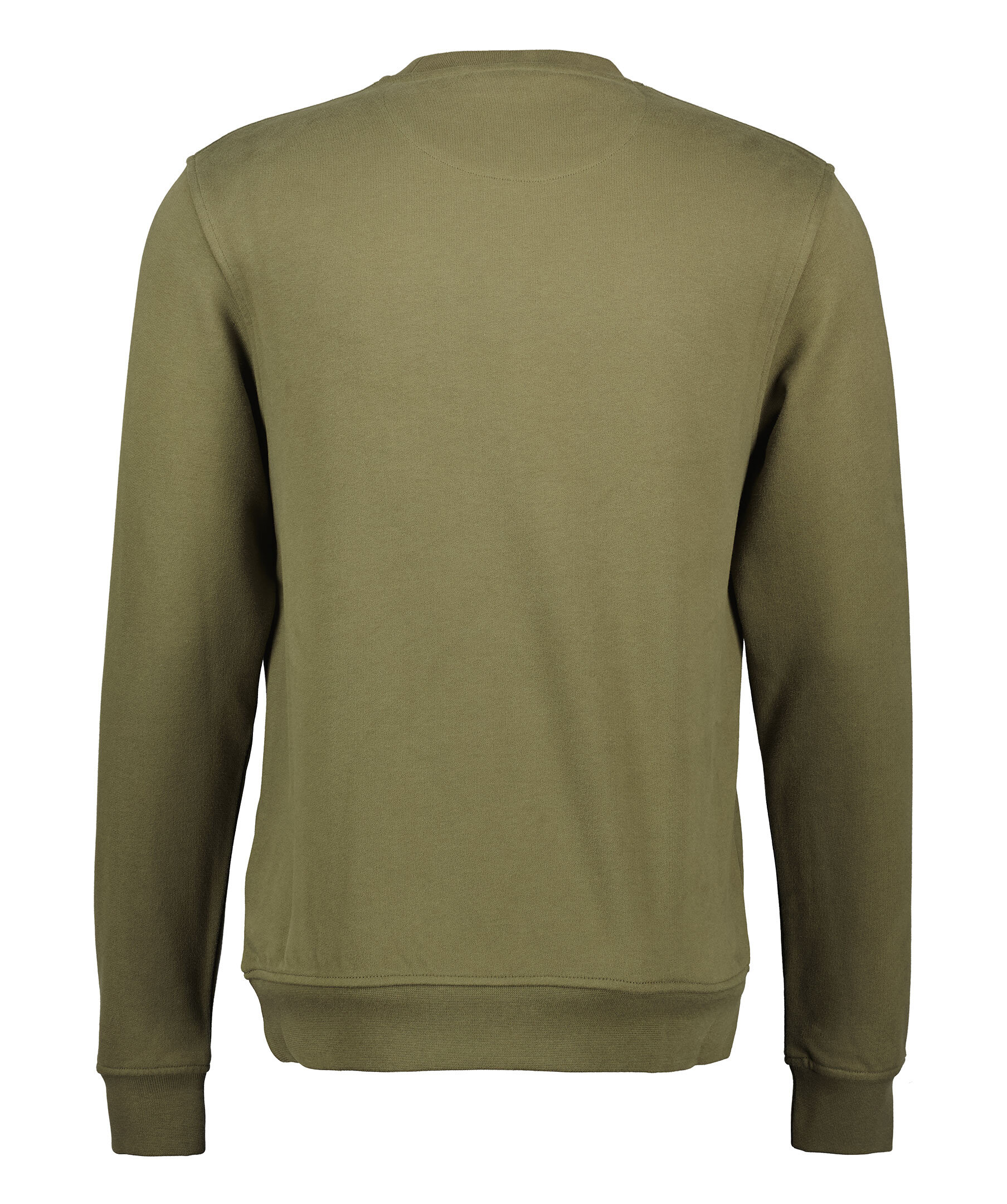 Olivgrön sweatshirt från Belstaff. Svart gummerad logotyp över bröstet. Ribbstickad mudd vid halsringningen, ärm- och plaggslut. Tillverkad i bomull.