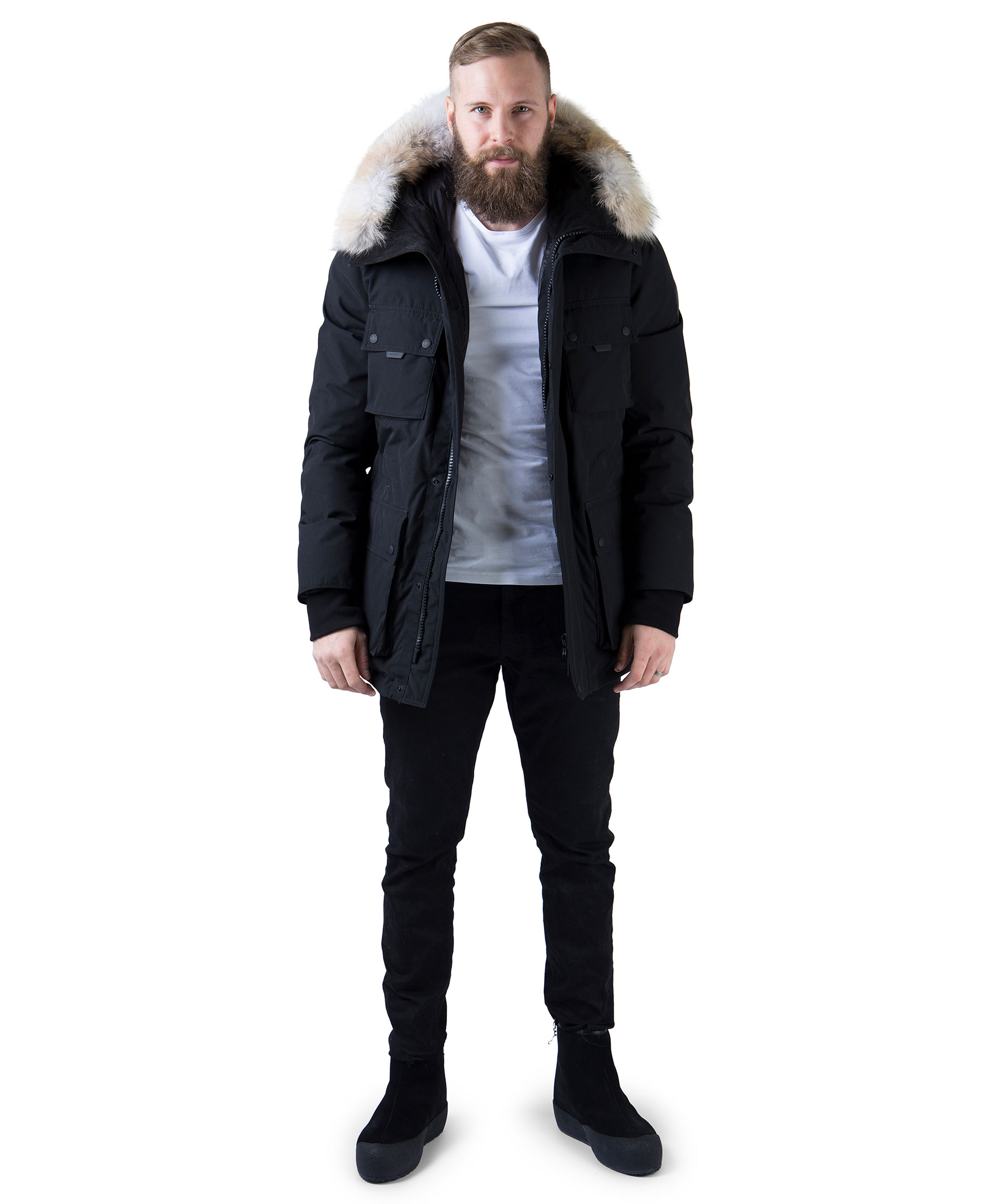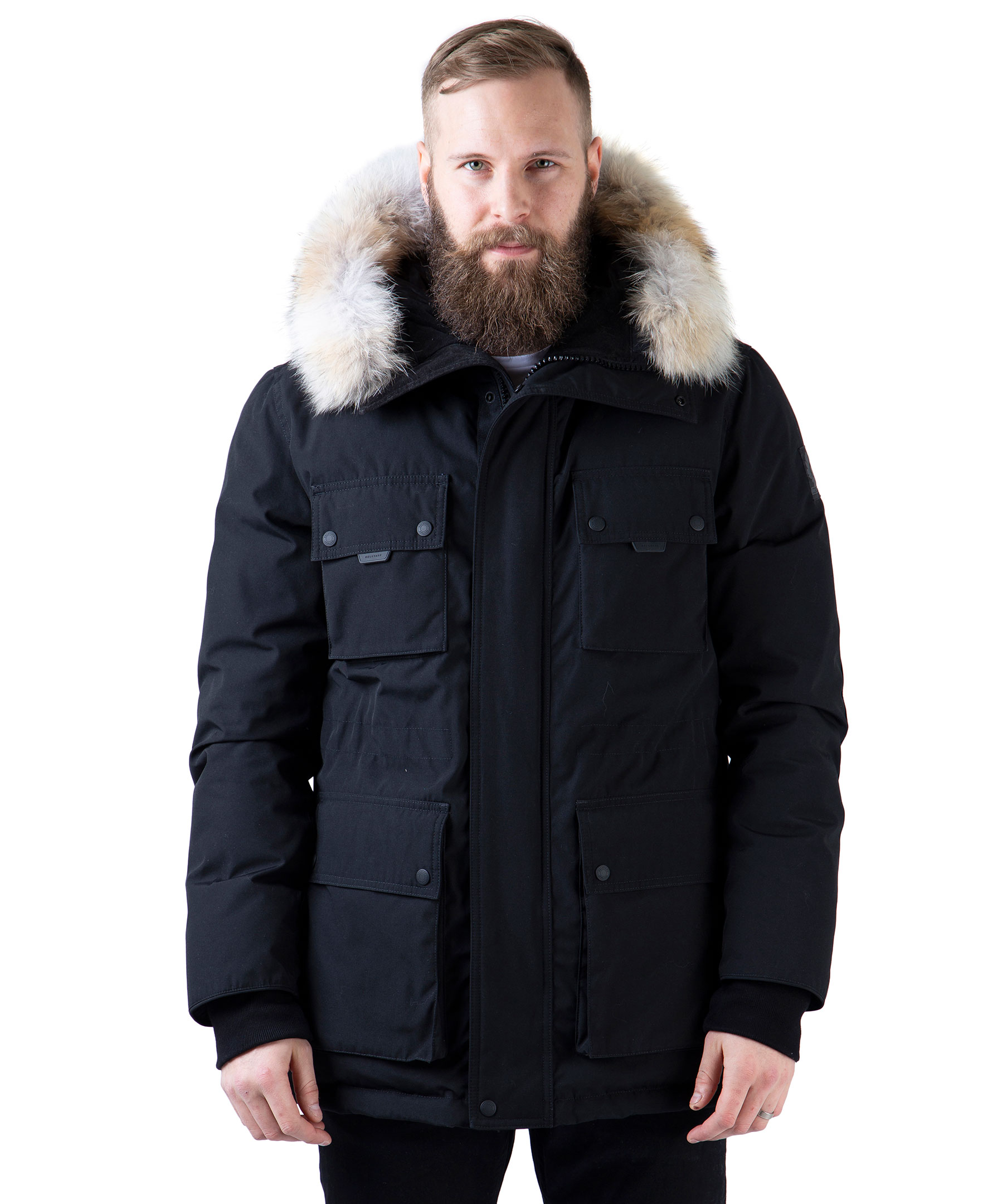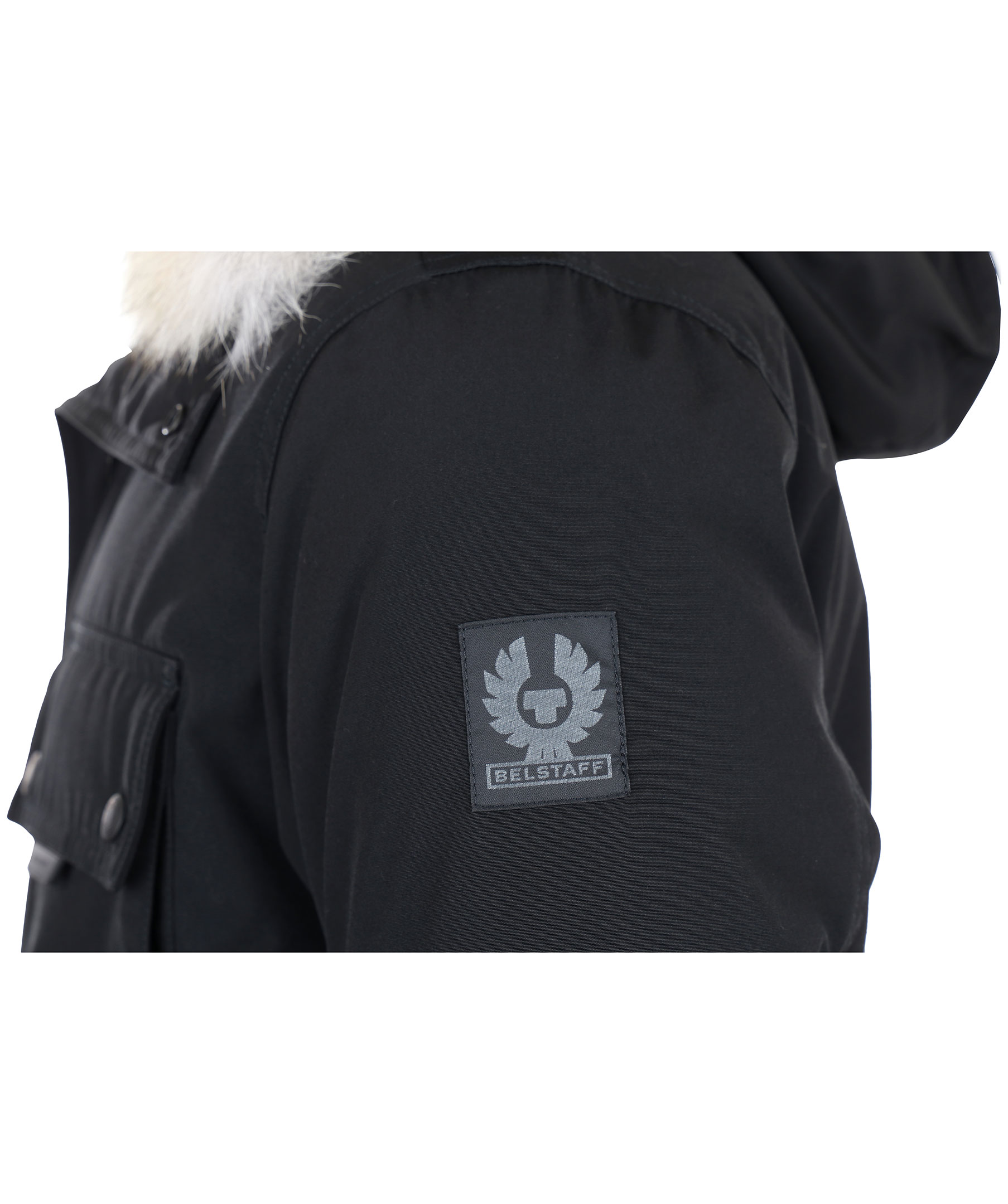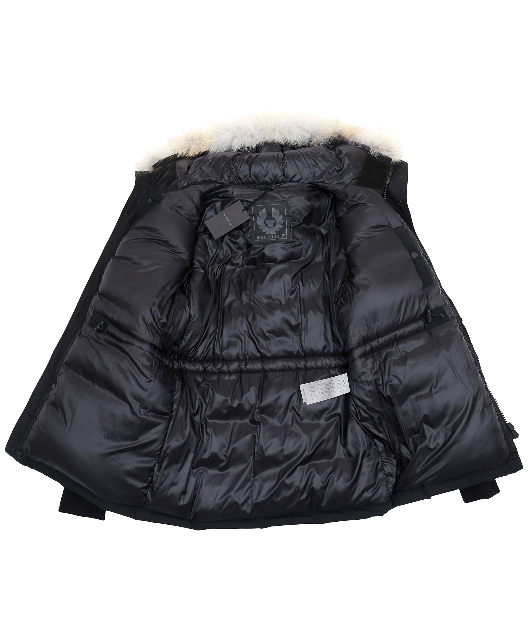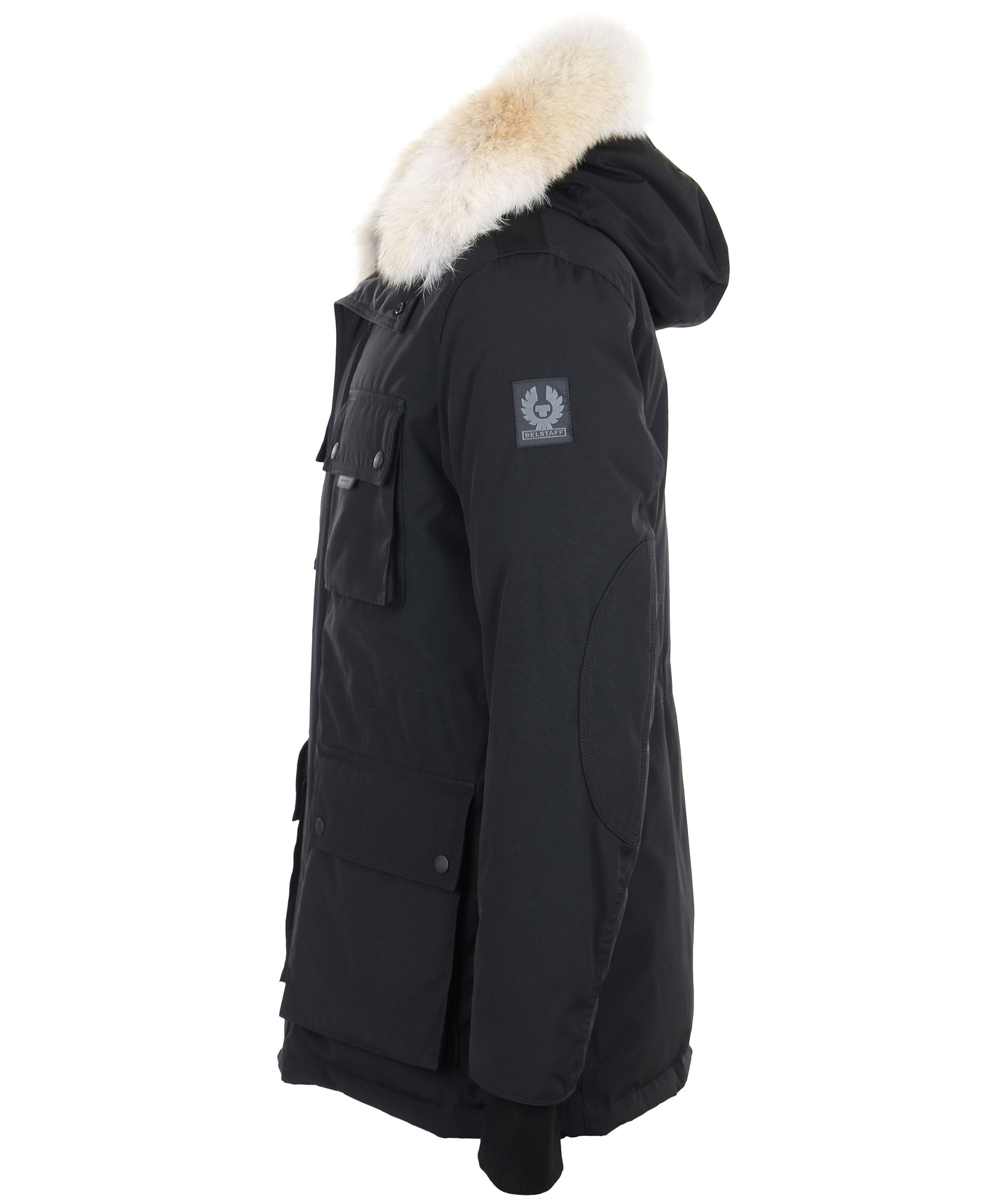 Dunjacka från Belstaff i polyester- och bomullsblandning. Jackan har luva med löstagbar krage i naturpäls samt flera praktiska fickor. Applikation med logotyp på vänster ärm. Ribbstickade muddar.