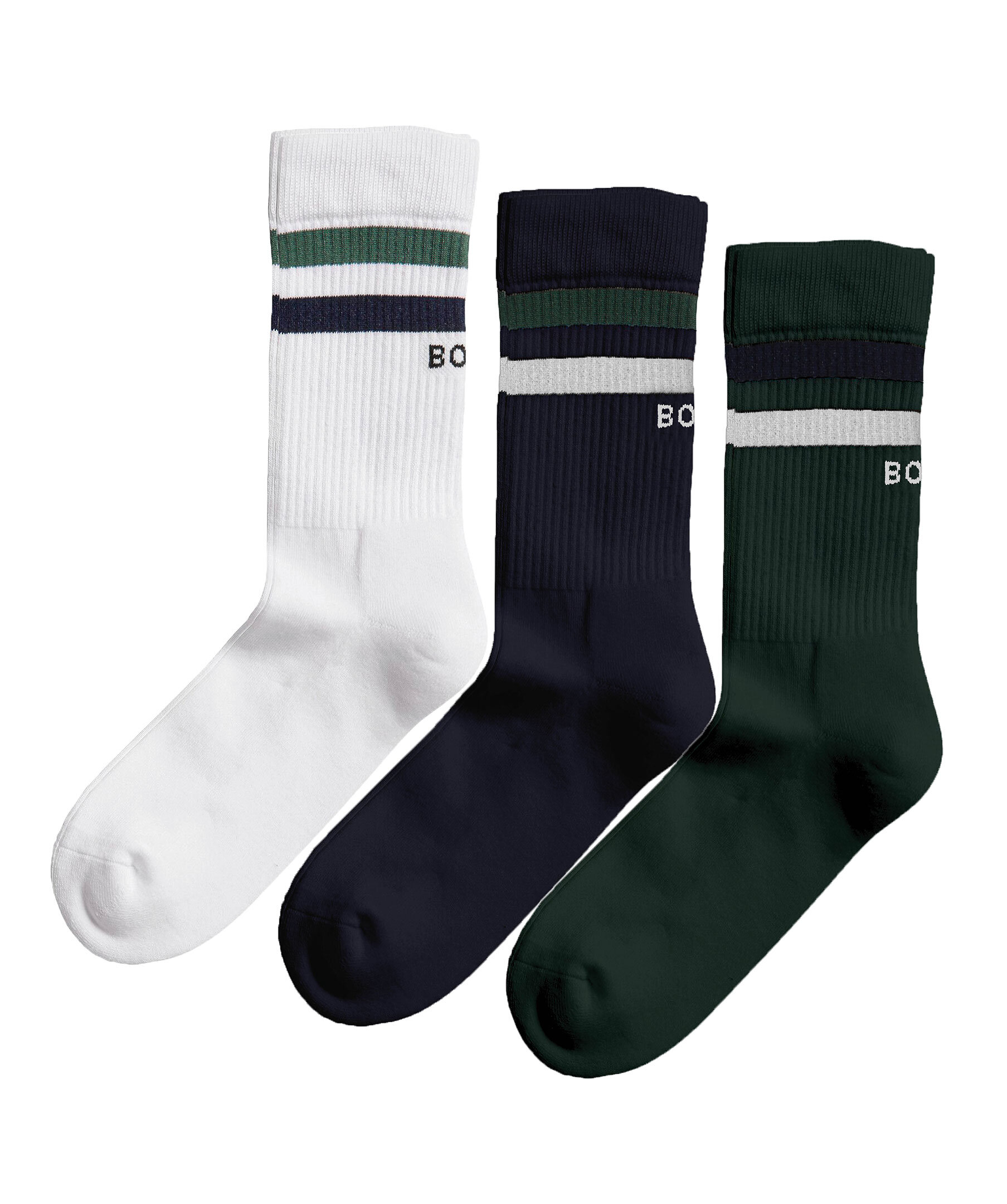 3-pack ankelstrumpor från Björn Borg i grönt, blått och vitt. Gjorda i en stretchig bomullsblandning. Ribbad topp med ränder och logotyp.