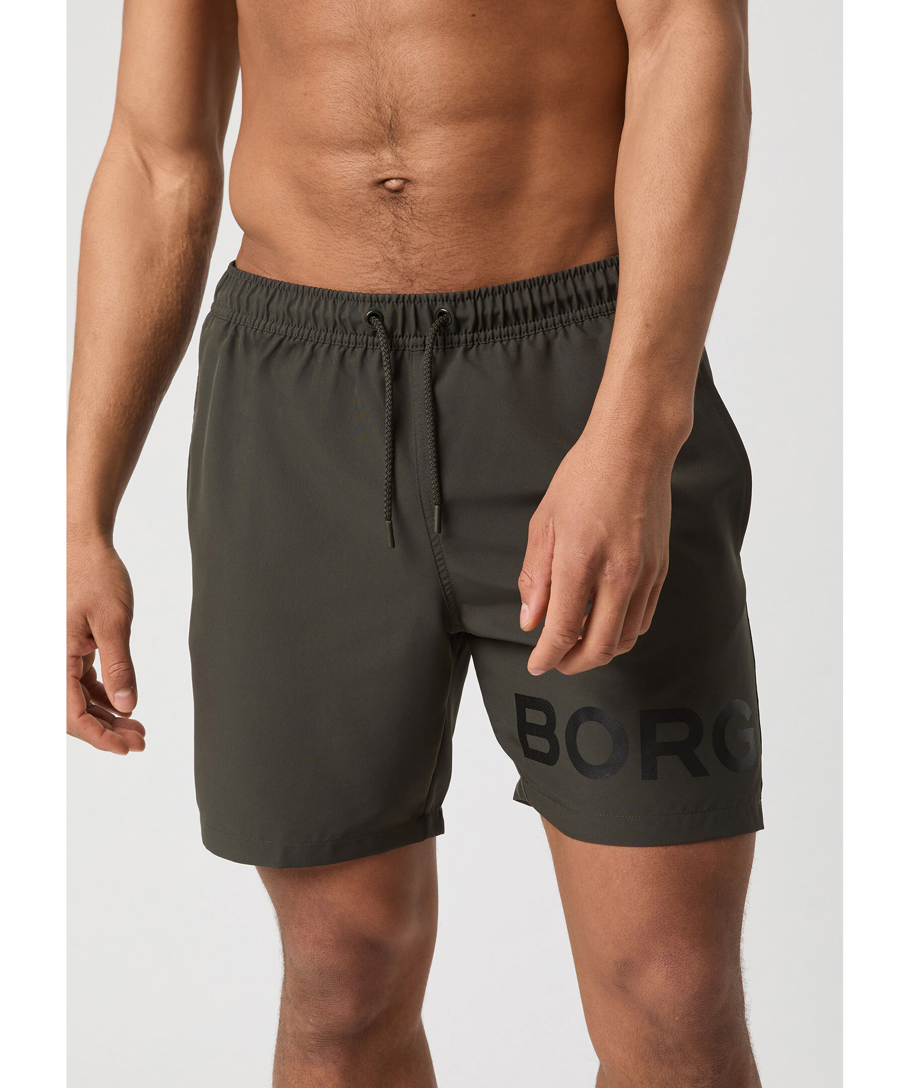 Gröna badshorts från Björn Borg. Shortsen har elastisk midja med snörning, två sidfickor samt en bakficka och logotyp på benet. Tillverkade i polyester med innertyg i mesh.