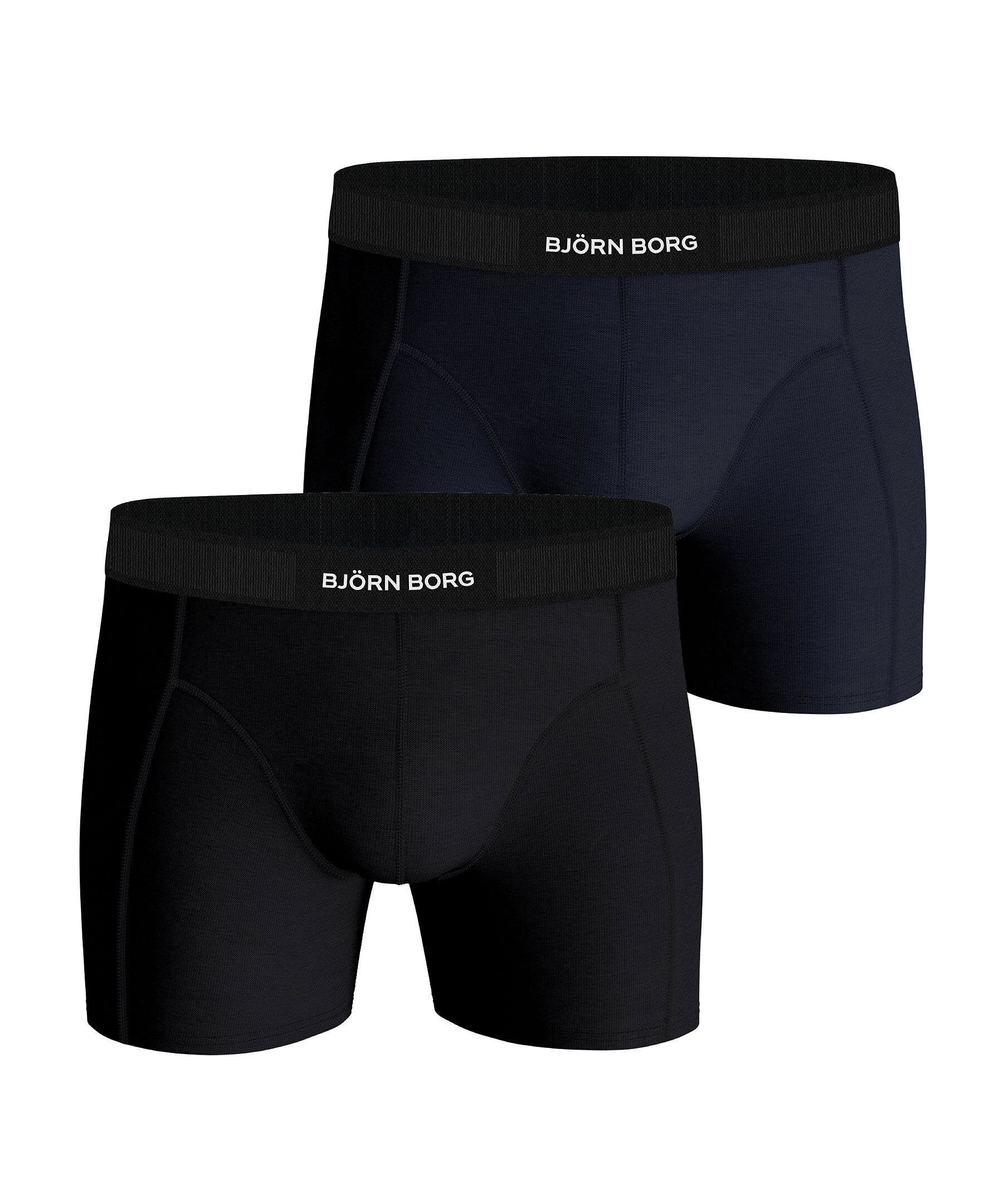 2-pack kalsonger från Björn Borg i färgerna svart och mörkblått. Kalsongerna har medelhög midja med resår och logotyp. Tillverkade i en stretchig bomullsblandning.