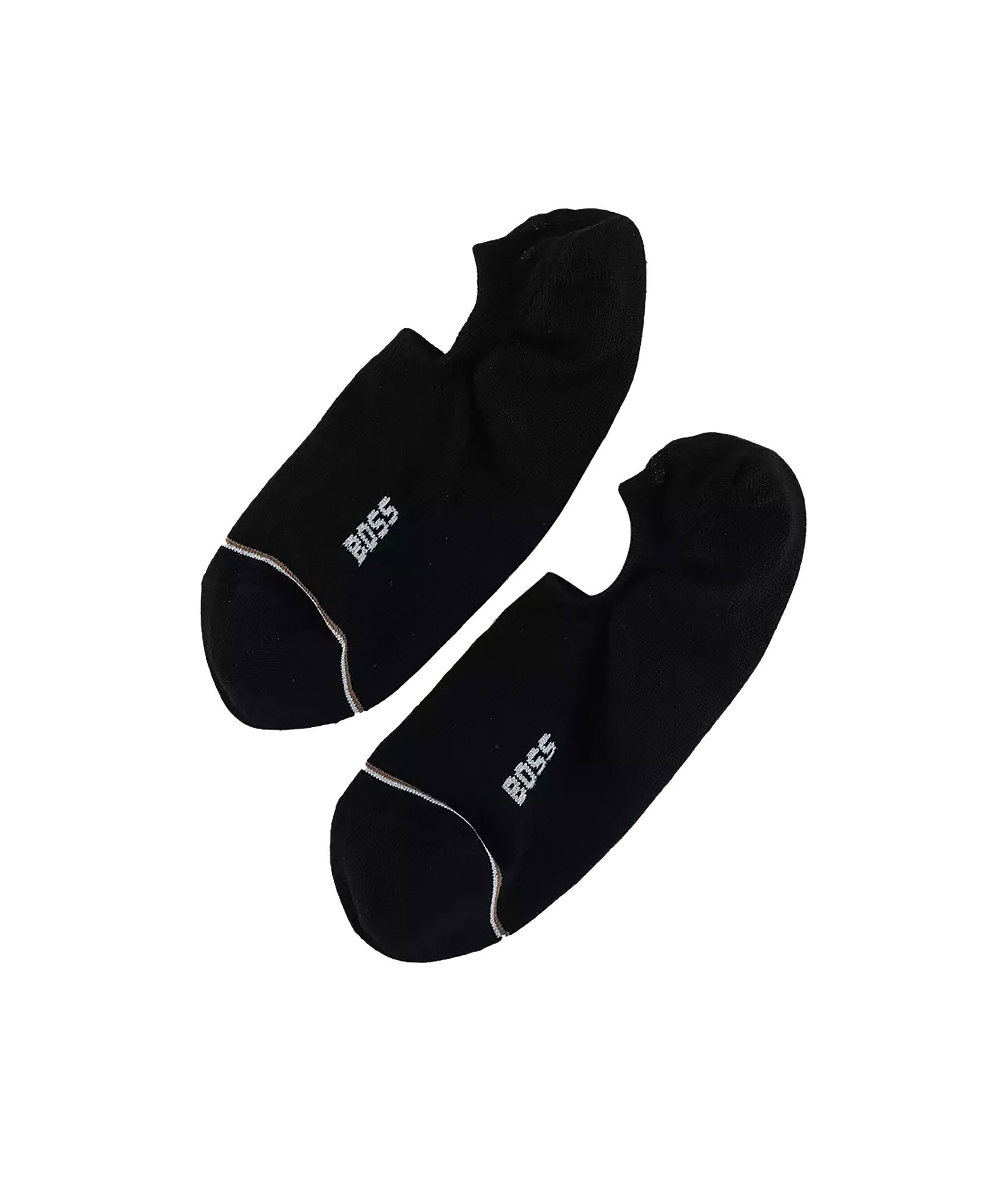 Svarta hälstrumpor från Boss Black. Strumporna har logotyp och de klassiska Bossränderna fram vid tårna. Tillverkad av en bomullsblandning.