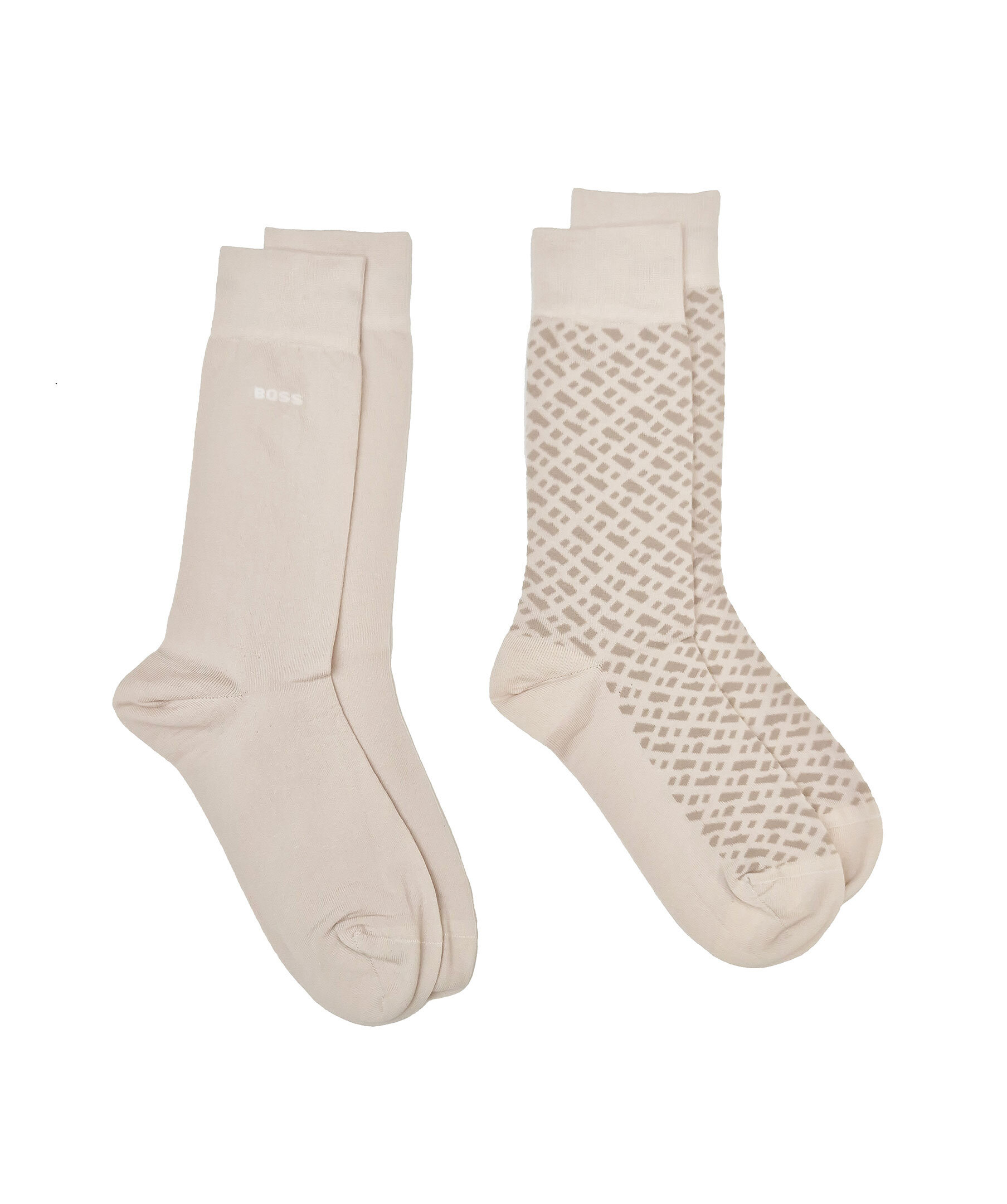 Två-pack strumpor från Boss black. Ett par beigea med monogram och ett par hel beiga strumpor med boss logotyp. Tillverkade av en ullblandning med stretch.