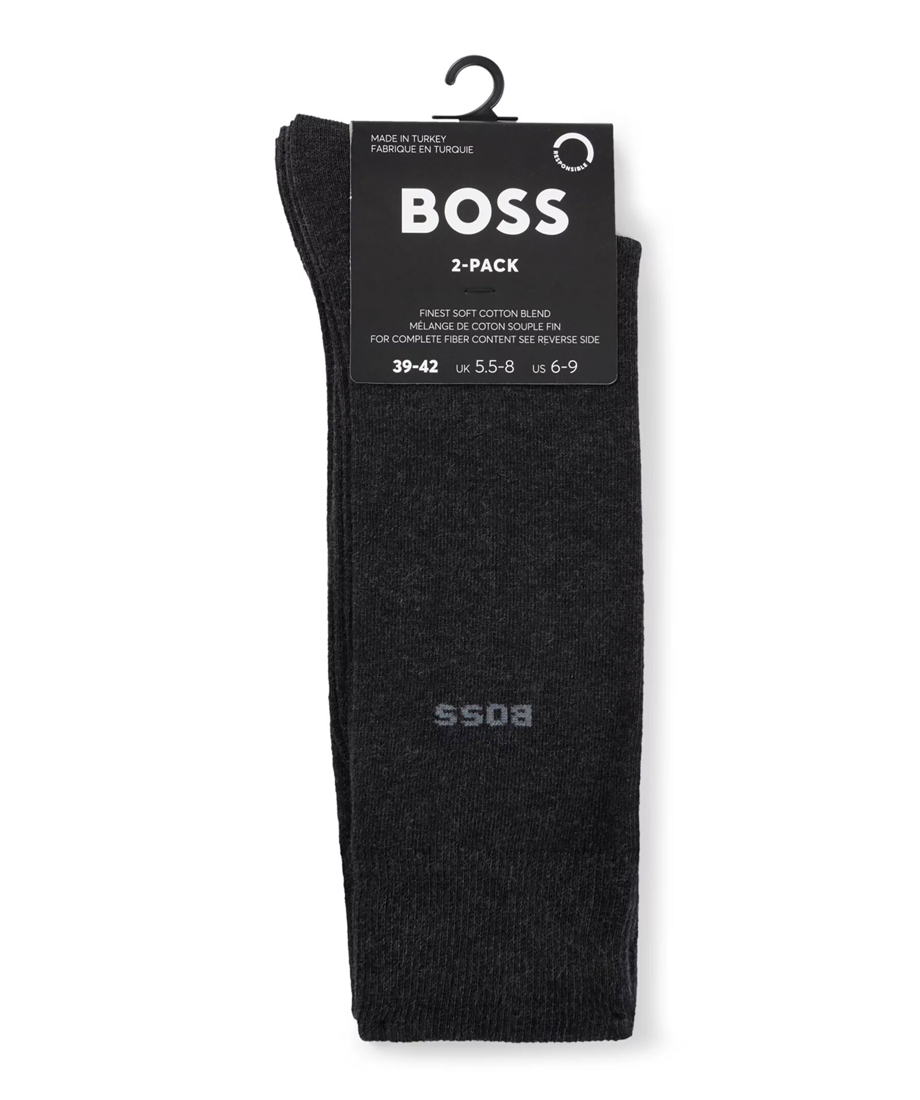 2-pack mörkgråa strumpor från BOSS Black. Strumporna har subtil logga på skaftet. Tillverkade i en bomullsblandning.