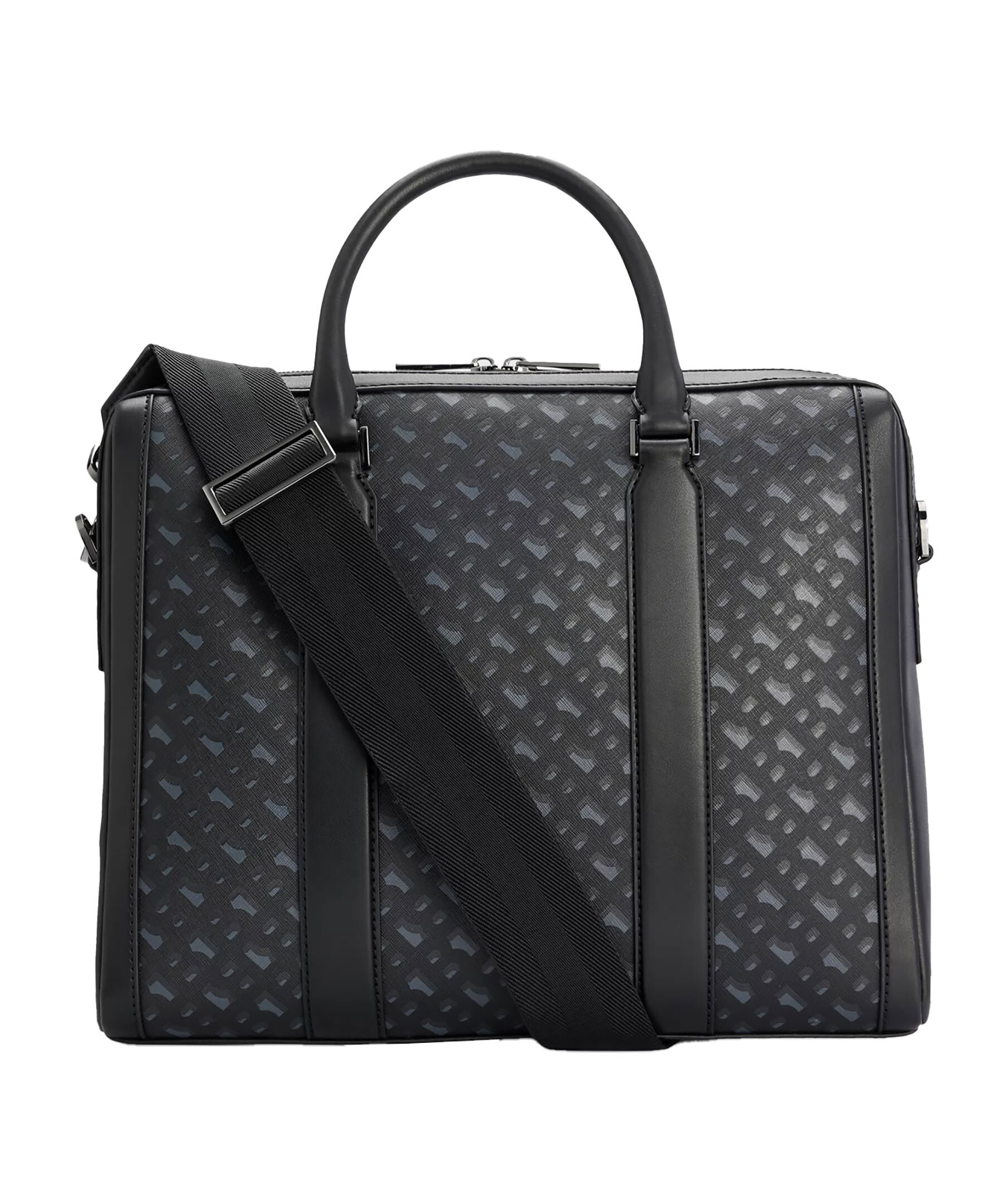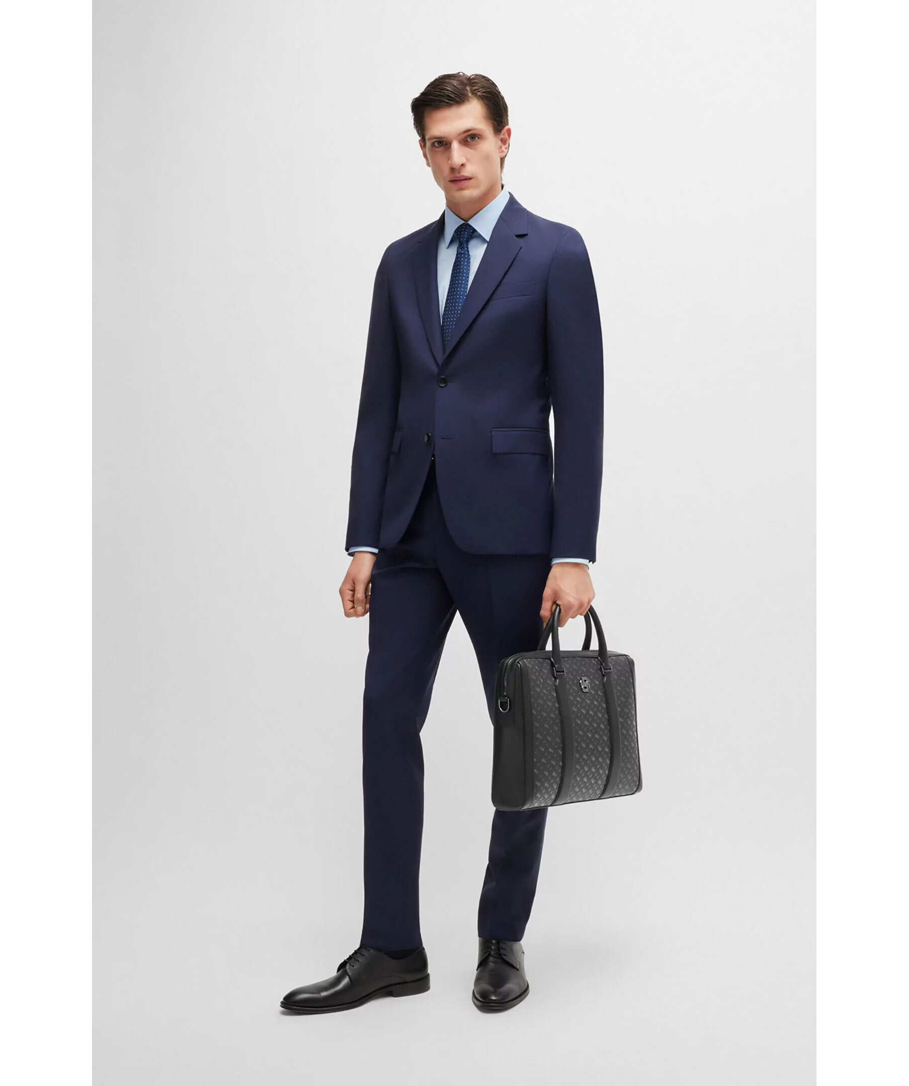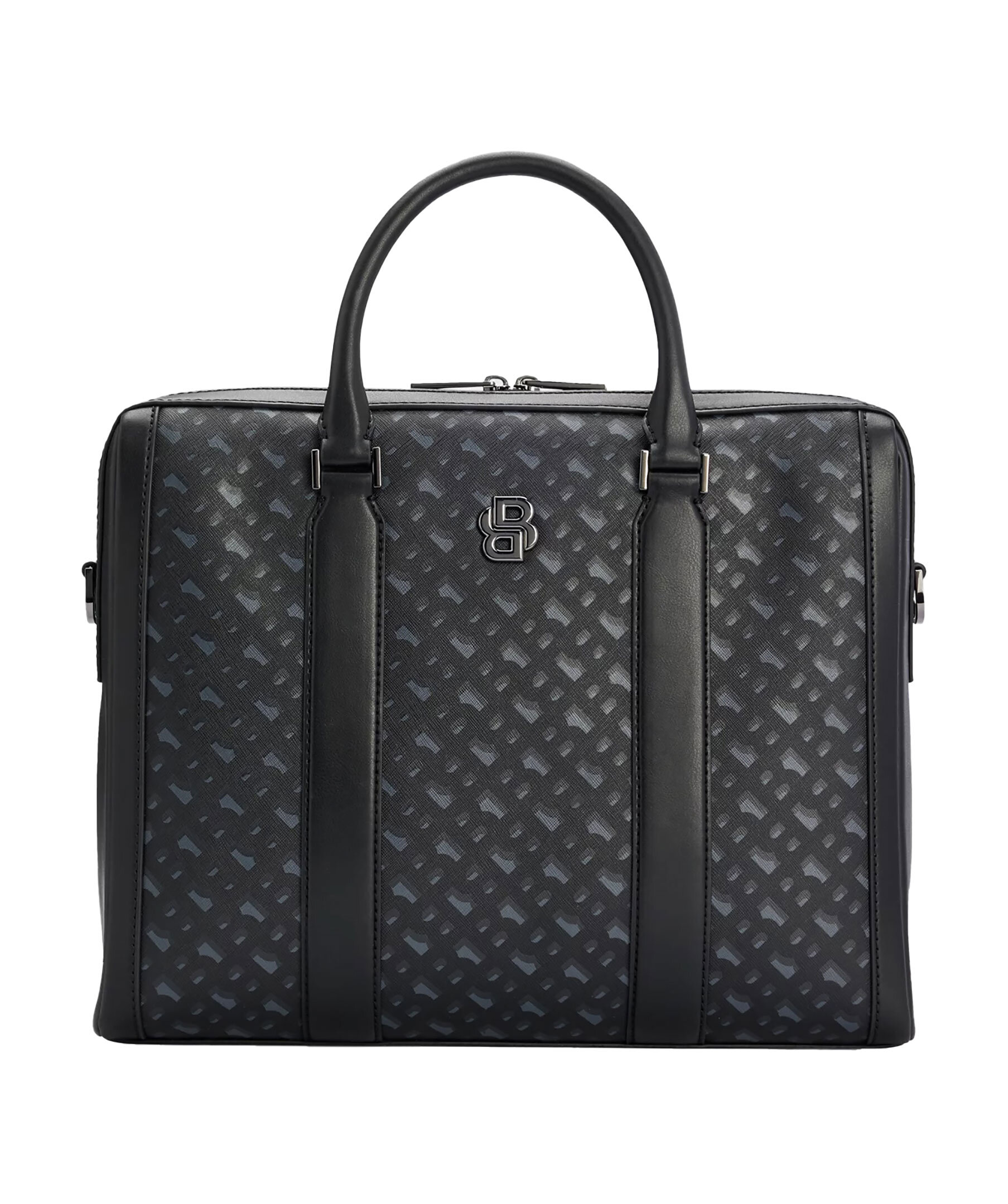 Svart datorväska från BOSS Black. Väskan har ett elegant monogrammönstrat material, avtagbar axelrem och Double B-detalj. Stängs med tvåvägsdragkedja och har dubbelhandtag. Tillverkad i läder. Mått: 28 x 36 x 6,5 cm.