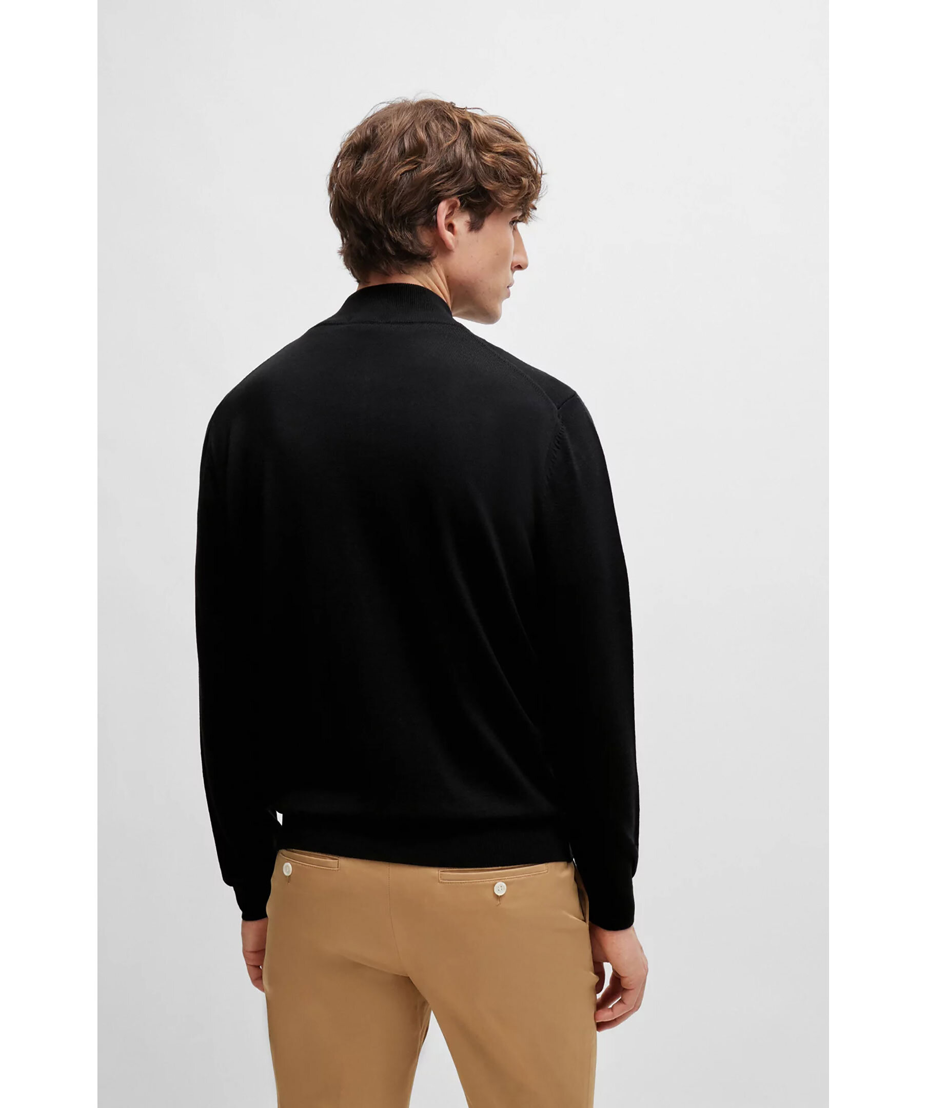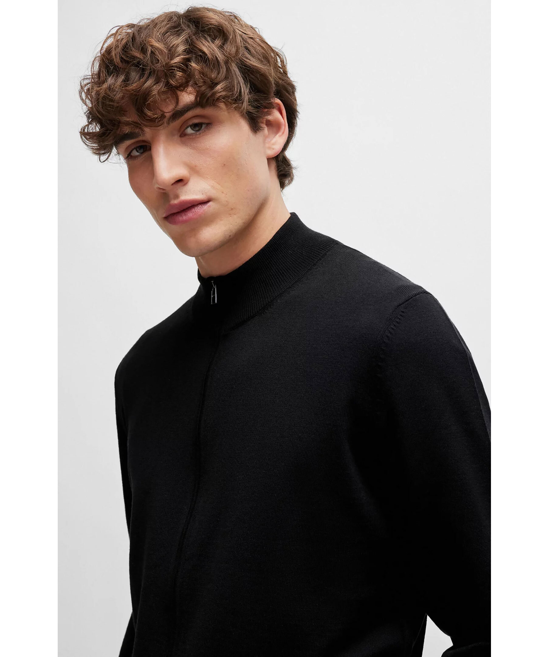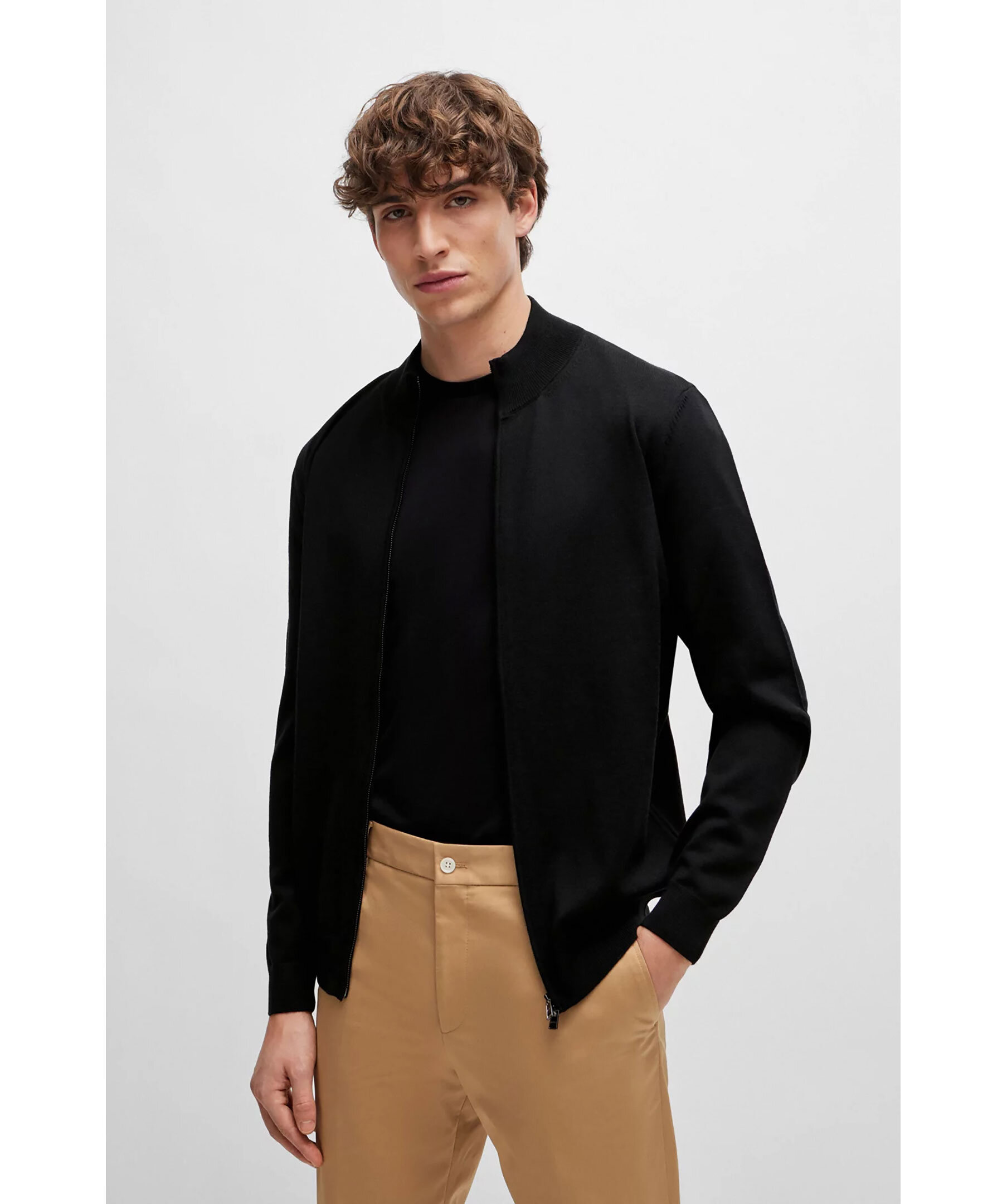 Svart finstickad cardigan från BOSS Black. Koftan stängs med tvåvägsdragkedja och har ribbstickade detaljer. Tillverkad i jungfruull.