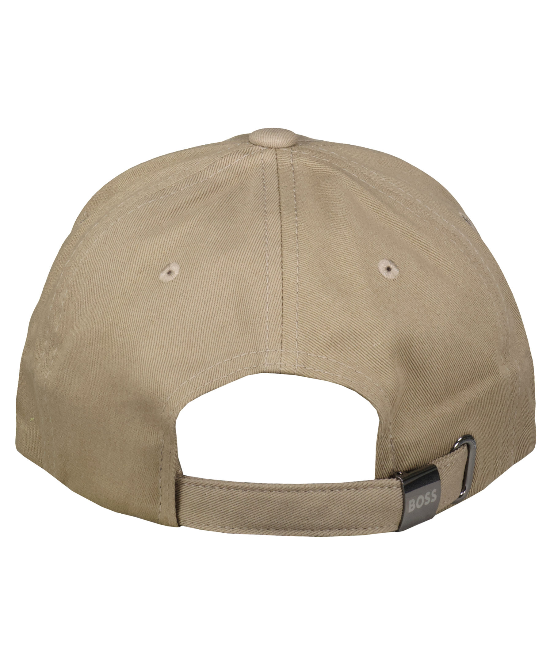 Mörkbeige keps från BOSS Green gjord i 100% bomull. Tvåfärgad, broderad logotyp i svart och vitt på framsidan och justerbart spänne bak med liten logotyp på.
