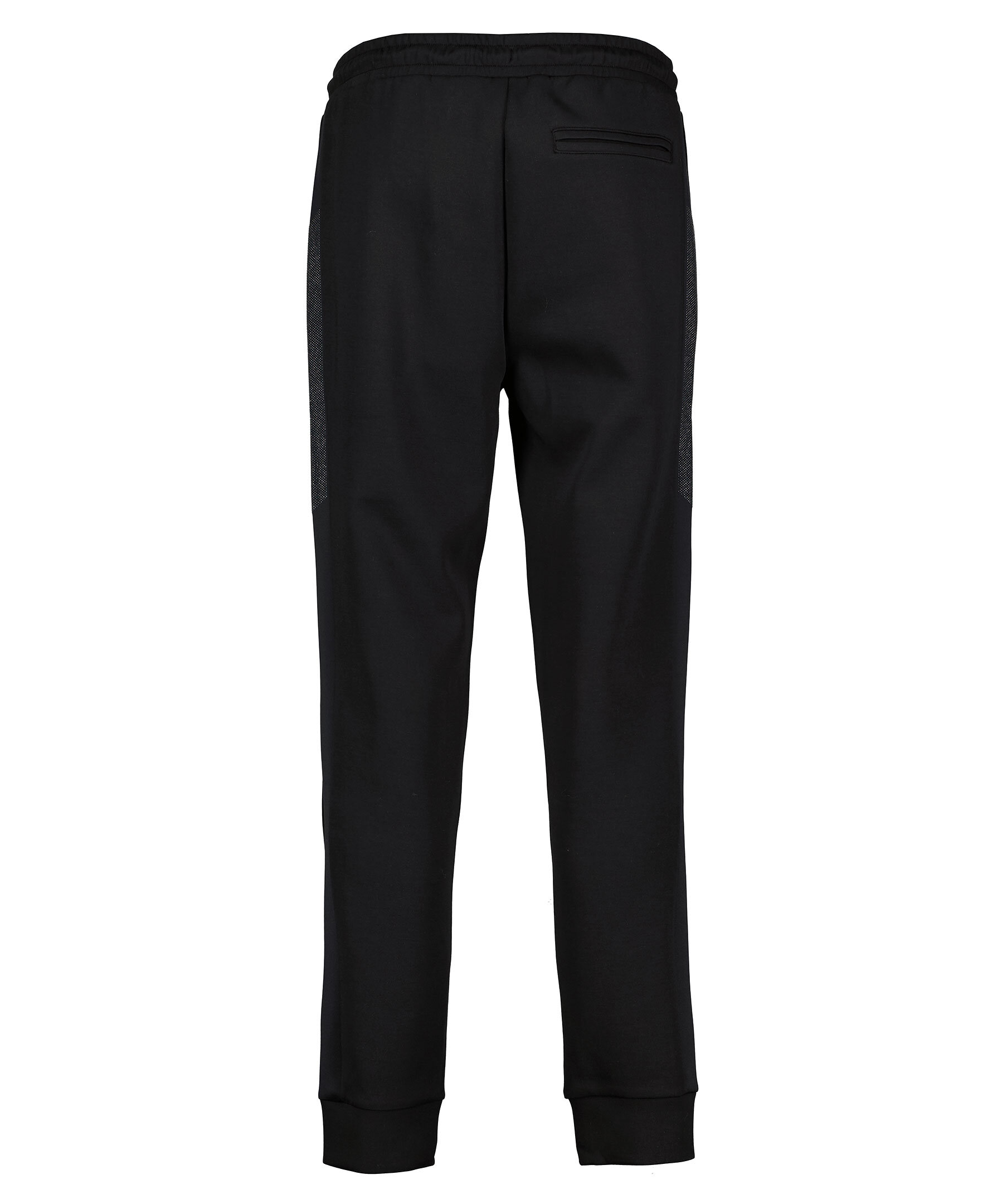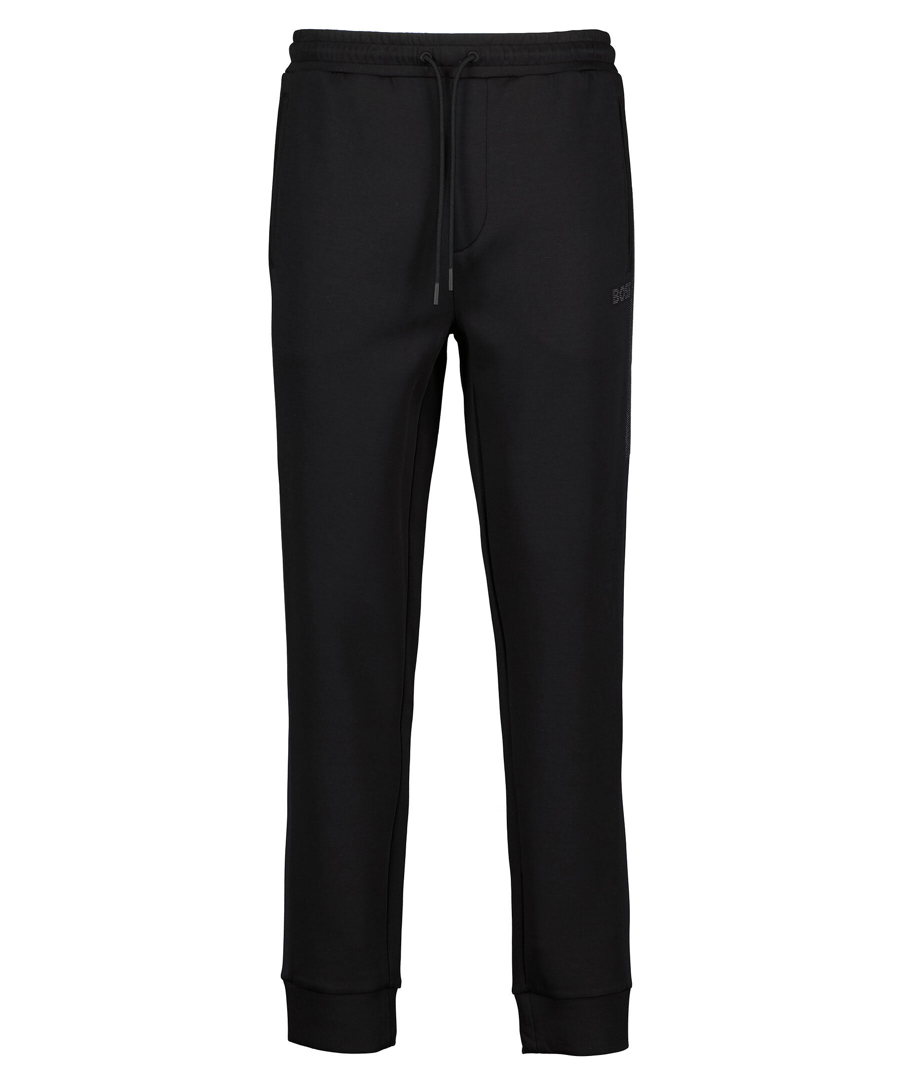 Svarta mjukisbyxor från BOSS GREEN. Avslappnad passform, dragsko i midjan, två framfickor och en passpoalficka baktill. Liten logotyp i strass under ena byxfickan. Dekorativt strass i svart på sidan av byxan.