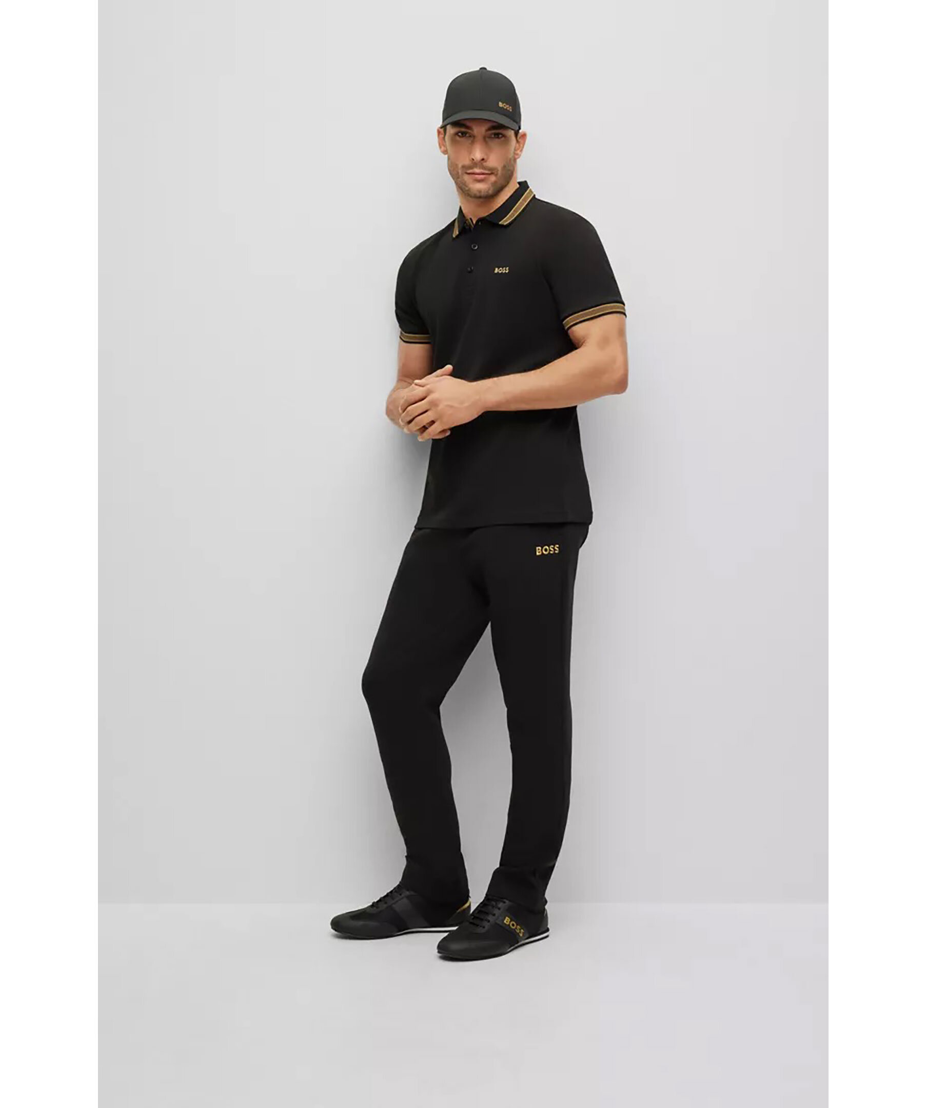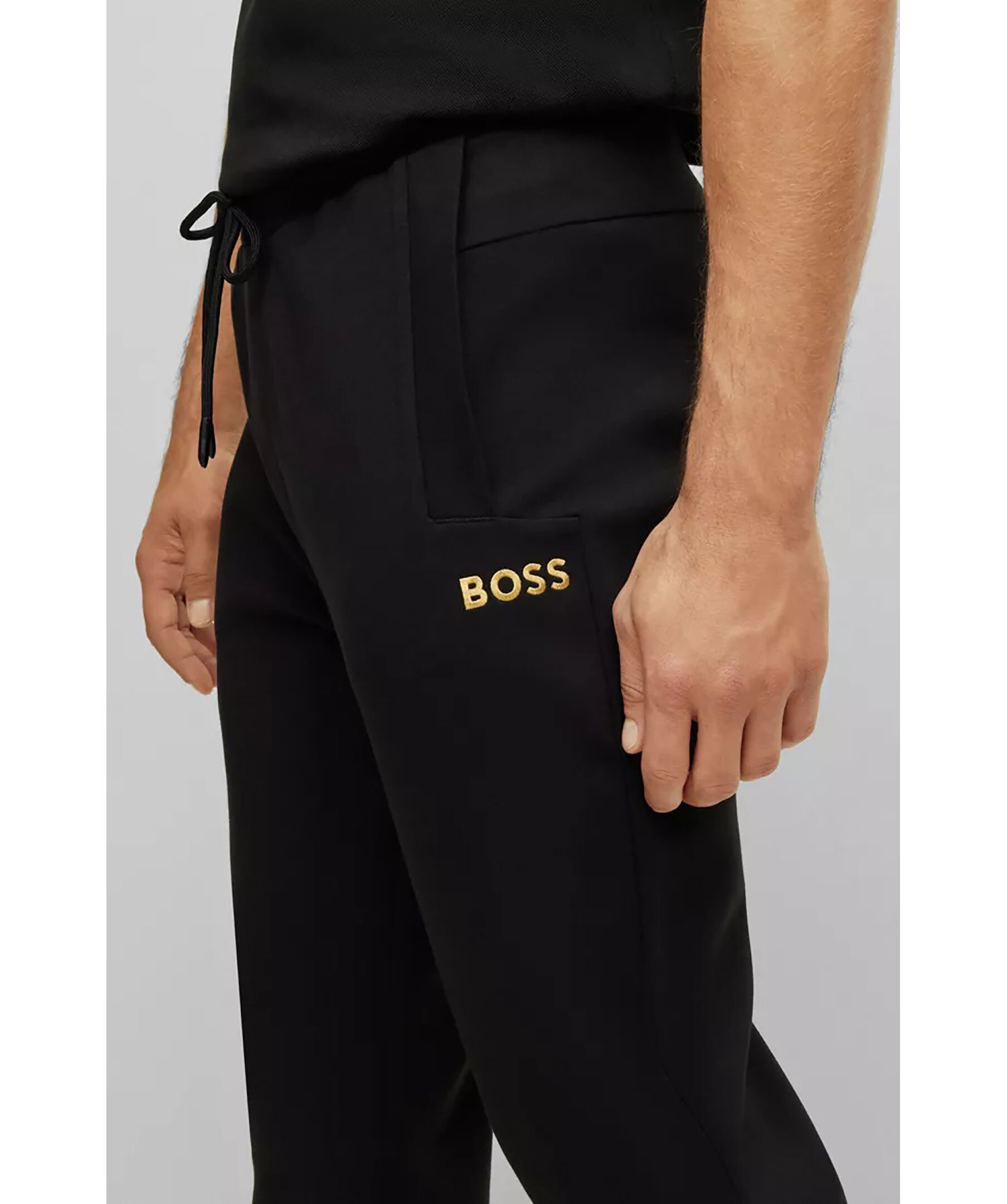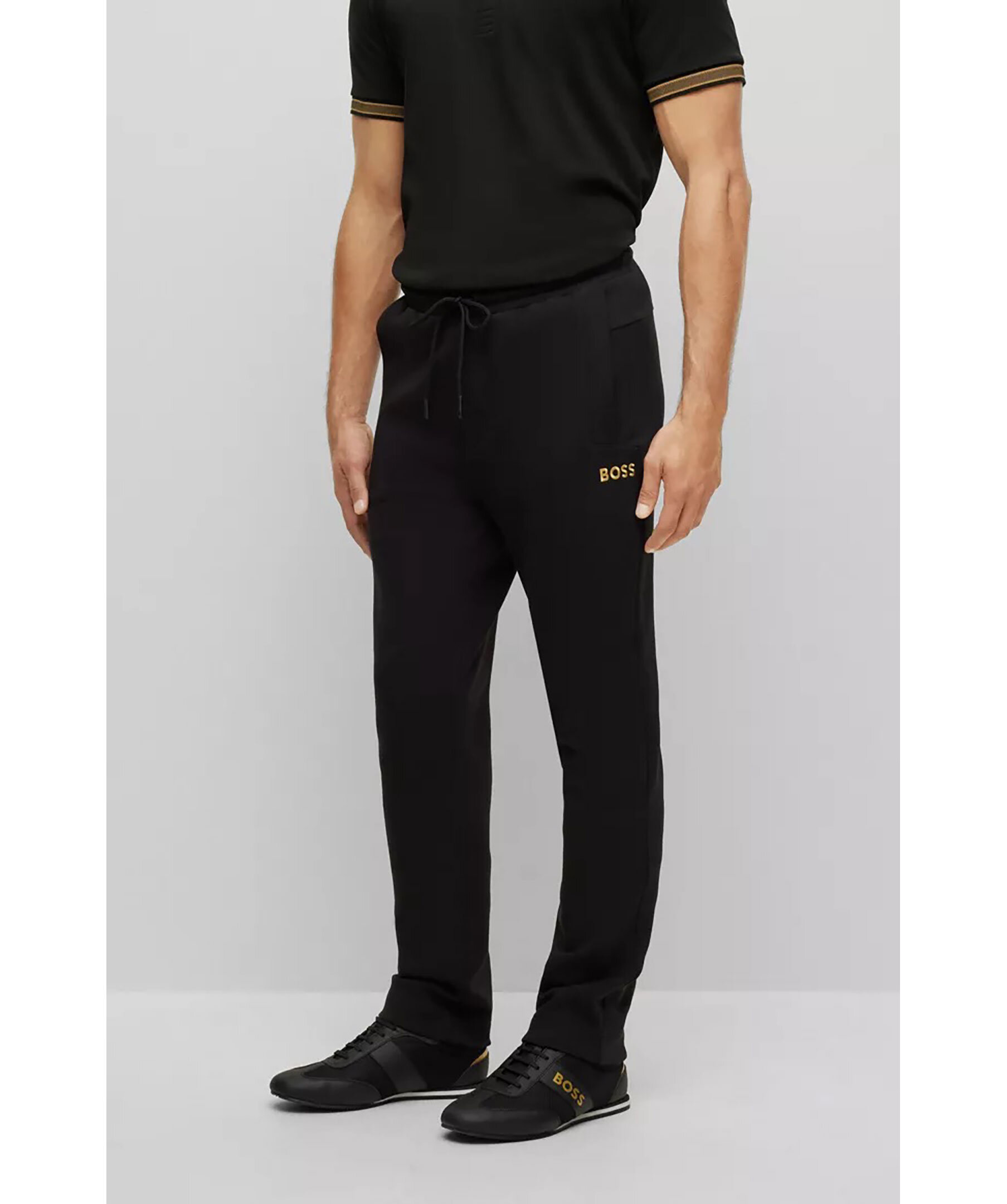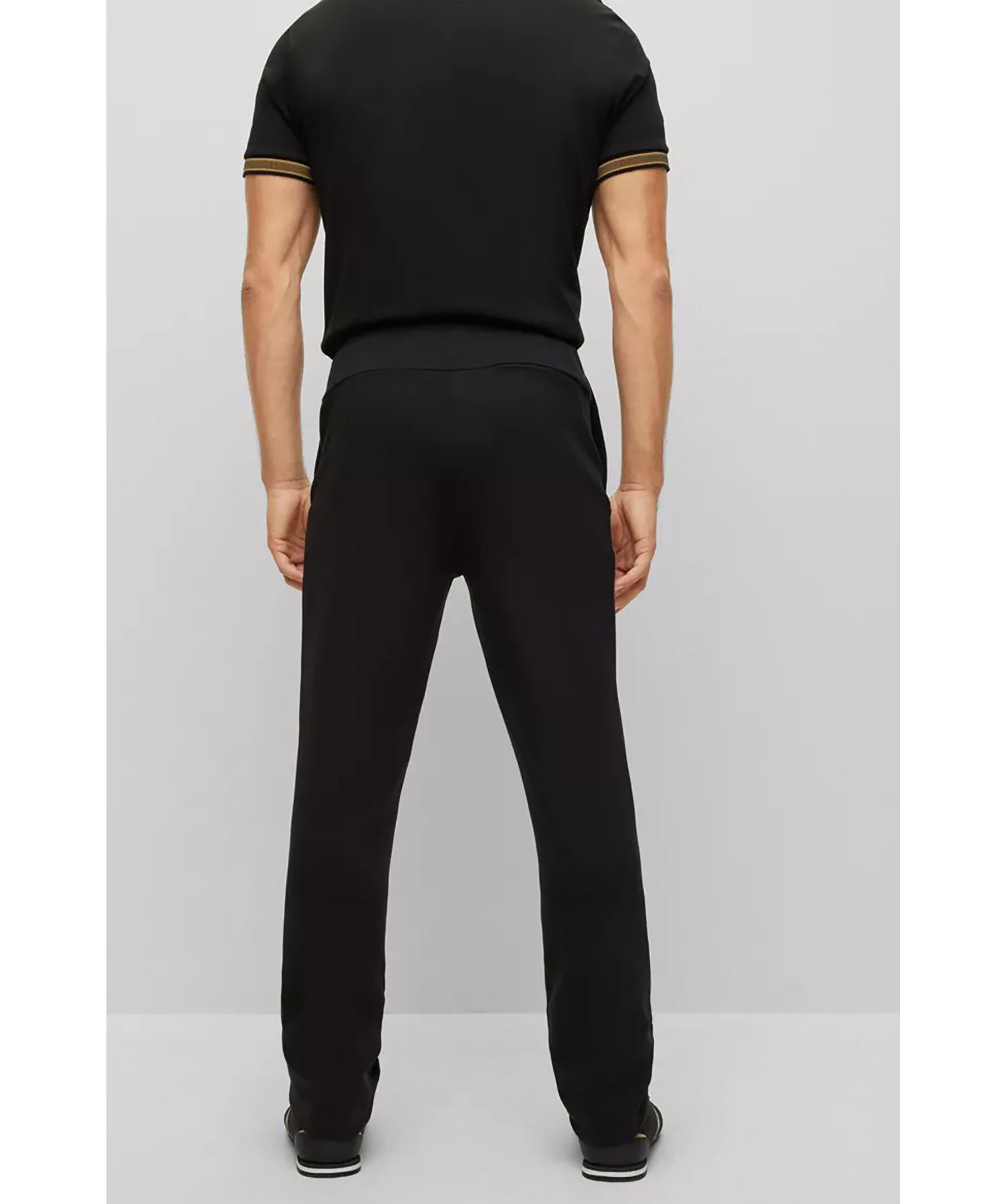 Svarta mjukisbyxor från BOSS Green. Byxorna är gjorda i ett stretchigt bomullstyg. Normal passform, revär med blanka logotyper i svart, dragsko i midjan och två framfickor en en bakficka. Muddar vid benslut.