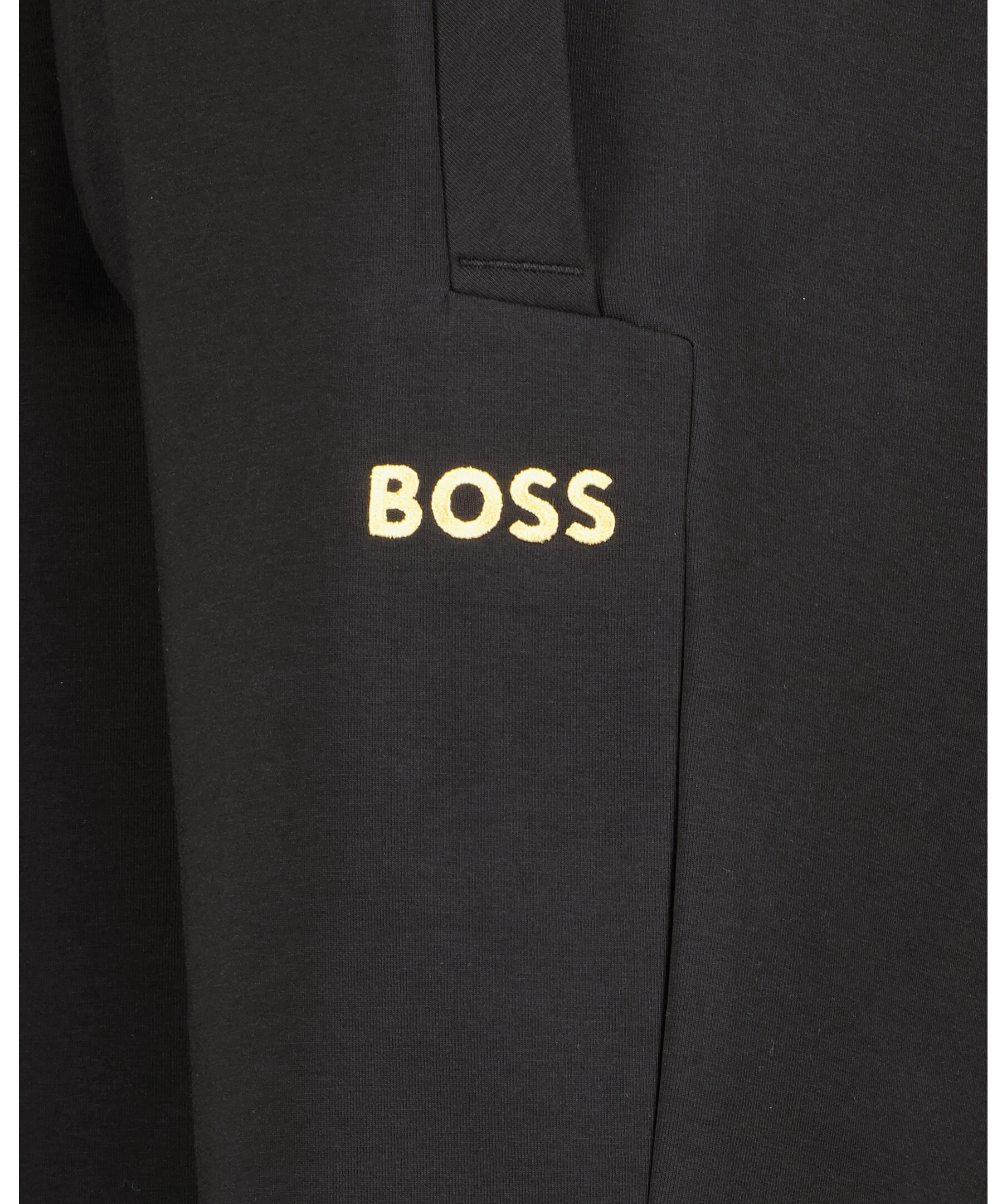 Svarta träningshorts från BOSS Green. Dragsko i midjan. Två fickor framtill. Svarta revärer längst benen med vita tryckta logotyper. Tryckt logotyp på vänster lår. Tillverkade i polyesterblandning.