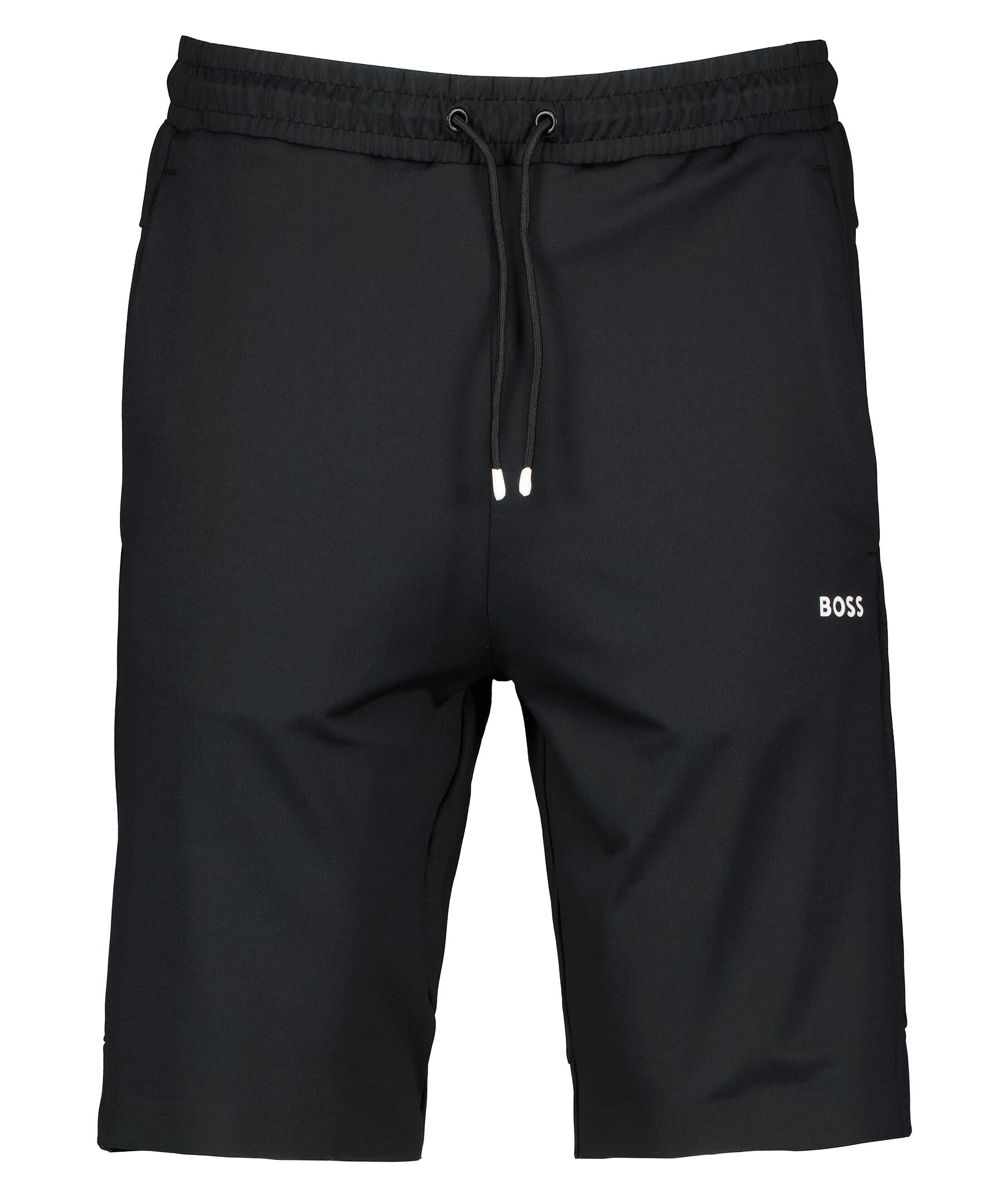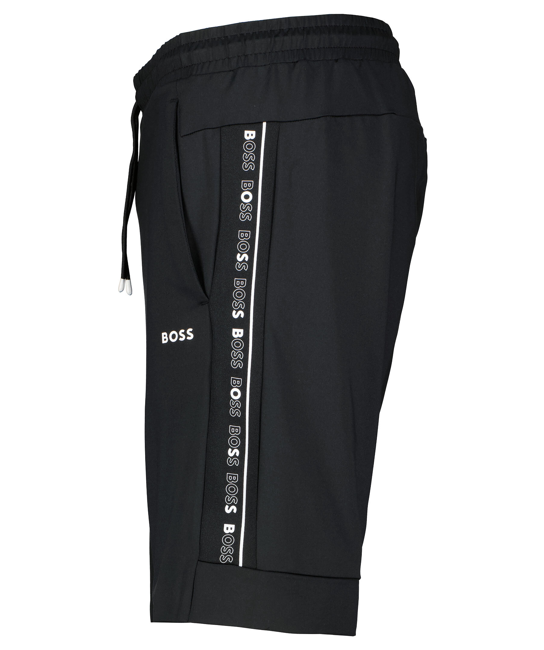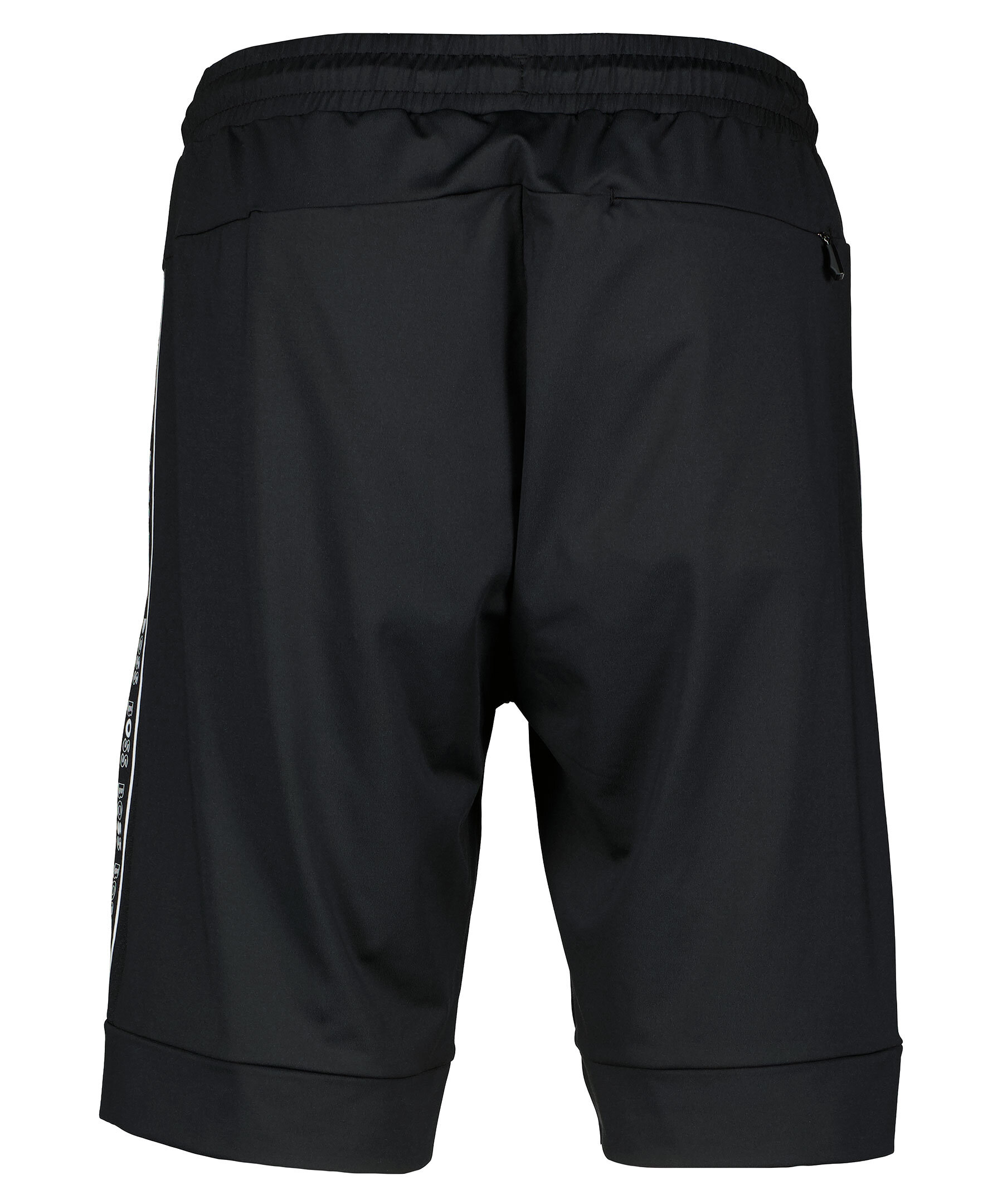 Svarta shorts i regular-fit från BOSS Green. Mudd och dragsko i midjan, liten tryckt logga på ena benet och revärer med loggor i sidorna. Regular fit och sidofickor. De är tillverkade i återvunnen polyester med generös stretch och pålitliga fukthanteringsegenskaper.