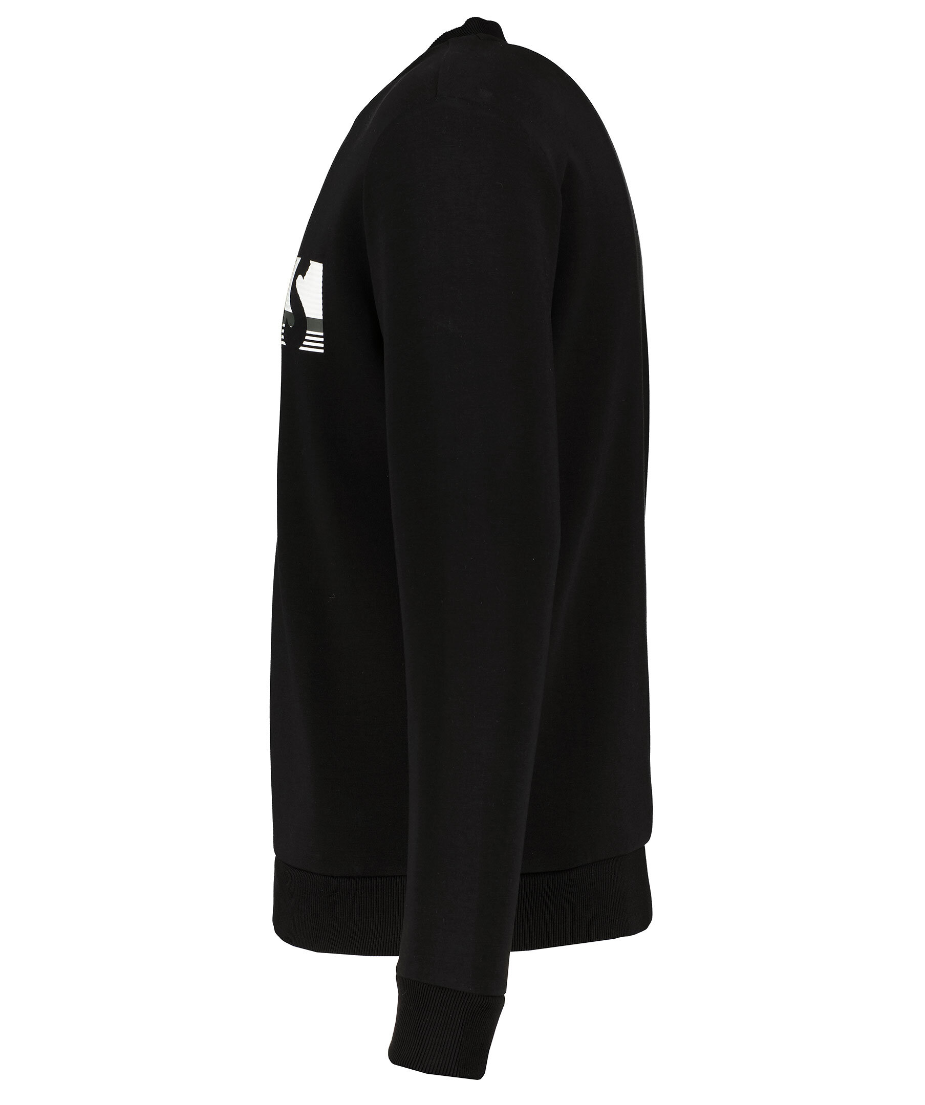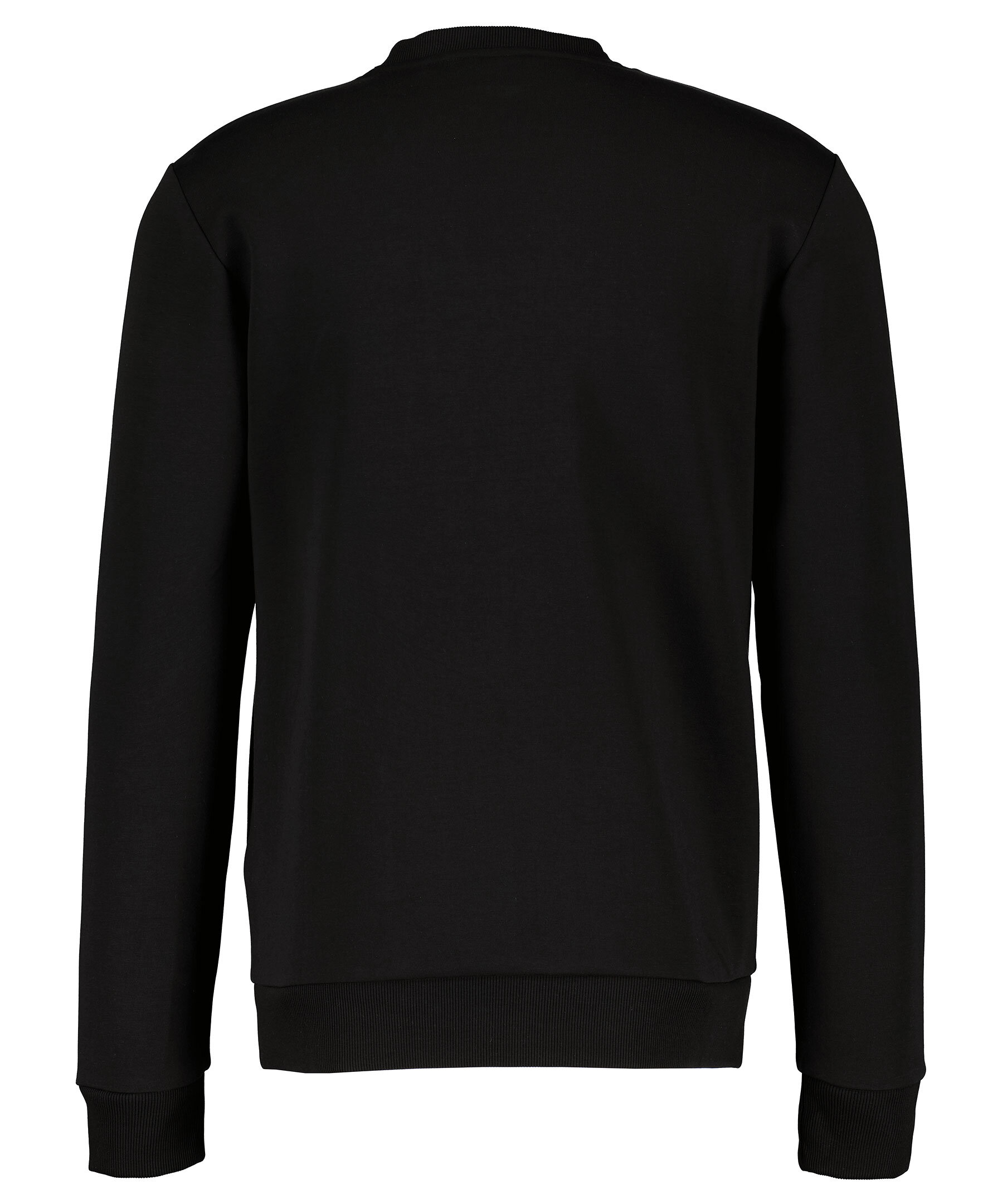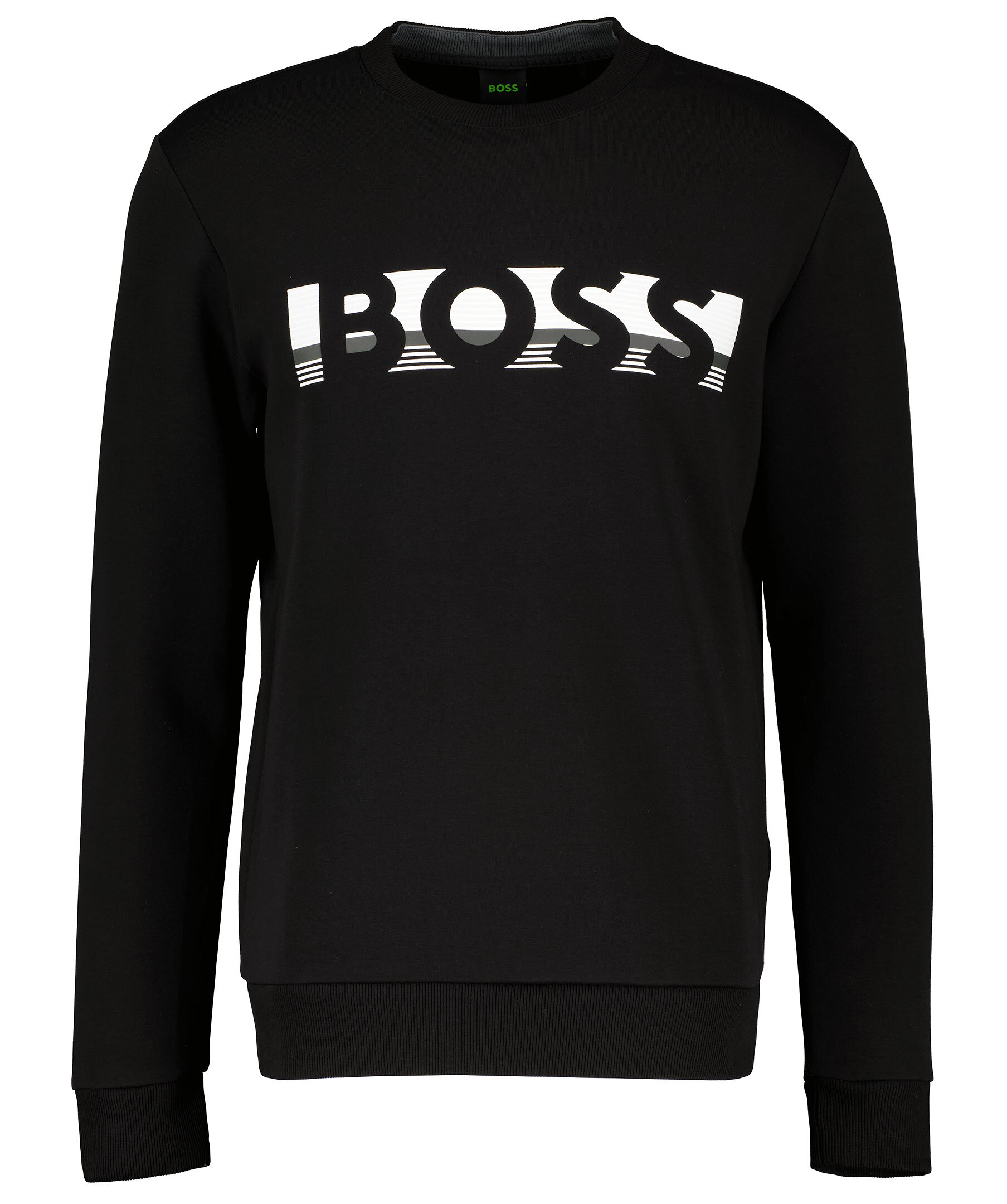Svart sweatshirt från BOSS Green. Tillverkad i en stretchig bomullsmix. Stor vit logotyp på bröstet och ribbade muddar i halsringning, ärmslut och plaggslut.
