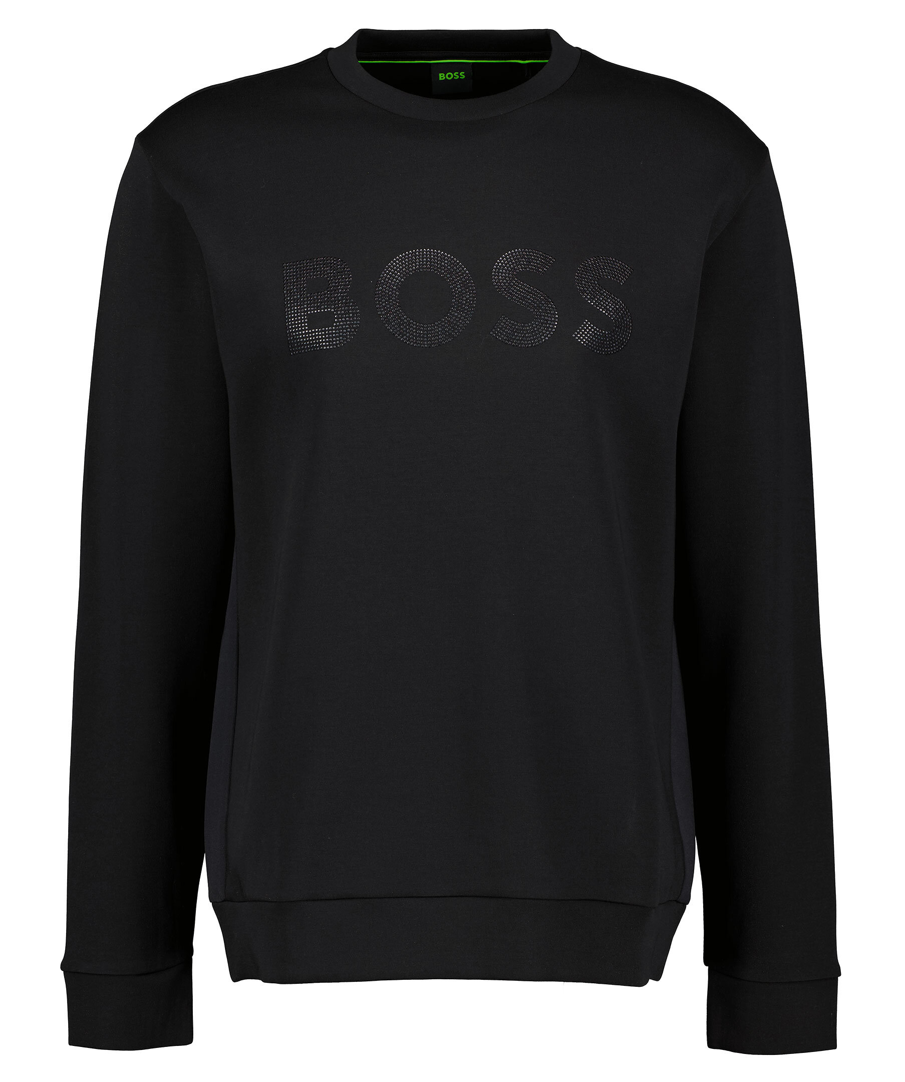 Svart sweatshirt BOSS GREEN. Avslappnad passform, logotyp i strass över bröstet och ribbade muddar. Gjord i en bomullsblandning.