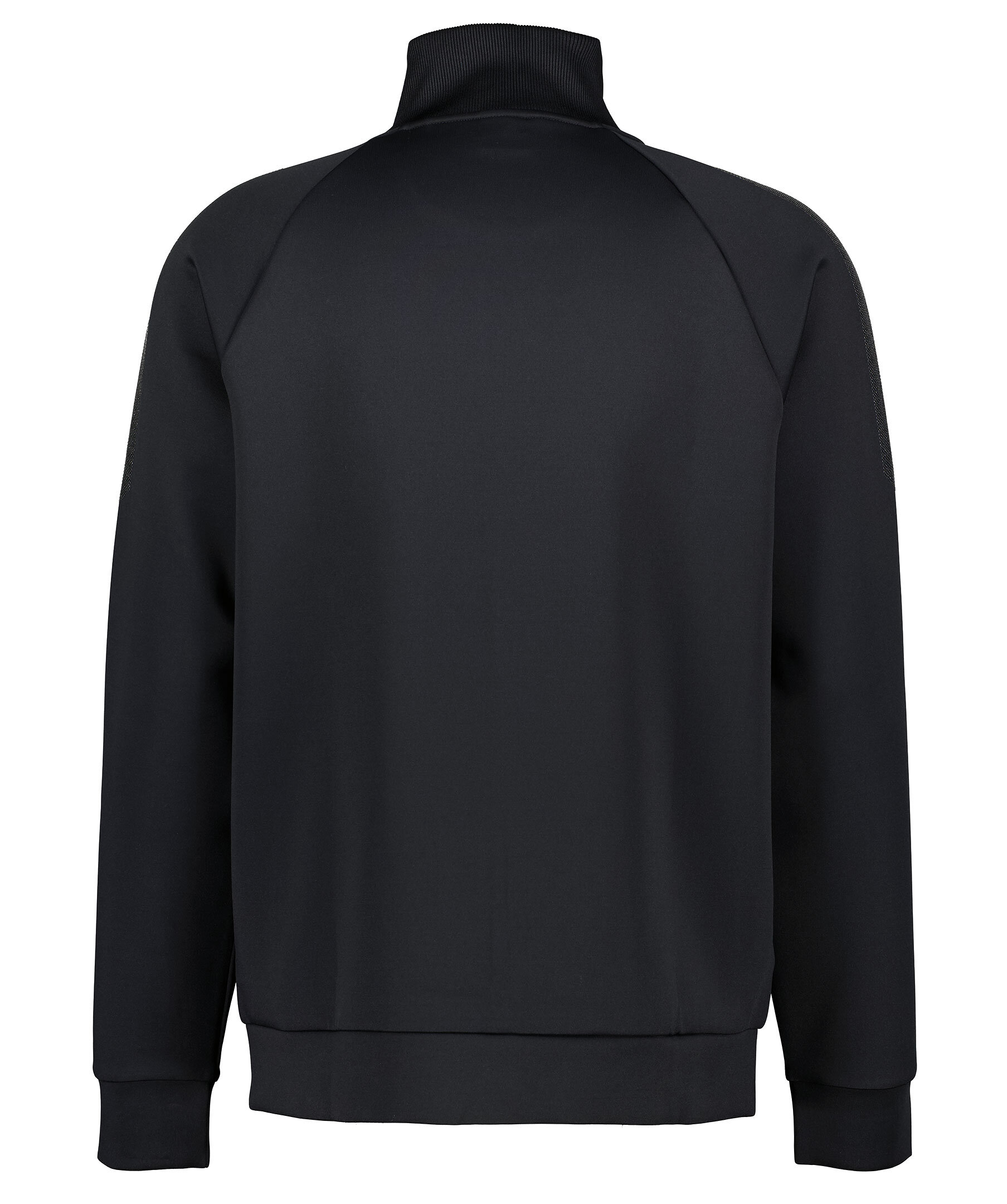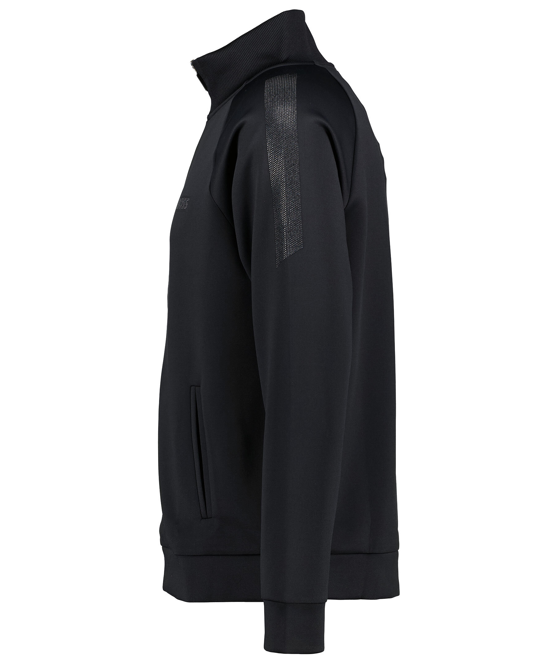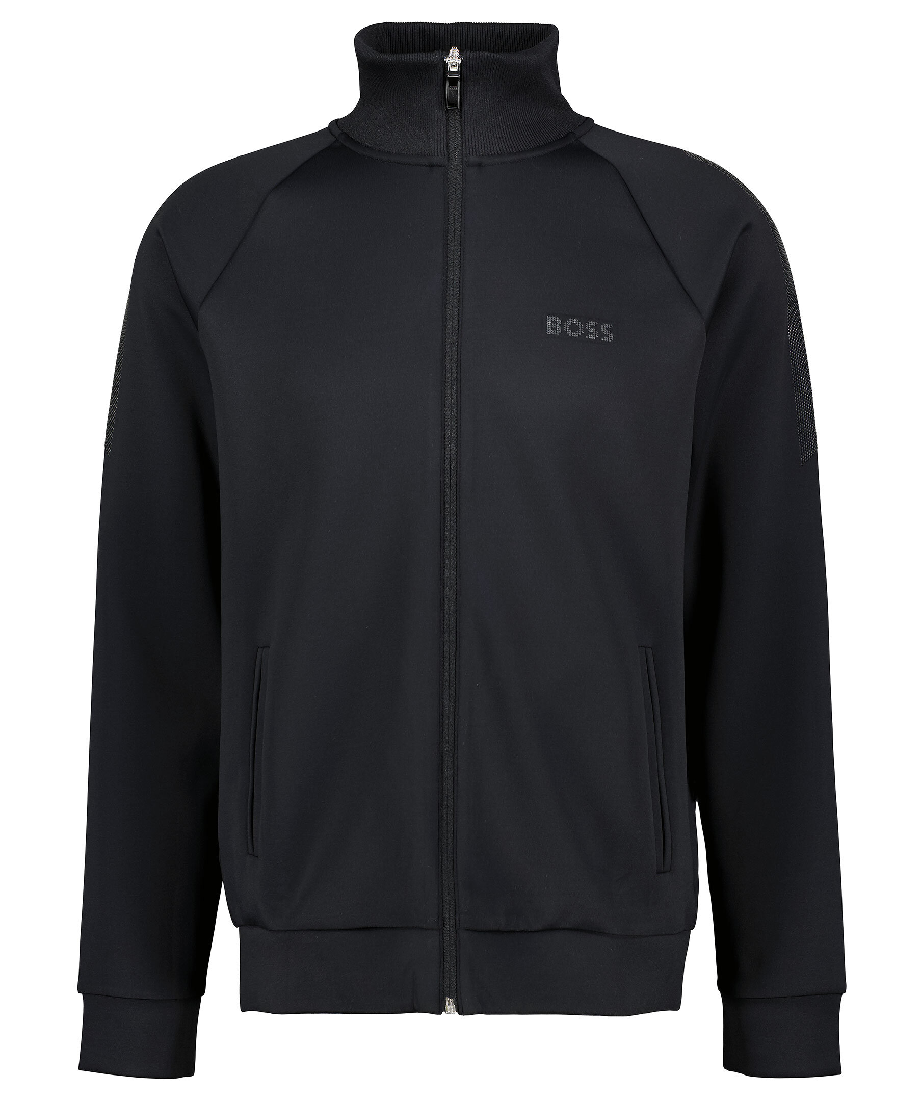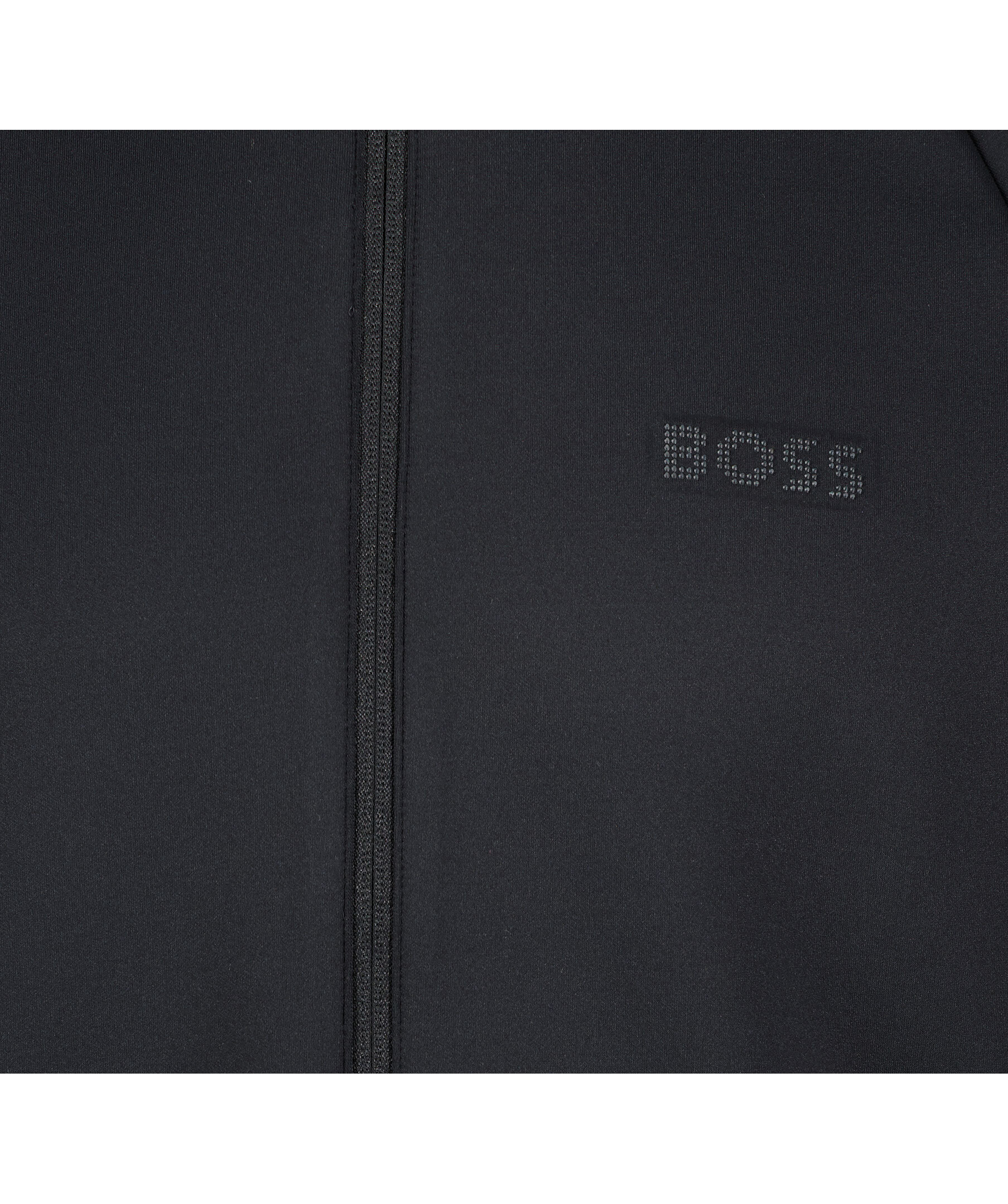 Svart stretchig tracksuitjacka från BOSS GREEN. Svart logotyp i strass på bröstet, två framfickor, hög krage och dekorativ strass på överärmarna.