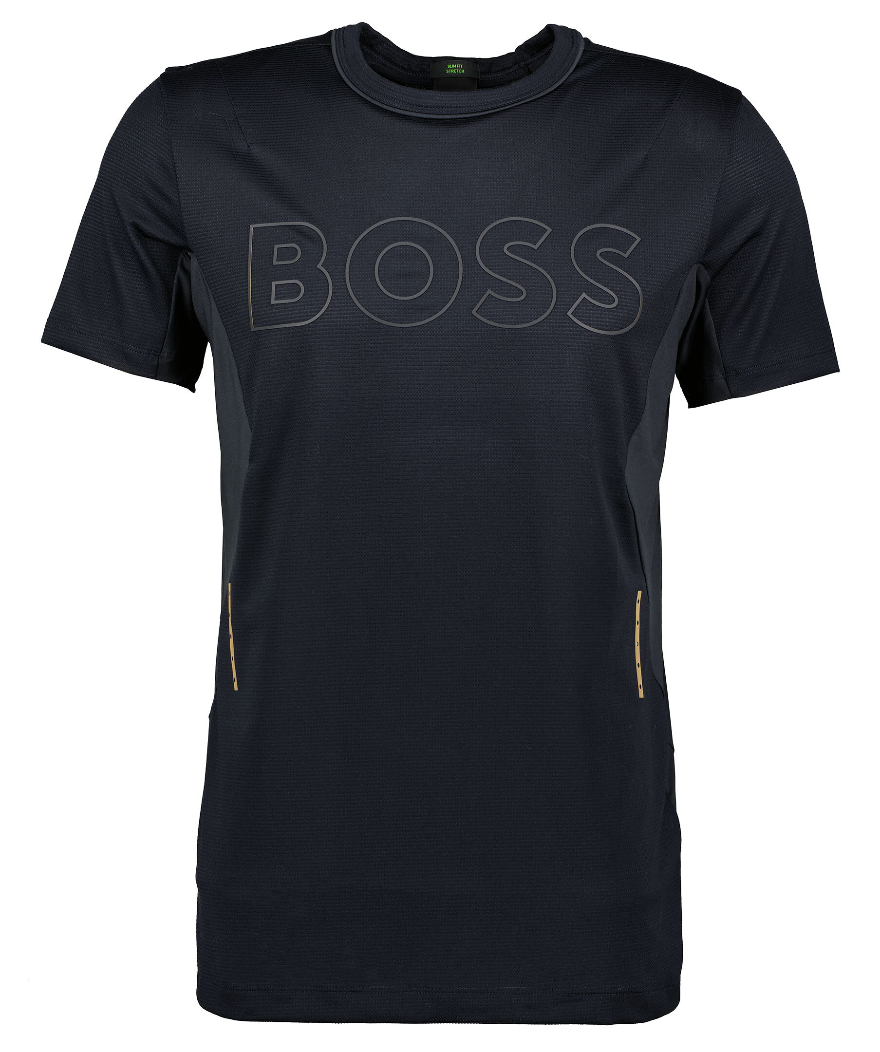 Svart tränings T-shirt från BOSS Green. Tillverkad i Meshmaterial. Gummerad logotyp över bröstet. Beigea detaljer i tröjans sidor.