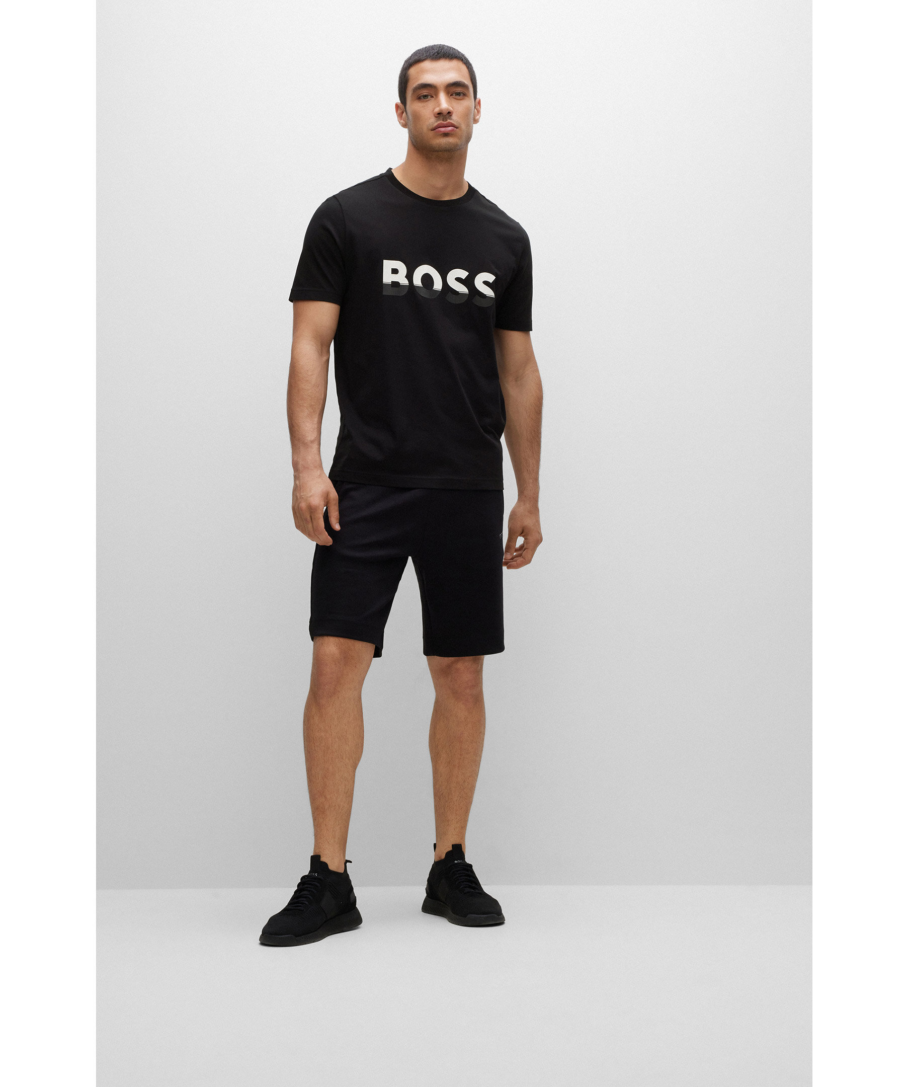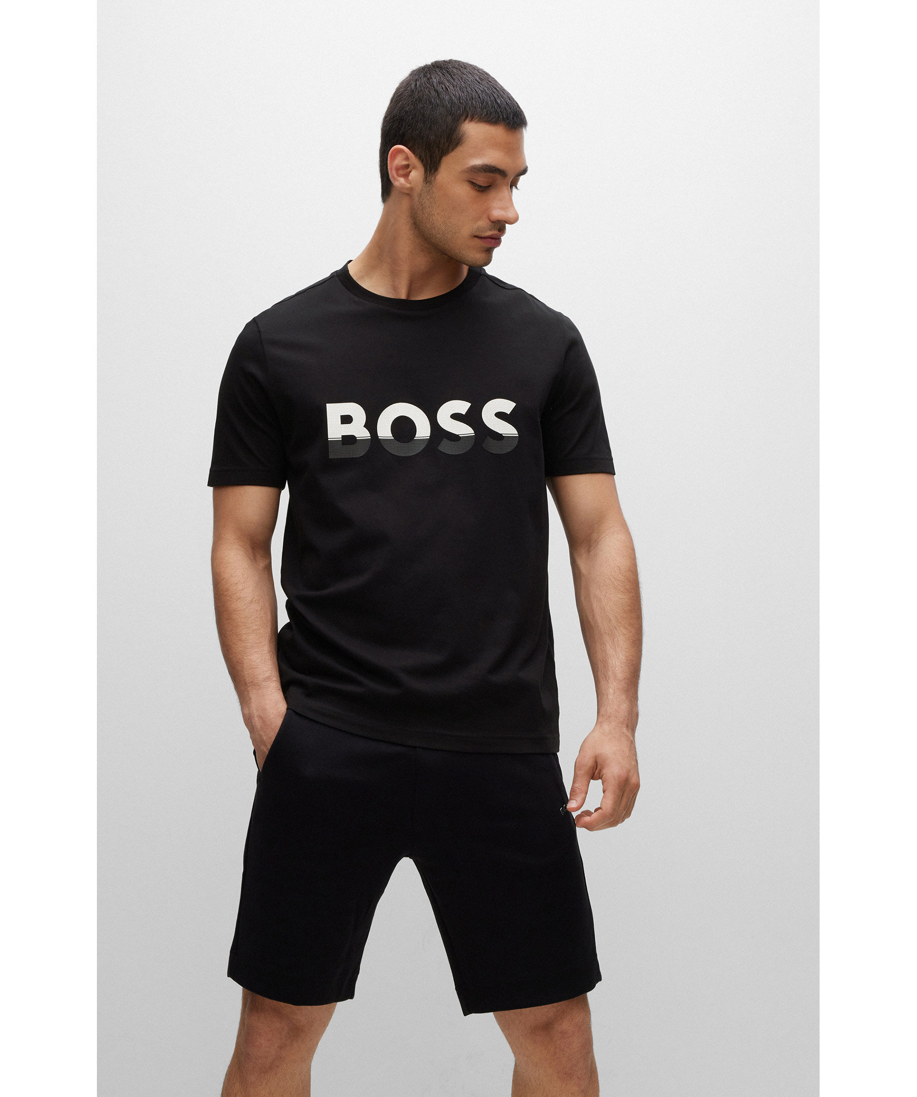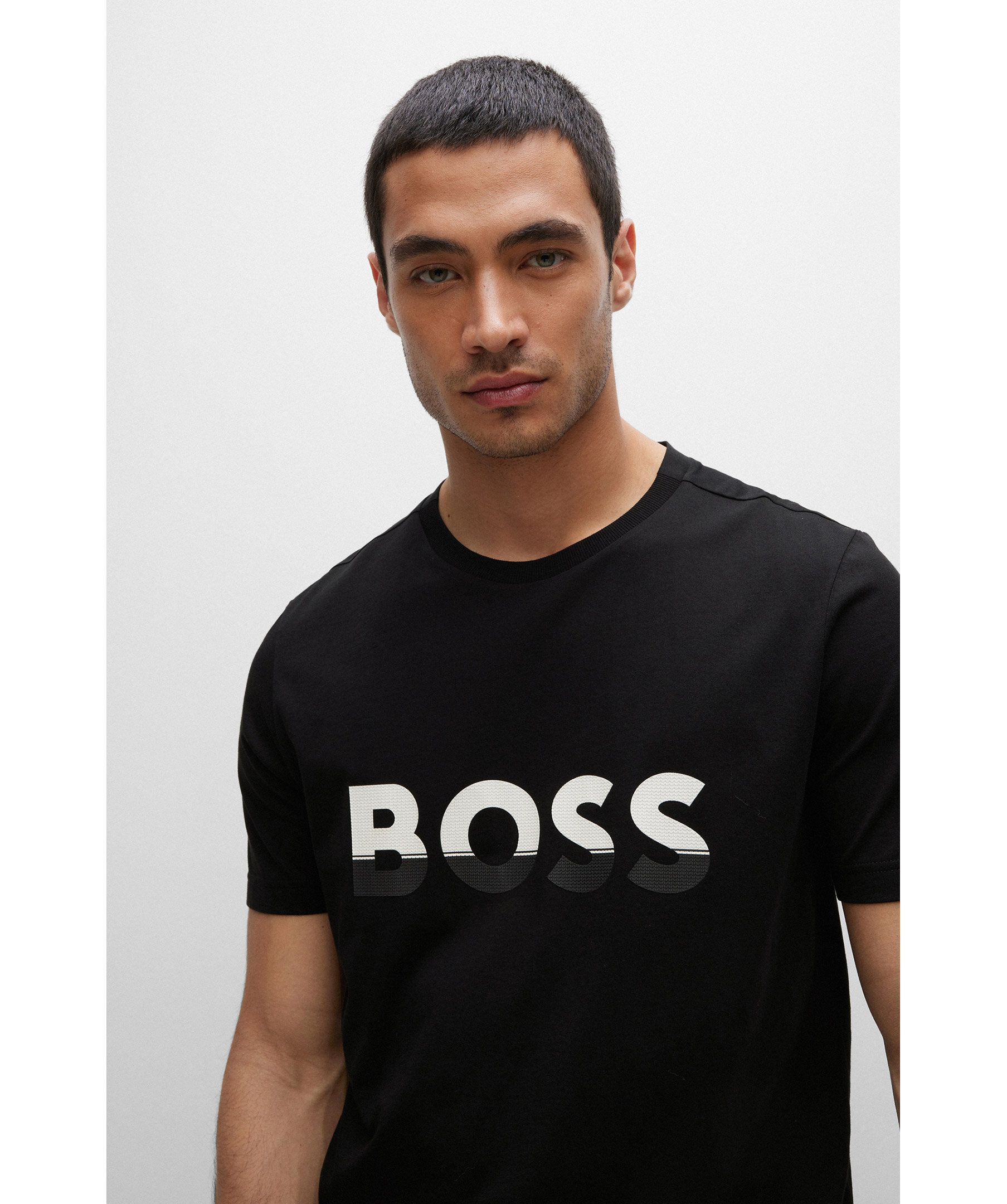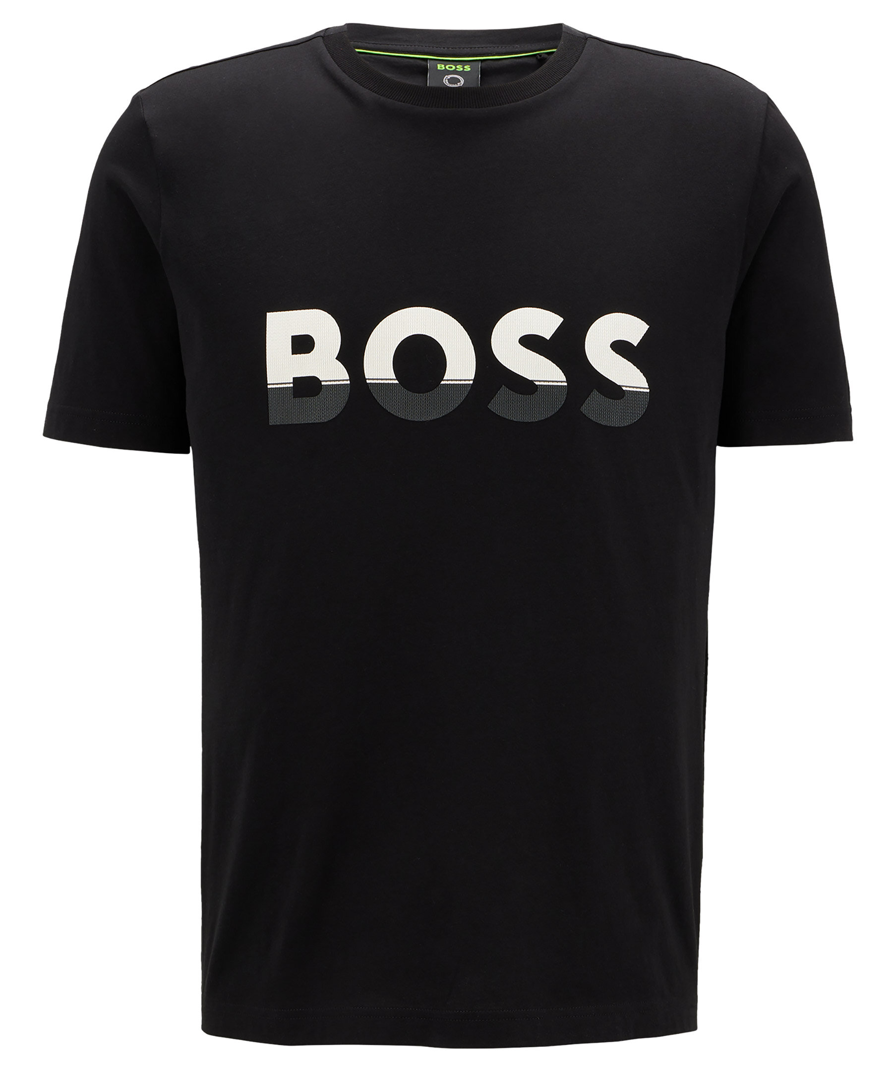 Svart t-shirt från BOSS Green. Tryckt tvåfärgad logotyp i över bröstet. Rundad halsringning. Tillverkad i bomull.