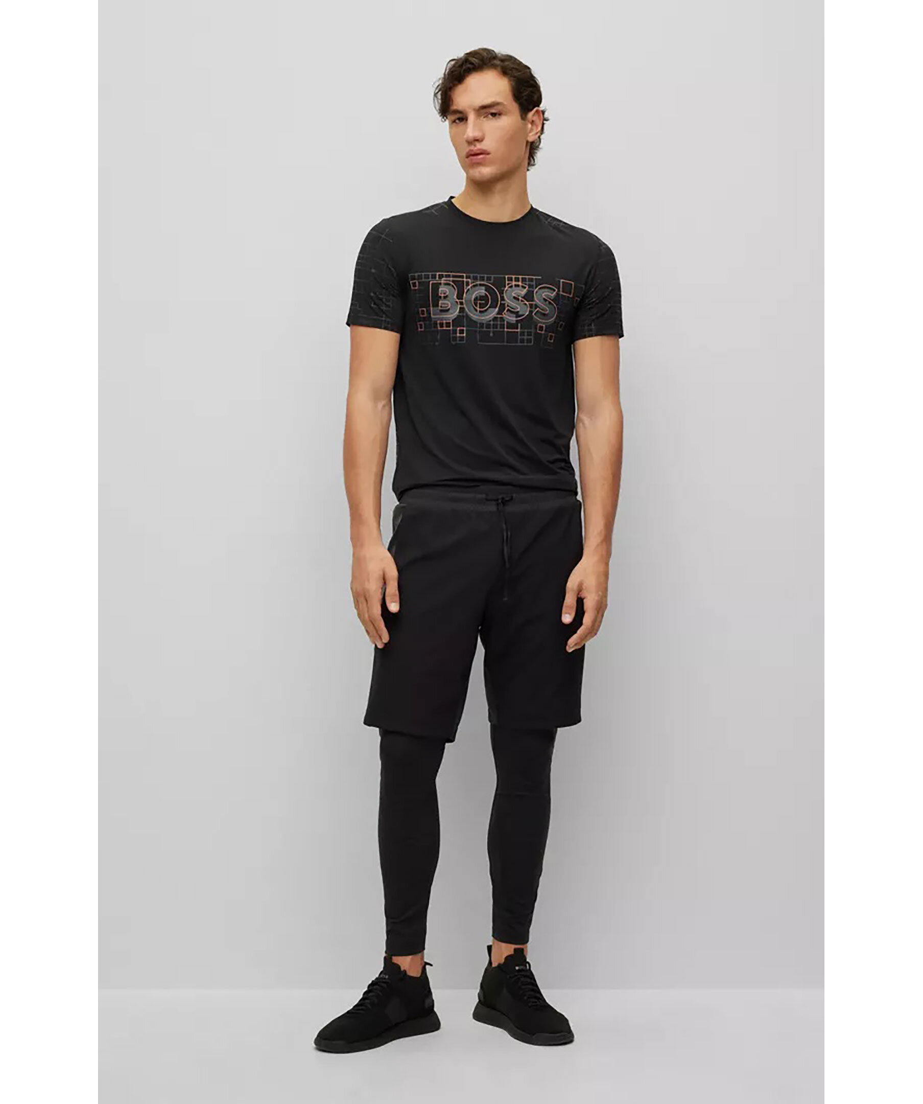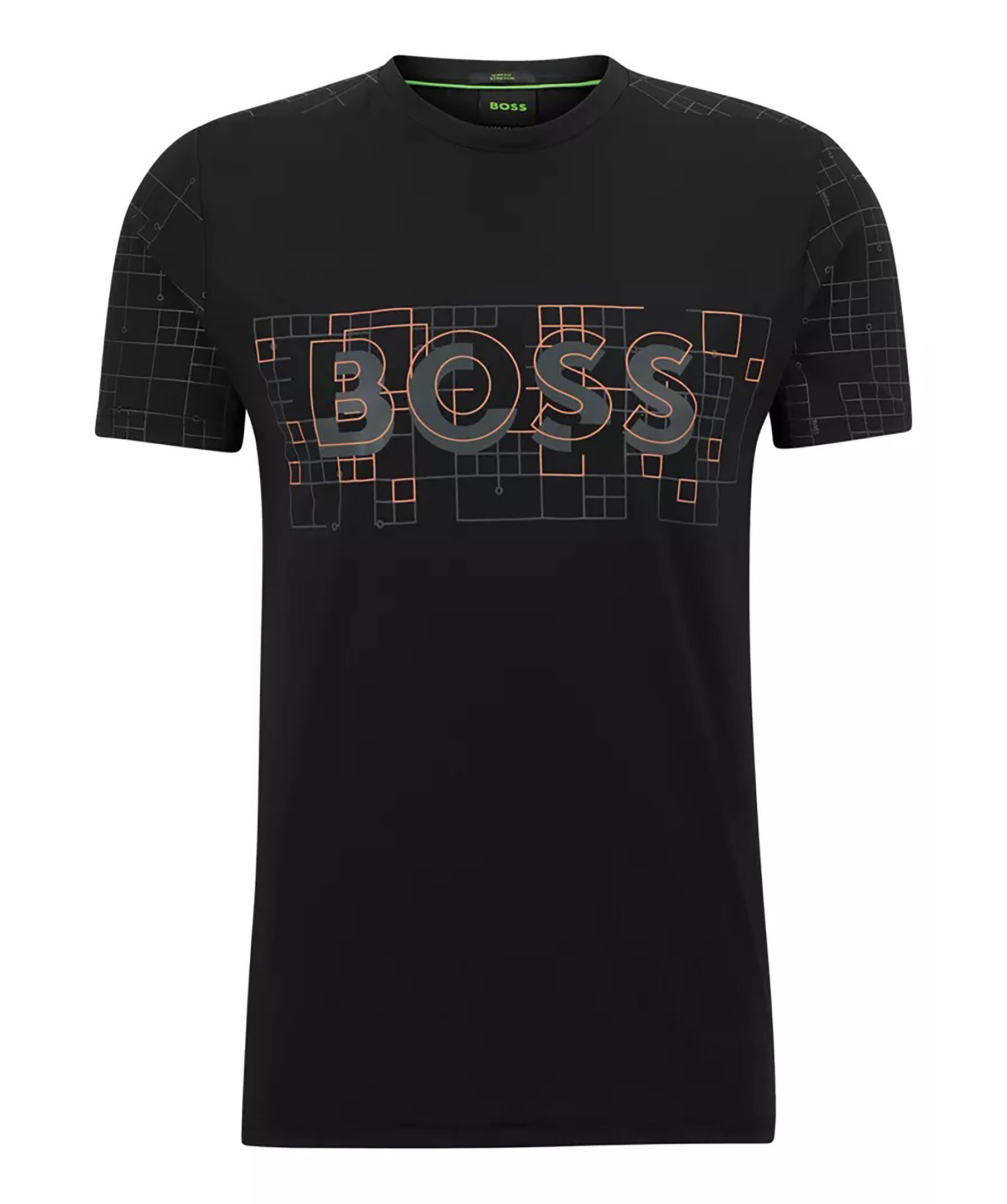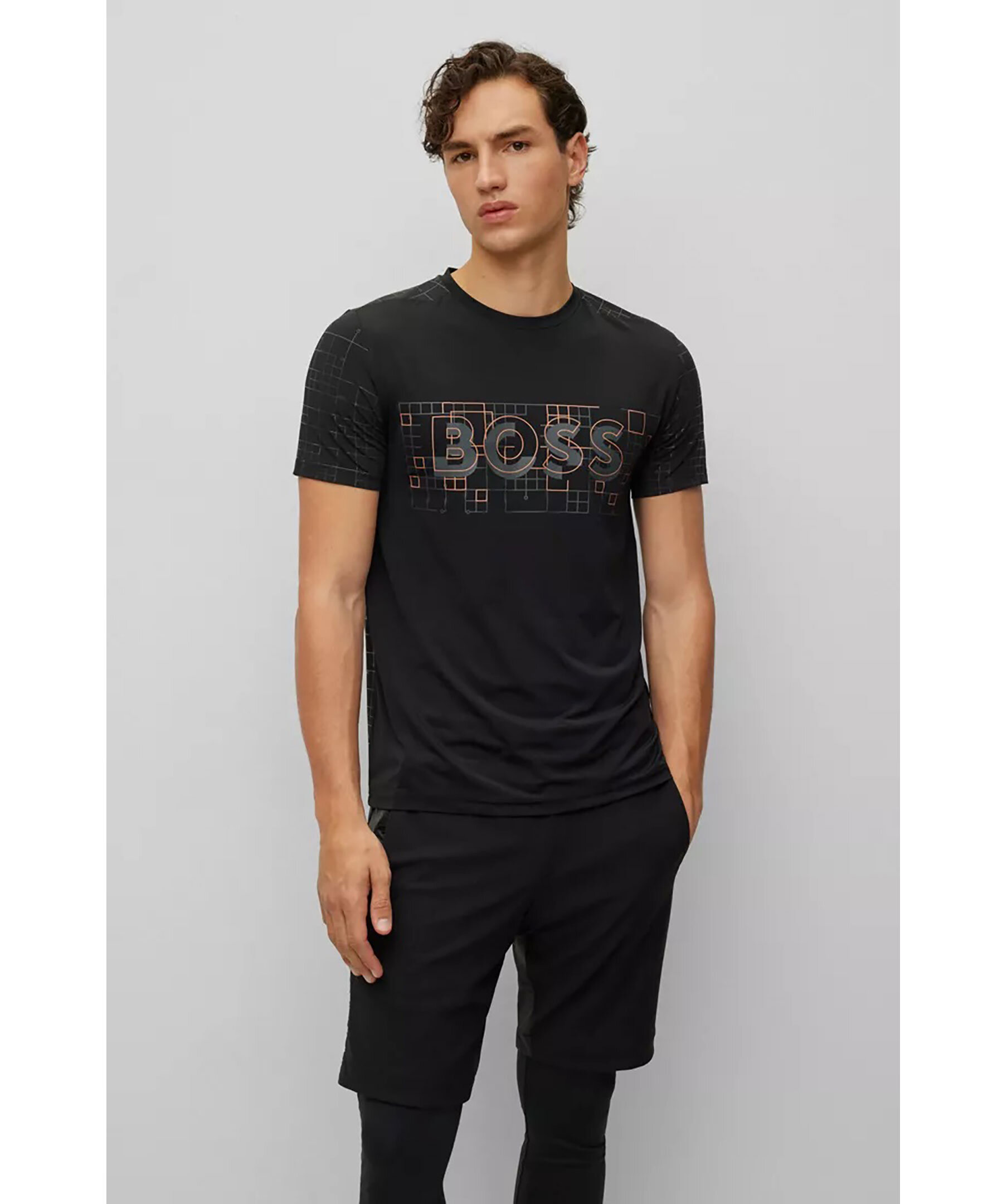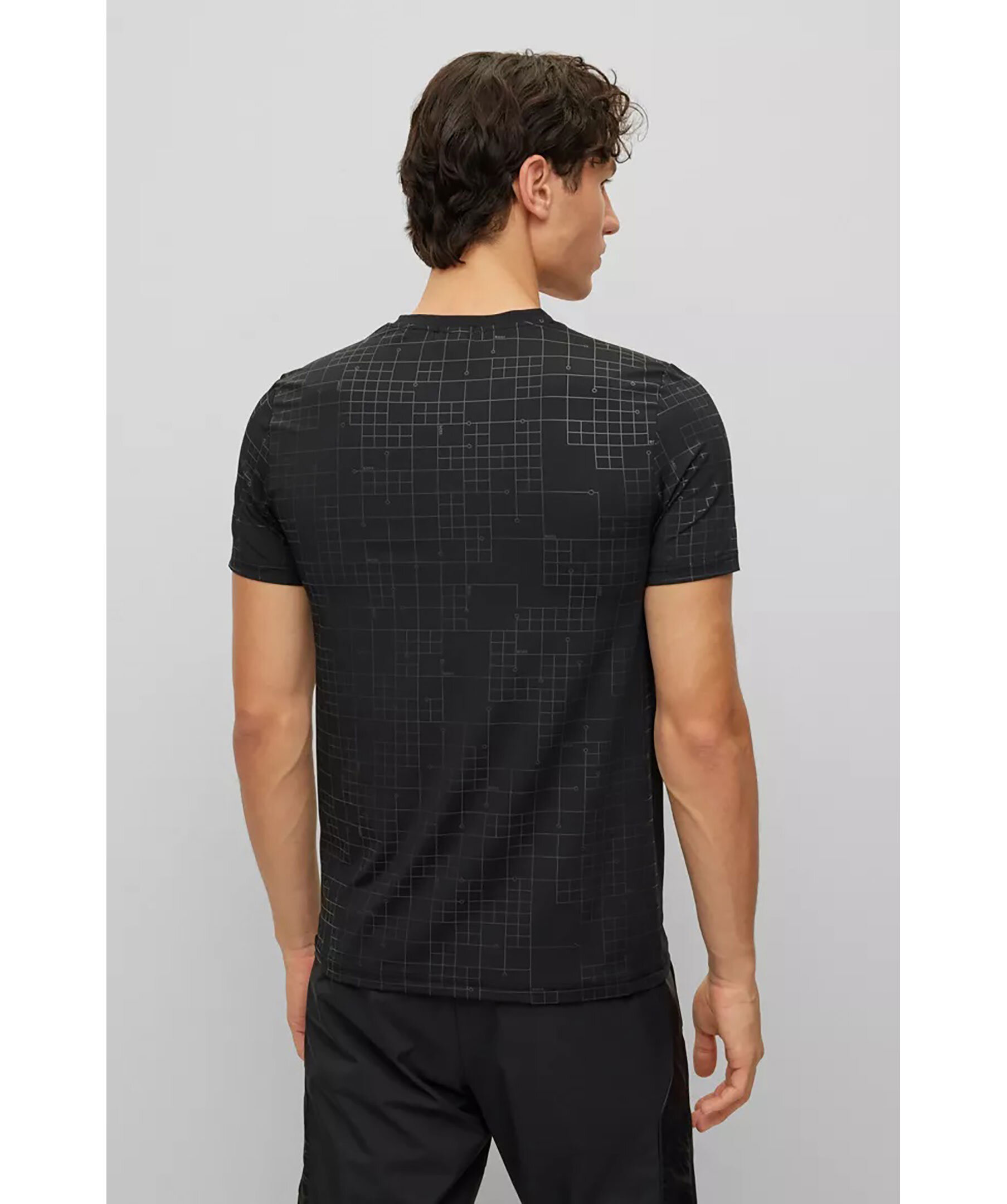 Svart stretchig t-shirt från BOSS GREEN i en slim fit passform. Logotyp och mönster på bröst och rygg.