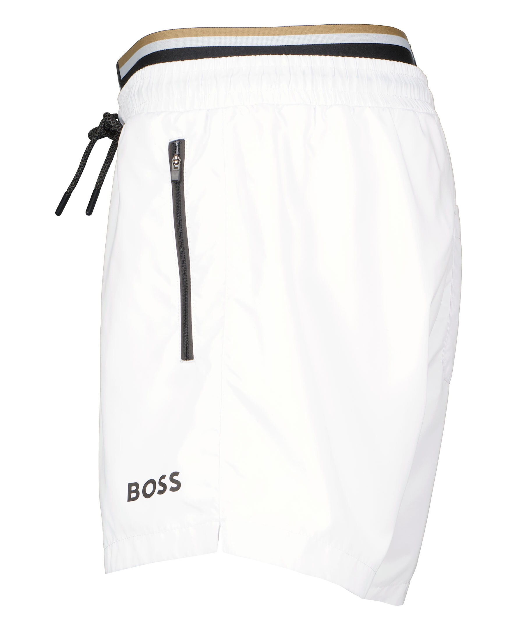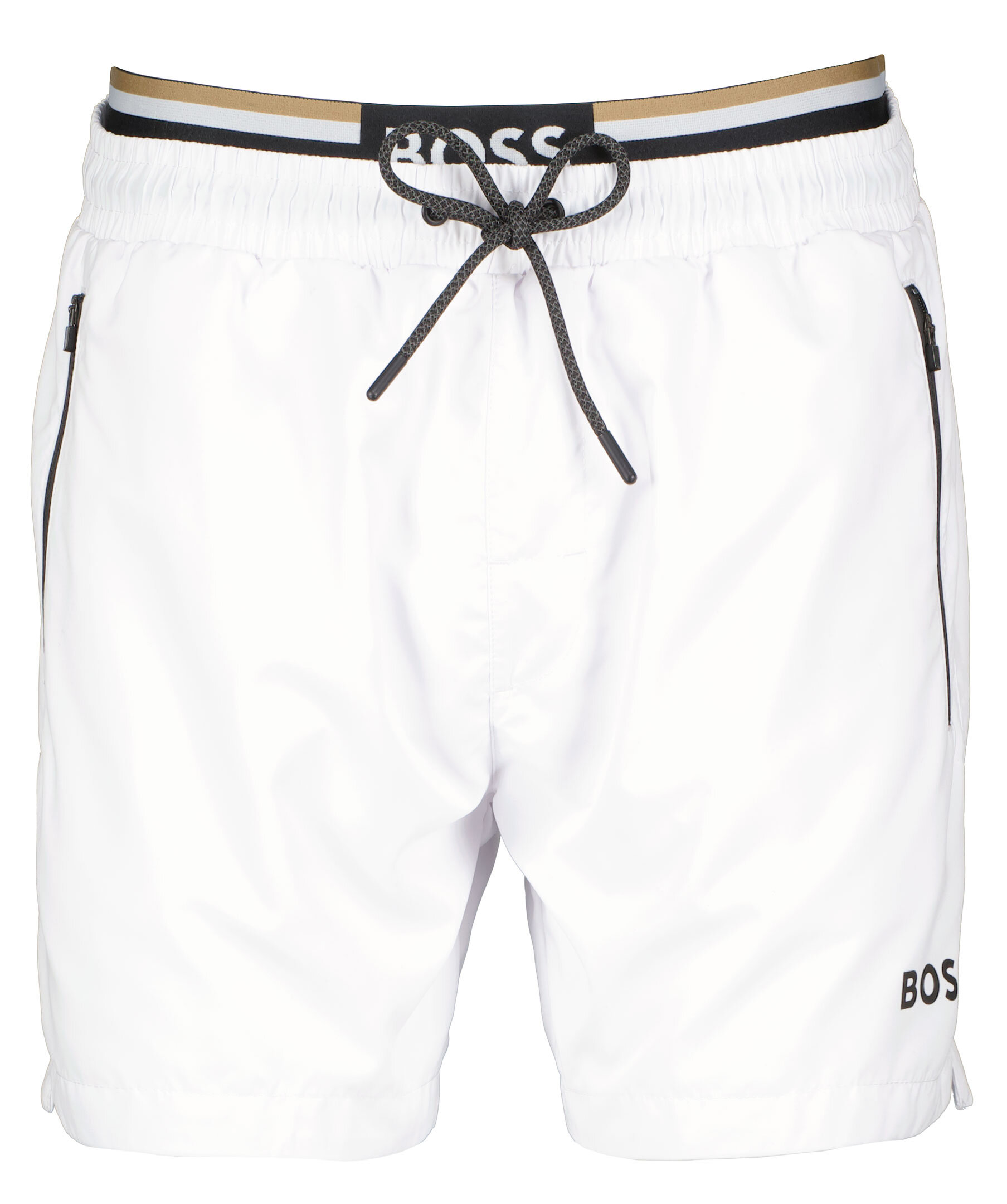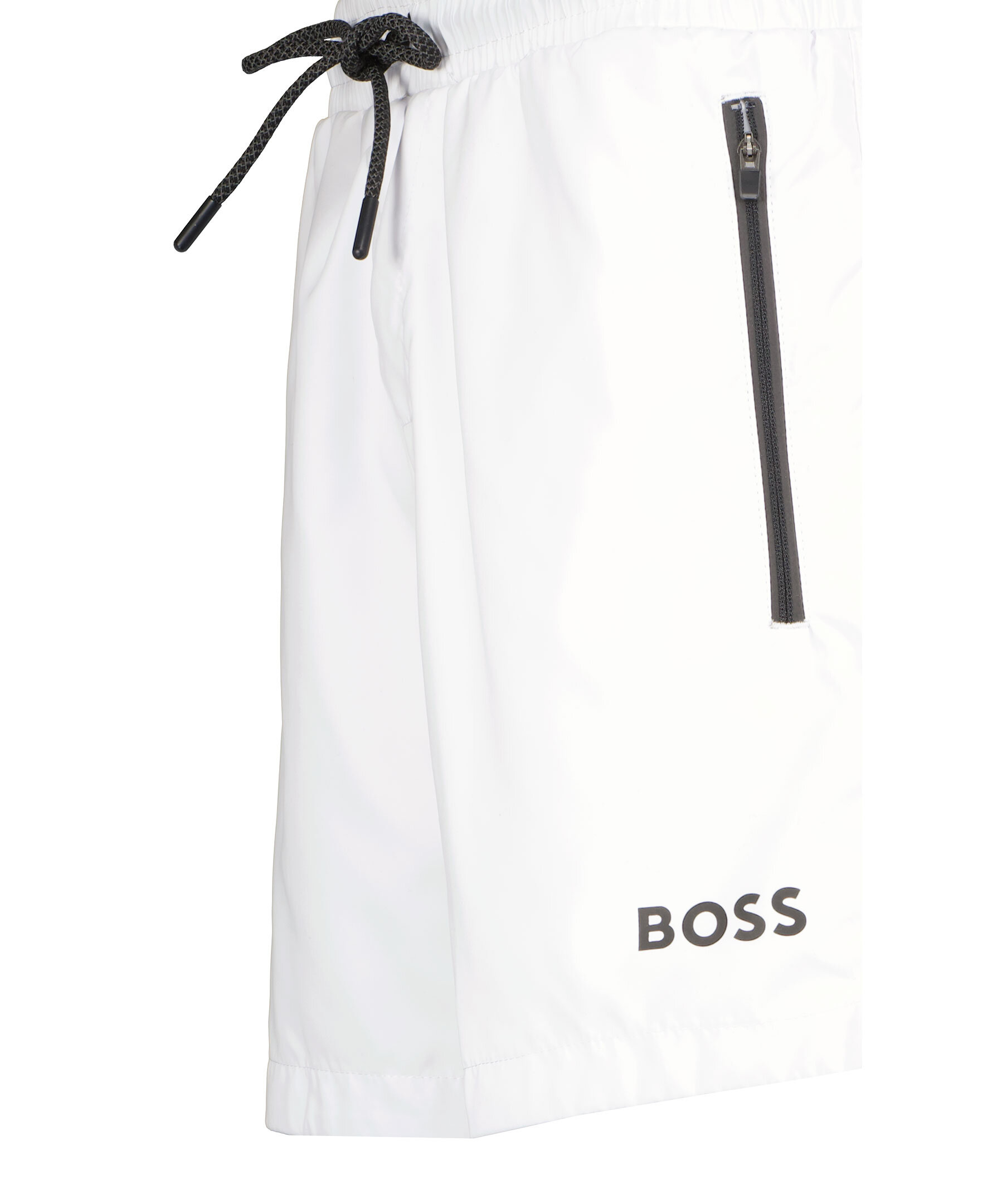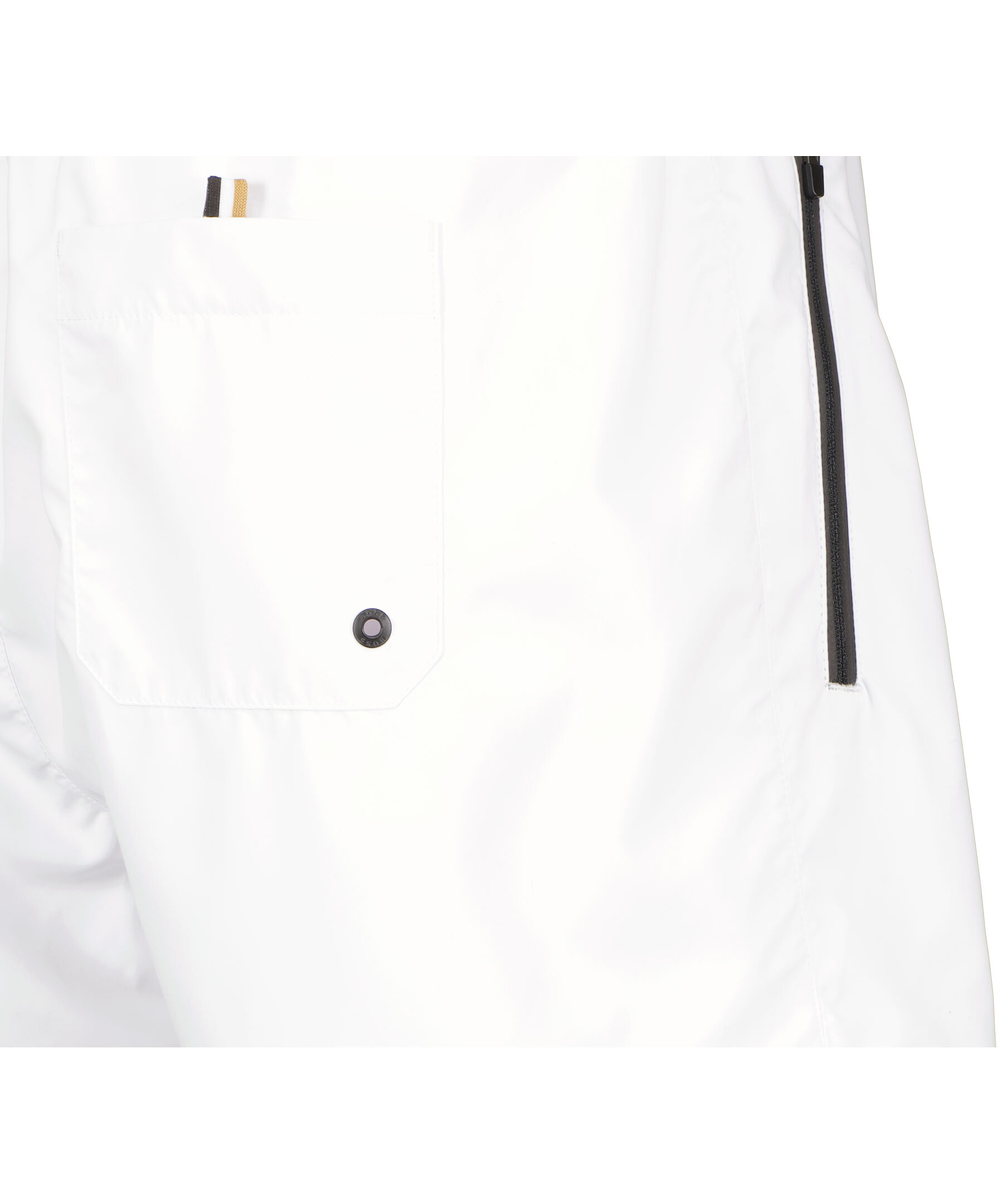 Vita shorts från BOSS Green. Två fickor framtill som stängs med dragkedja. Bakficka som stängs med kardborre. Dragsko och resår i midjan. Tryckt logotyp på vänster lår.