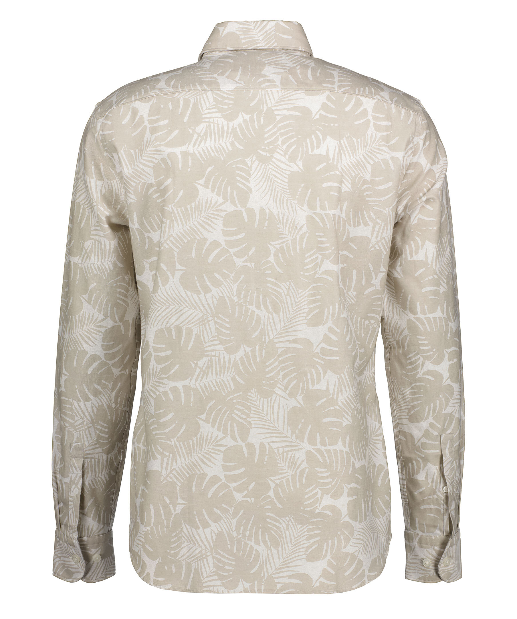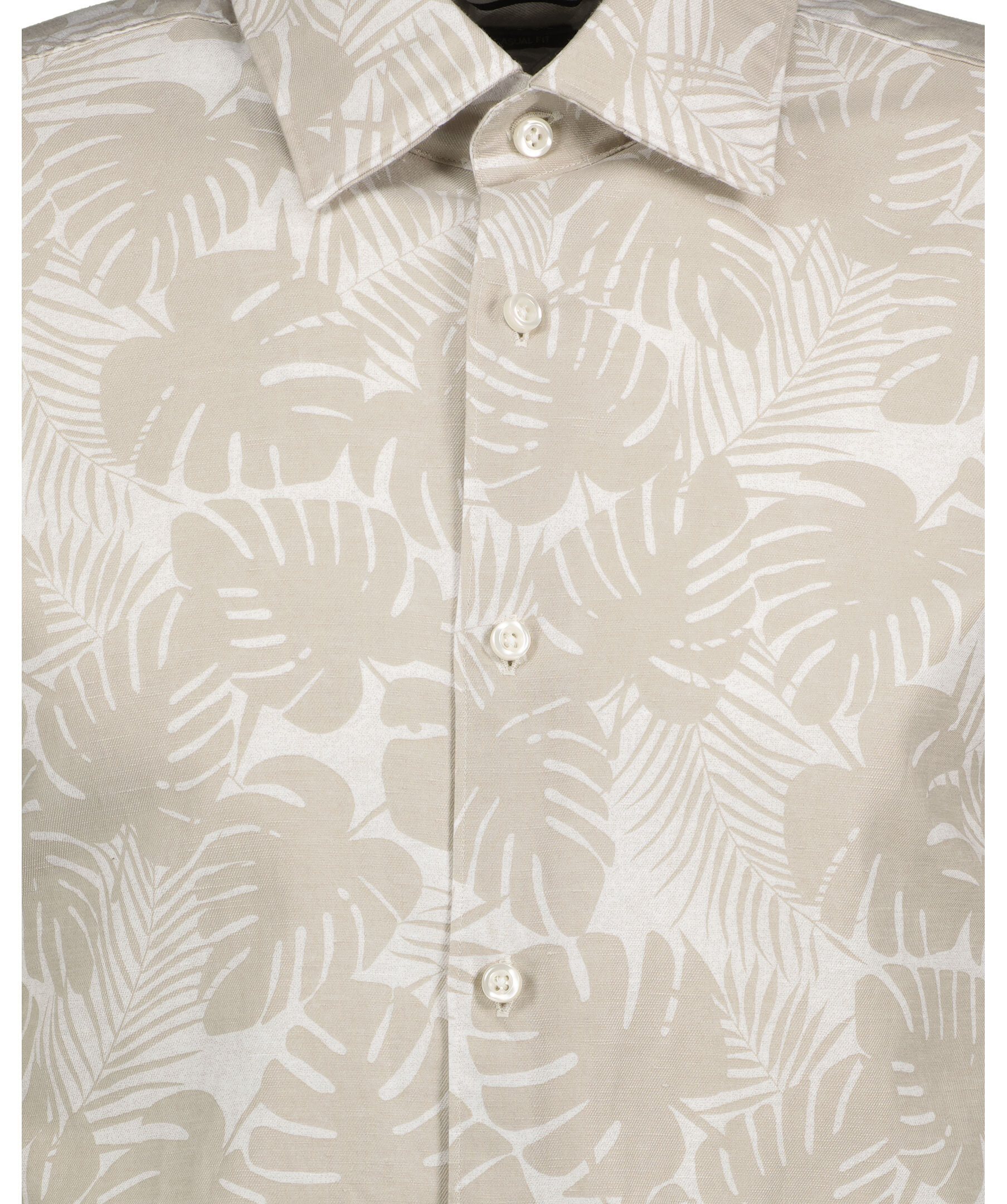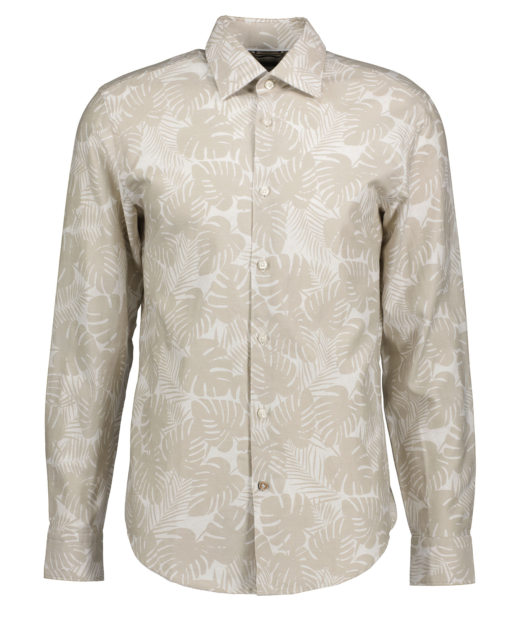 Vit och beige mönstrad skjorta från BOSS Black. Stängs framtill med knappar. Spetsig krage. Enkla manschetter. Tillverkad i bomull och lin blandning.