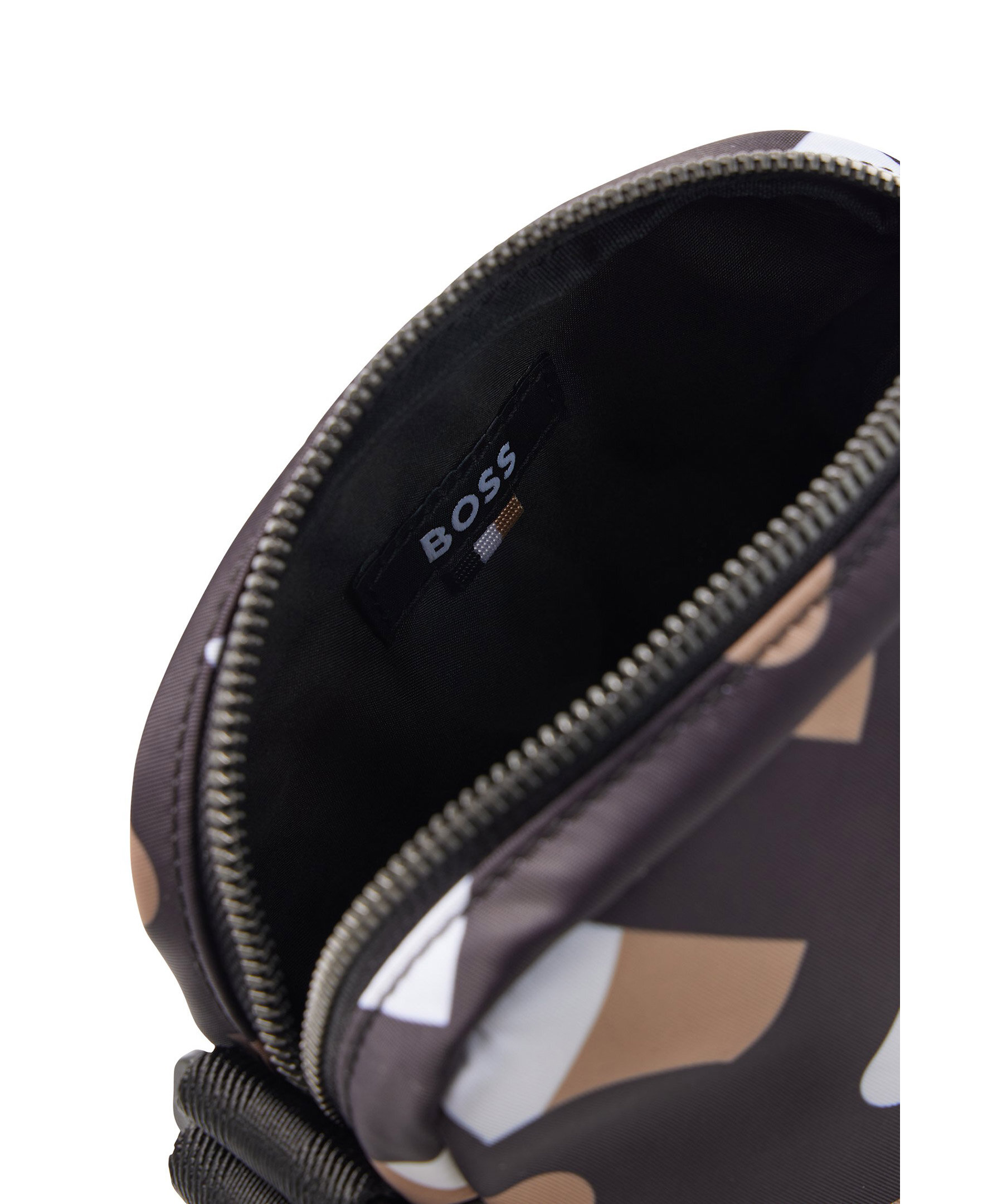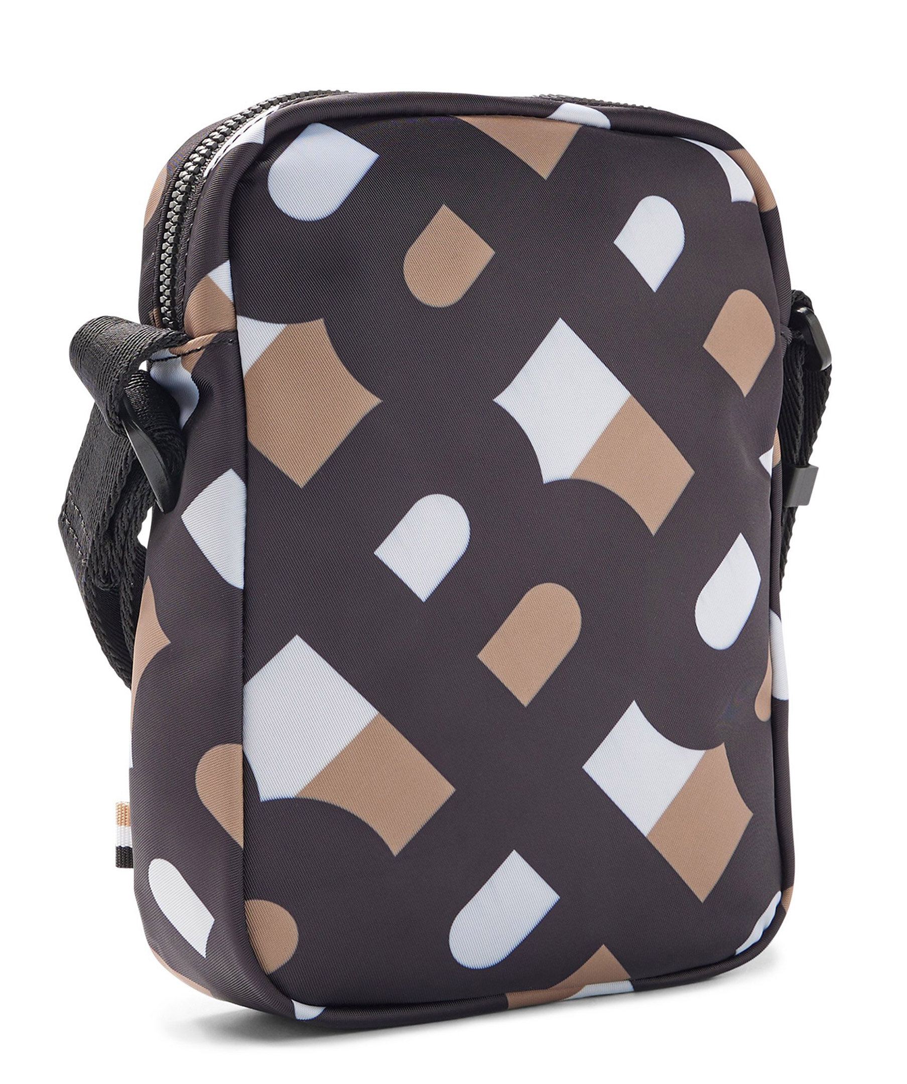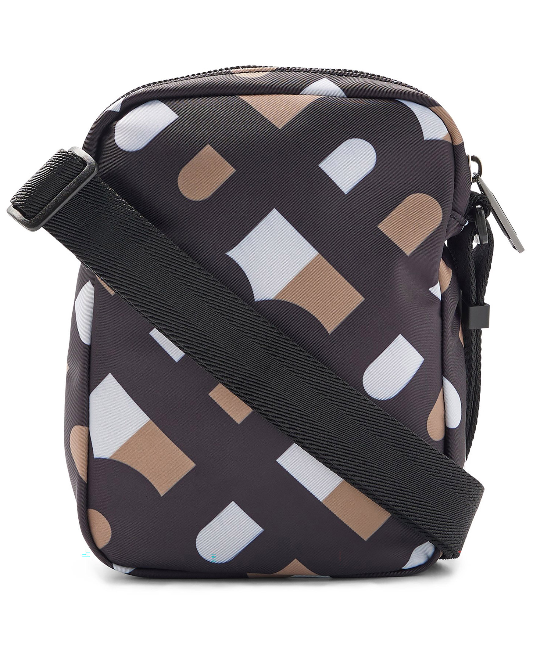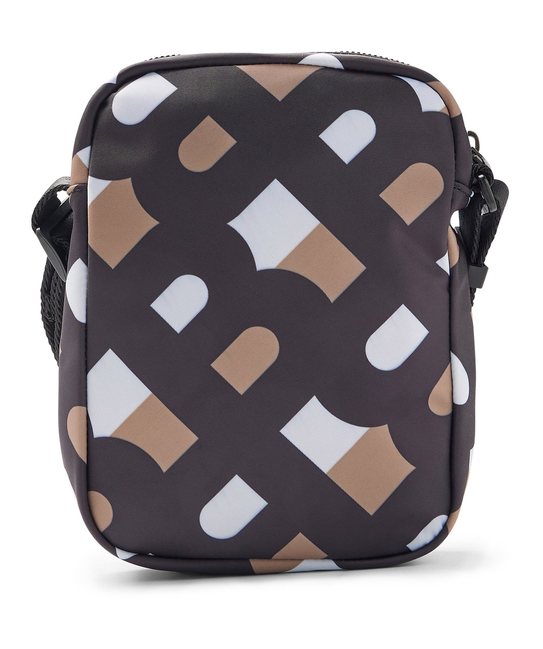 Mönstrad liten axelremsväska från BOSS. Monogramtryck i BOSS signaturfärger och är utformad i lättviktig nylon och försedd med en justerbar axelrem. Stängs med dragkedja upptill. Mått: 21,5 x 15,5 x 5,5 cm.