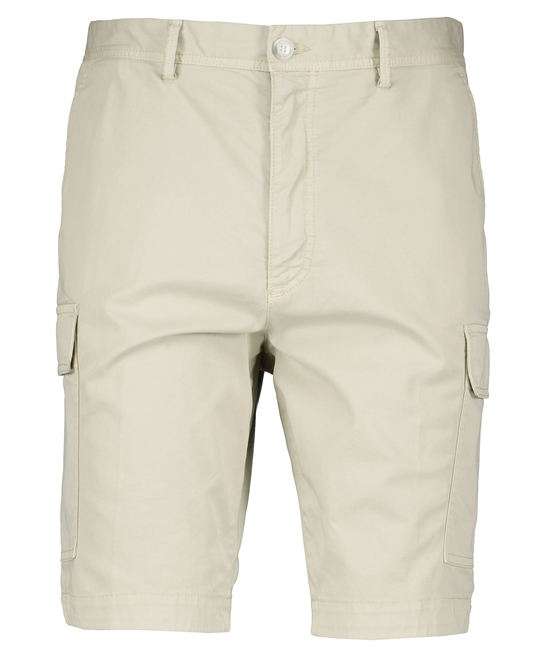 Beigea cargo shorts från BOSS Black. Fickor med lock och tryckknapp, Sidfickor. Två bakfickor med lock och tryckknappar. Hällor för skärp.
