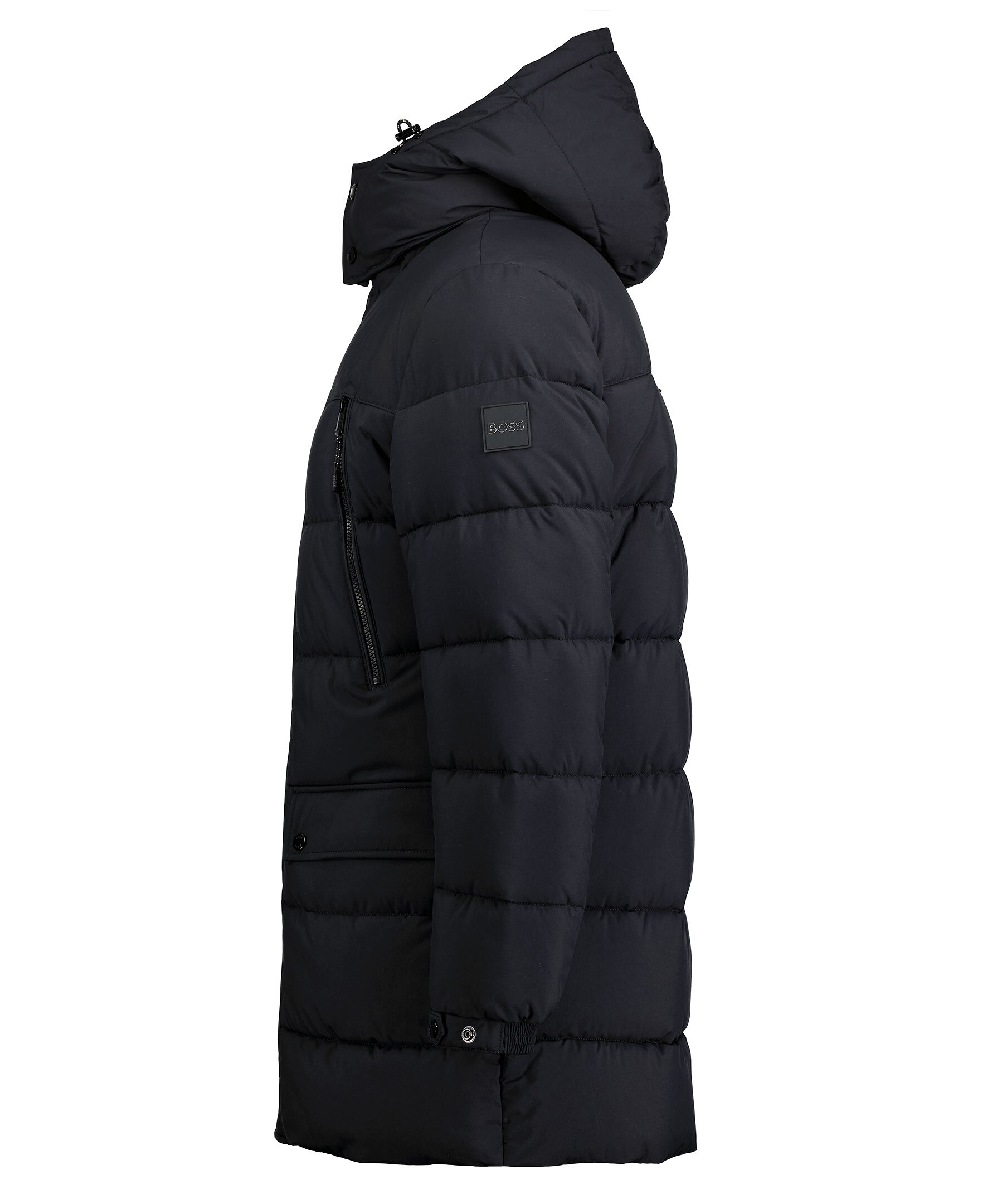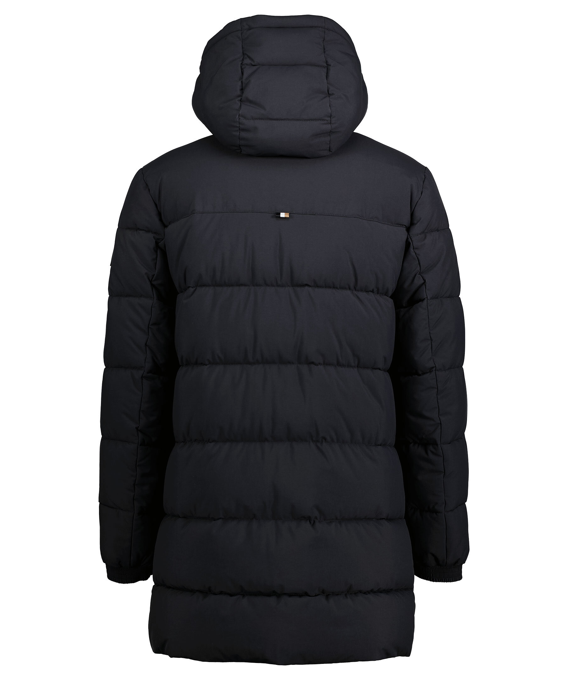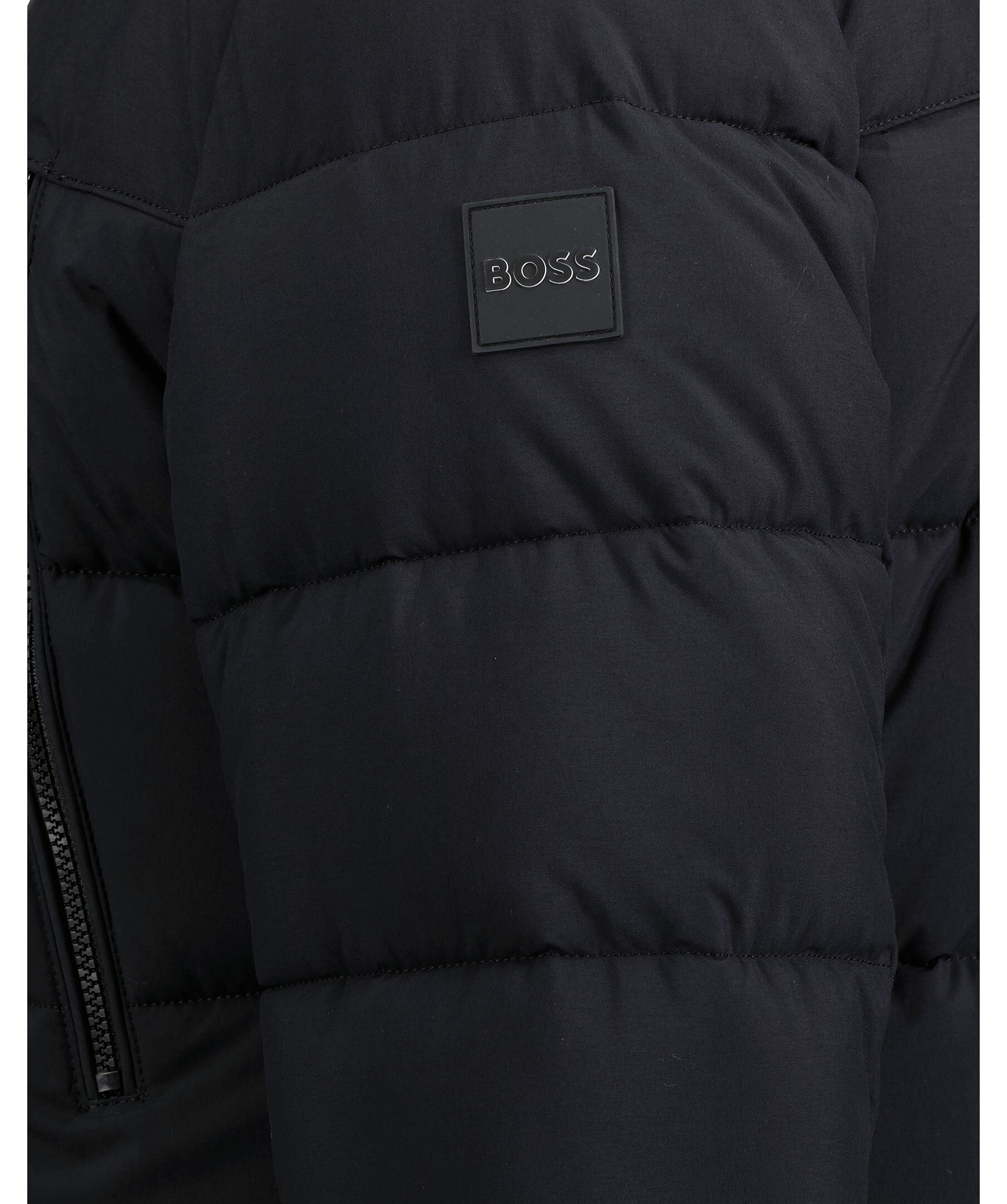 Svart vadderad jacka från BOSS Black. Jackan har en normal passform och slutar nedanför höften. Vattenavstötande yttre, avtagbar luva med dragsko. Två framfickor med ficklock, två bröstfickor med dragkedja och innerficka med dragkedja. Logotyp på vänster överärm. Jackan stäng med dragkedja och tryckknappar.