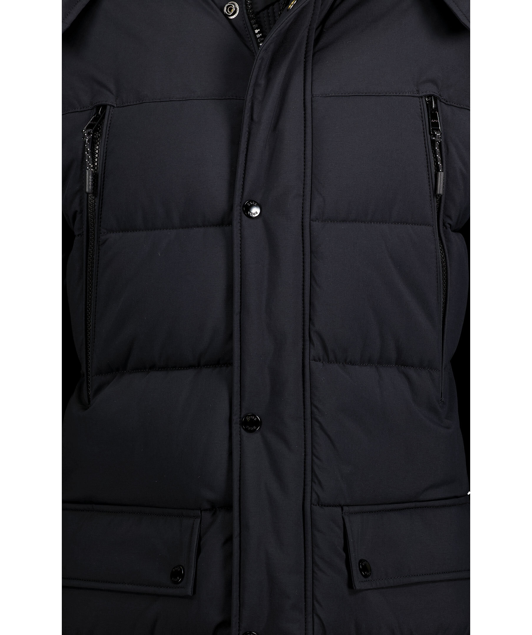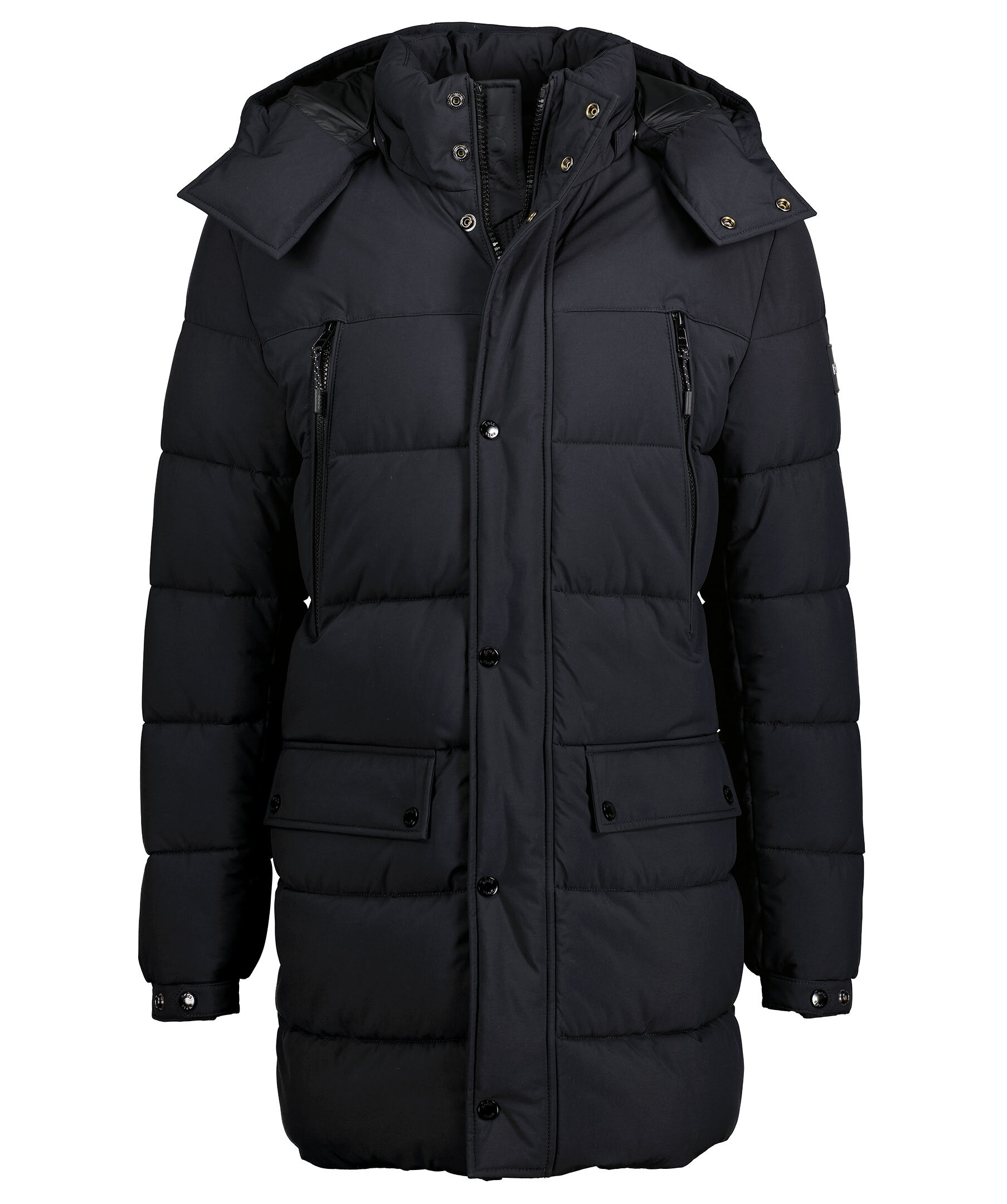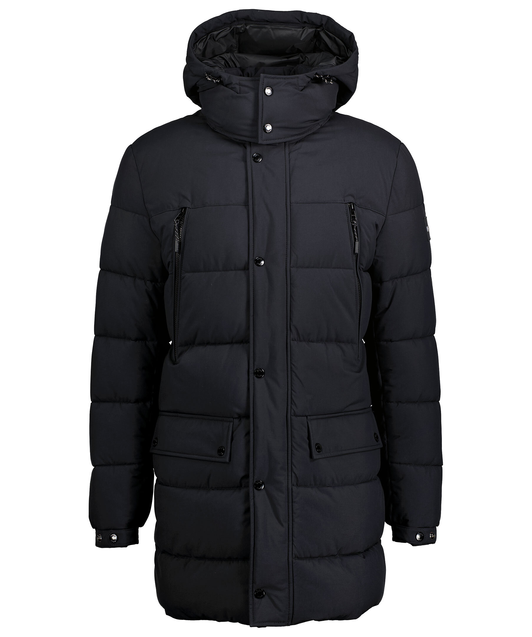 Svart vadderad jacka från BOSS Black. Jackan har en normal passform och slutar nedanför höften. Vattenavstötande yttre, avtagbar luva med dragsko. Två framfickor med ficklock, två bröstfickor med dragkedja och innerficka med dragkedja. Logotyp på vänster överärm. Jackan stäng med dragkedja och tryckknappar.