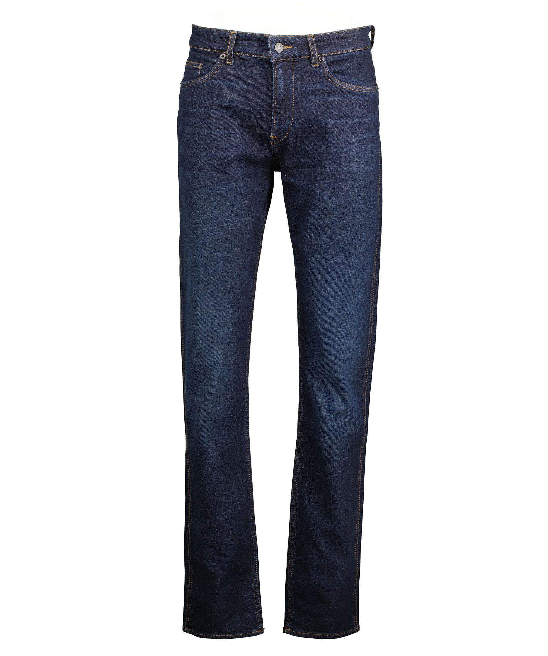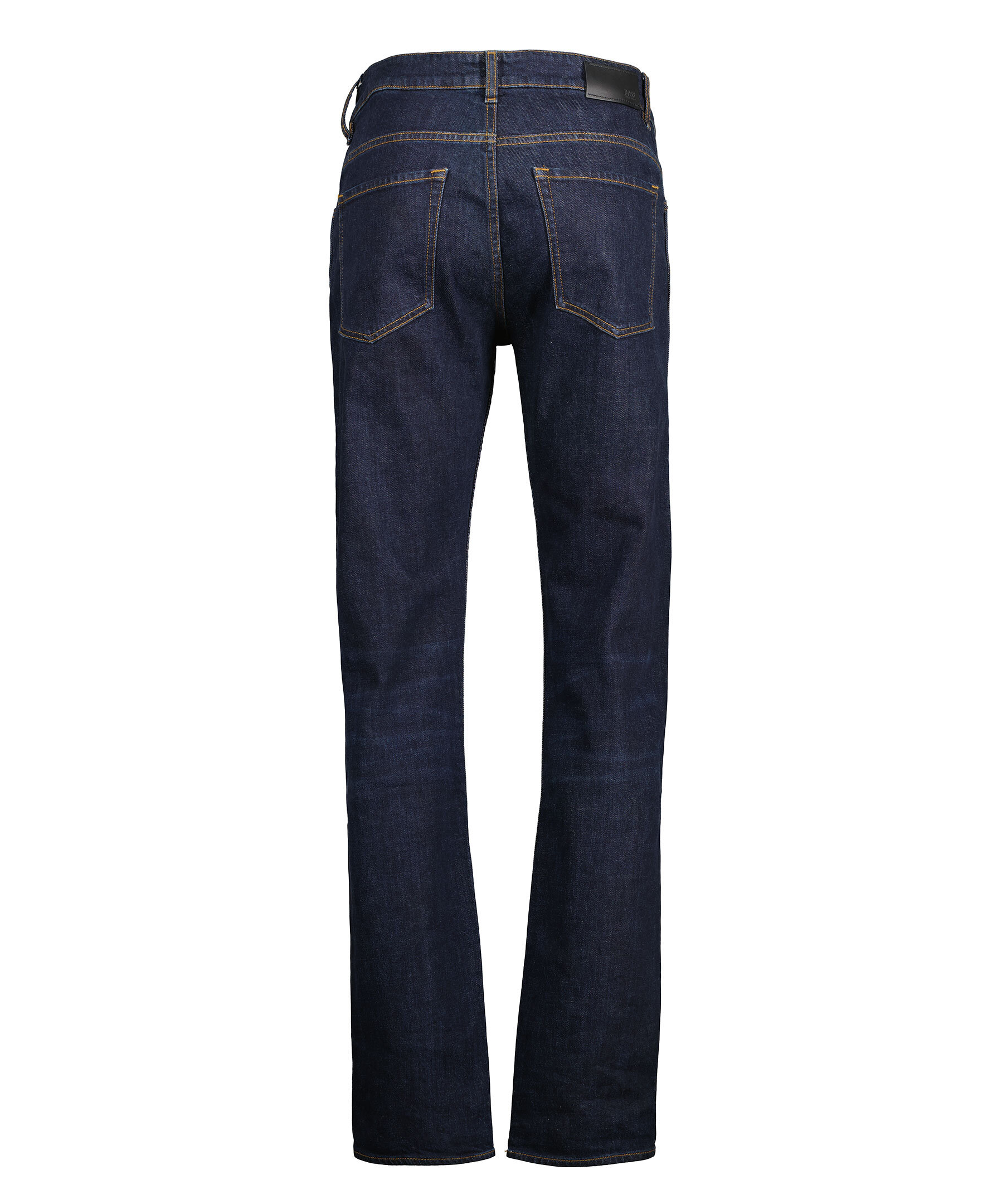 Mörkblå jeans med stretch från BOSS BLACK i en straight modell. Normalhög midja, raka byxben. Femficksmodell, gylf med dold dragkedja och knapp. Hällor för bälte.