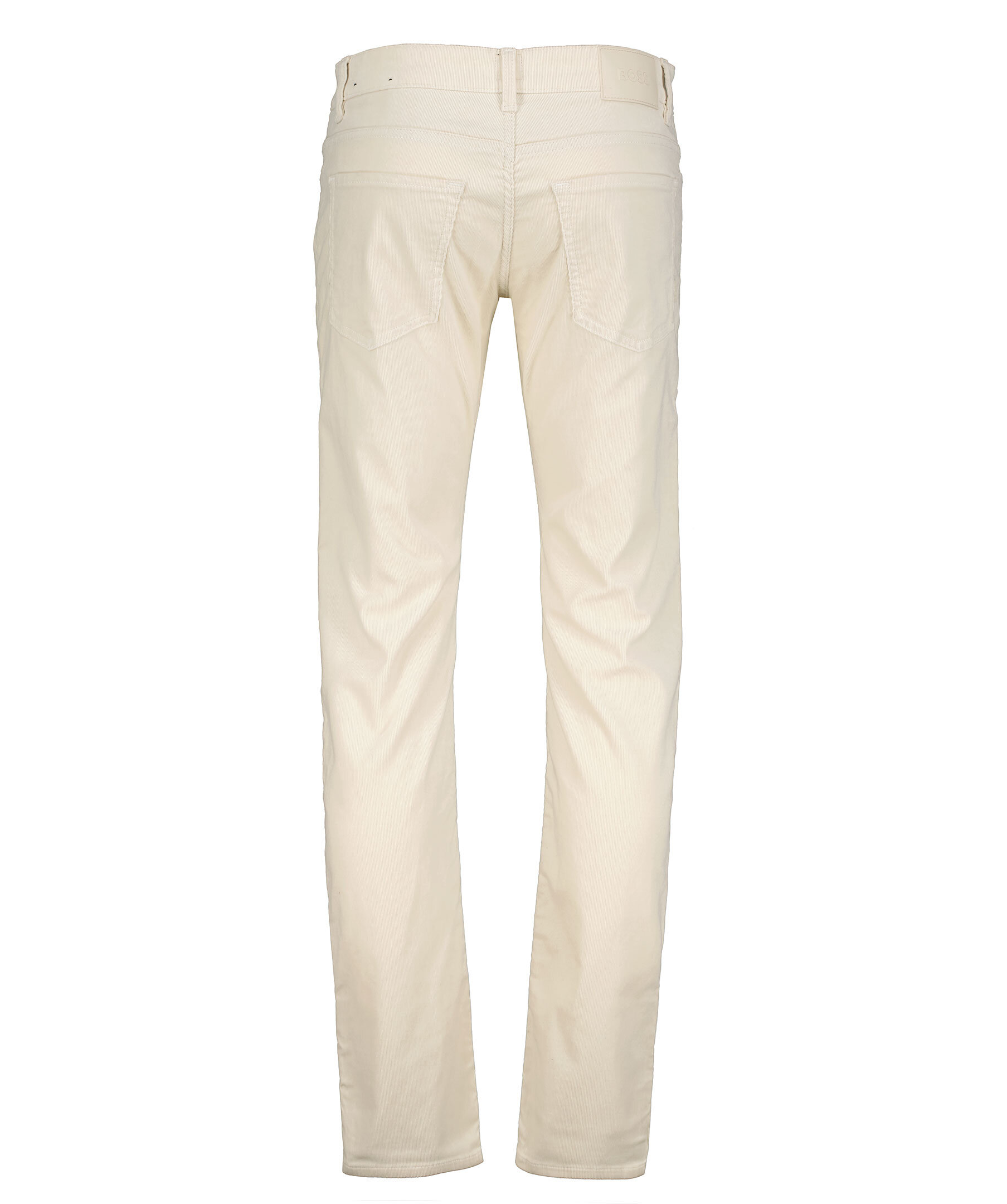 Beigea byxor i manchester från BOSS Black. Fem fickor, hällor för skärp. Gummerad logotyp baktill och framtill på höger ficka.